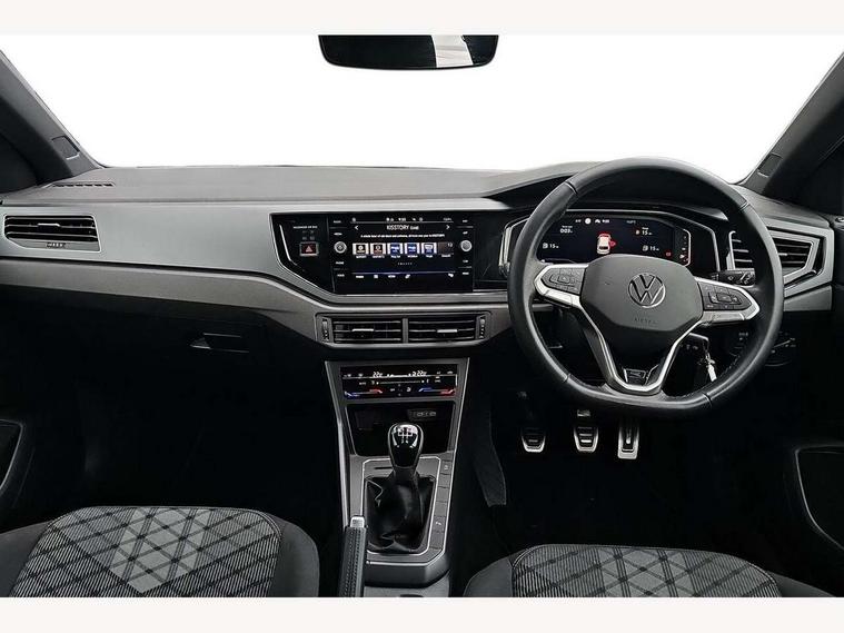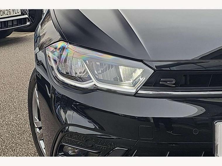 Adaptive cruise control without follow-to-stop and speed limiter, Bluetooth mobile phone interface, Digital Cockpit Pro with 10.25" Display, Driver alert system, Dynamic road sign display, Emergency call service, Power assisted speed sensitive steering, Preparation for We connect and We connect plus, Speedo and rev counter, electronic odometer, trip, service interval display and fuel gauge, Standard rear axle, Travel Assist - Lane keeping system and traffic jam assist, Travel assist including emergency assist, Trip computer, Warning signal and warning light for front and rear seatbelts not fastened, Washer fluid level indicator, Wireless app connect, Front wheel drive, Rear shock absorpion, Start-stop system with battery regeneration (recuperation - energy recovery during braking), DAB Digital radio, Diversity antenna for FM reception, Front and rear 6 speakers, Body colour bumpers, Body colour door handles, Electric front windows, Front scuff plates with R-Line logo, Heat insulating darkened glass in side and rear windows, Heat insulating glass windscreen, Power folding adjustable/heated exterior mirrors and front passenger exterior mirror lowering function, Rear electric windows, Rear fog light, Rear side wing doors, Rear windscreen washer and wiper with interval delay, Third brake light, 12V power socket in centre console, 2 USB-C ports in the front, 2 USB-C charging sockets on the center console in the rear, 3 rear head restraints, 60/40 split folding rear seat and rear seat bench not split, Air care climatronic air conditoning system with active combination filter and 2-zone temperature control, Black roof lining, Chrome plated radiator grille inserts, air vent surrounds and light switch surrounds, Door and side trim panel, Driver and front passenger seat height adjustment, Driver/passenger sunvisors with illuminated vanity mirrors, Front + rear carpet mats in recycled material, Front centre armrest, Front footwell illumination, Front seat backrest storage pockets, Front sports comfort seats, Handbrake lever handle in leather, Headliner in recycled material, Isofix child seat preparation easy-fit (for two outer rear seats, and front passenger seat) compatible with I-size, Karoso artvelours cloth upholstery, Leather trimmed gear knob, LED interior light with switch off delay and dimmer, 2 reading lights front and rear, Luggage compartment cover, Luggage compartment floor, Luggage compartment lighting, Lumbar adjustment for front seats, Multifunction steering wheel, Single front passenger seat, Stainless steel pedals, Standard pedal cluster, Light and sight pack - Polo R-Line/Black Edition, 3 point height adj front seatbelts + pretensioners, 3x3 point rear seatbelts, ABS, Driver and front passenger airbag with front passenger airbag deactivation, Drivers and front passengers safety optimised head restraints, ESC (Electronic stability control) + EDL (Electronic Differntial lock) and ASR (Traction control), Extended and predictive pedestrian/ cyclist protection, Front curtain and side airbags with center airbag, Hill hold control, Manual child lock in rear doors, Single tone horn, Tyre pressure loss indicator, Alarm with interior protection, Anti-theft alarm system with interior monitoring, backup horn, and towing protection, Anti-theft wheel bolts, Electronic engine immobiliser, Chrome applications on rotary light, mirror adjustment, window regulator switches, outlet with frame in black, Dark grey anodised matt decorative inserts in dash and front door panels, Low rolling resistance tyres,