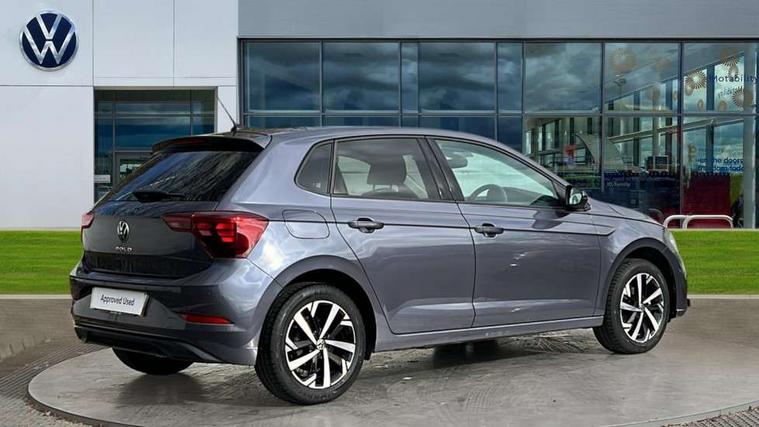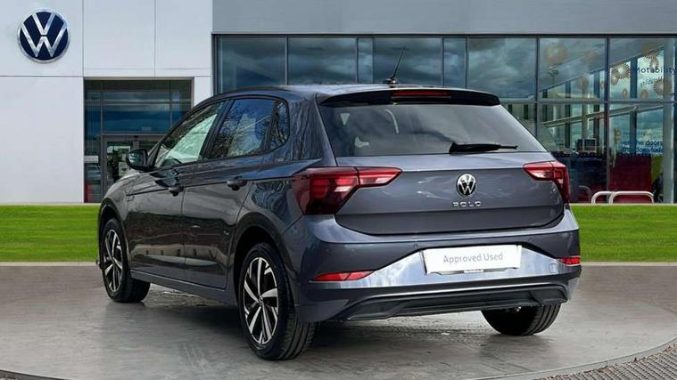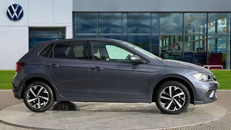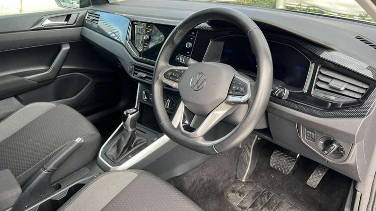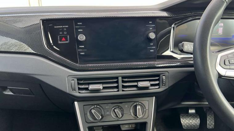 Advanced driver attention and drowsiness monitor, Bluetooth mobile phone interface, Dynamic road sign display, Emergency call service, Mobile phone preparation with inductive charging function, Multifunction front facing camera for distance control, Power assisted speed sensitive steering, Predictive adaptive cruise control without follow-to-stop and speed limiter, Preparation for navigation system with media and internet package, Preparation for We connect and We connect plus, Rear view camera, Speedo and rev counter, electronic odometer, trip, service interval display and exterior temperature gauge, Standard rear axle, Travel Assist - Lane keeping system and traffic jam assist, Travel assist including emergency assist, Trip computer, Warning signal and warning light for front and rear seatbelts not fastened, Washer fluid level indicator, Wireless app connect, Front wheel drive, Rear shock absorpion, Start-stop system with battery regeneration (recuperation - energy recovery during braking), DAB Digital radio, Diversity antenna for FM reception, Automatic dimming interior rear view mirror, Automatic headlight control with LED separate daytime running lights with coming/leaving home function, Body colour bumpers with chrome inserts, Body colour door handles, Body colour door mirrors, Electric front windows, Engine badge deletion, Headlight range adjustment, Heat insulating and laminated safety glass windshield, LED Headlights, LED rear combination lamps, Power folding adjustable/heated exterior mirrors and front passenger exterior mirror lowering function, Rain sensor, Rear electric windows, Rear fog light, Rear side wing doors, Rear tinted glass from B-pillar backwards approx 65% tinted, Rear windscreen washer and wiper with interval delay, Third brake light, 12V power socket in centre console, 2 front and 2 rear reading lights with switch off delay and dimmer, 2 USB-C ports in the front, 2 USB-C charging sockets on the center console in the rear, 3 rear head restraints, 60/40 split folding rear seat and rear seat bench not split, Ceramique roof lining, Chrome plated radiator grille inserts, air vent surrounds and light switch surrounds, Door and side trim panel, Driver and front passenger seat height adjustment, Driver/passenger sunvisors with illuminated vanity mirrors, Front centre armrest, Front seat backrest storage pockets, Front standard seats, Handbrake lever handle in leather, Hartley/Thomas cloth upholstery, Headliner in recycled material, Isofix child seat preparation easy-fit (for two outer rear seats, and front passenger seat) compatible with I-size, Leather trimmed gear knob, Luggage compartment cover, Luggage compartment lighting, Removable luggage compartment floor, Single front passenger seat, Standard climatic zones, Standard pedal cluster, Three spoke leather wrapped multifunction steering wheel with shifting paddles, Light and vision pack - Polo, 3 point height adj front seatbelts + pretensioners, 3 point seat belt for centre rear seat, 3 point seatbelts, outer rear with ECE lable, ABS, Driver and front passenger airbag with front passenger airbag deactivation, Drivers and front passengers safety optimised head restraints, ESC (Electronic stability control) + EDL (Electronic Differntial lock) and ASR (Traction control), Extended and predictive pedestrian/ cyclist protection, Front assist with autonomous emergency braking (for Adaptive Cruise Control ACC up to 130 mph), Front curtain and side airbags with center airbag, Front disc brakes, Hill hold control, Manual child lock in rear doors, Rear drum brakes, Single tone horn, Tyre pressure loss indicator, Alarm with interior protection, Anti-theft alarm system with interior monitoring, backup horn, and towing protection, Anti-theft wheel bolts, Electronic engine immobiliser, Lava stone black gloss/matt decorative inserts in dash and front door panels, 16" Torsby alloy wheels, Low rolling resistance tyres,