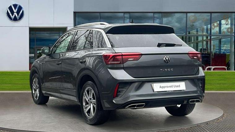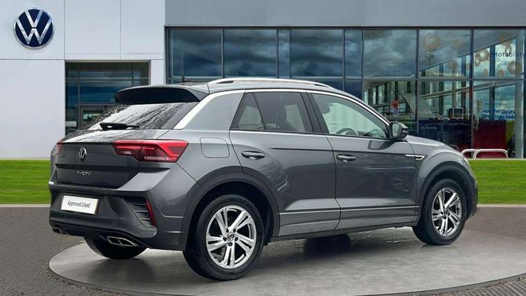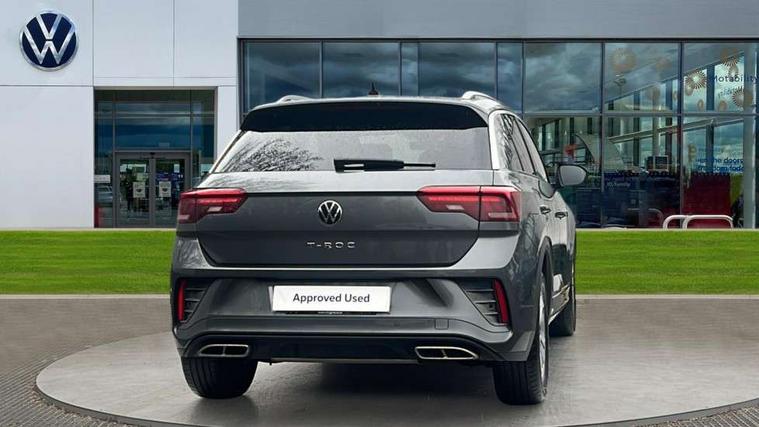 10.25" Digital cockpit pro, Bluetooth mobile phone interface, Driver alert system with fatigue detection, Driver tips and journey analysis, Emergency call service, Lane keeping system Lane Assist, Modified key software - reduce switch off time for key status change to Long no motion, Online services, Park assist including front and rear parking sensors, Service interval indicator, Tailgate/trunk lid release from outside, Think blue trainer driver tips and journey analysis, Warning sound and light for front seatbelts unfastened, Wireless app connect, Battery regeneration during braking, Start/stop function with battery regeneration, Diversity antenna for FM reception, Front and rear 6 speakers, Music playback - MP3, WMA and AAC files, Premium USB cable in choice of either Apple or Android smartphone compatibility, SD card slot, Simultaneous pairing of 2 compatible mobile devices, Title and cover art display, We Connect and We Connect Plus functionality, 3rd brake light, Auto dimming interior rear view mirror, Automatic hazard lights activation under emergency braking, Automatic headlight control with LED separate daytime running lights with coming/leaving home function, Extended roof spoiler, Exterior mirrors aspherical on driver side, convex on front passenger side, External USB type C socket and charging sockets, Front windscreen wiper with intermittent wipe and 4 position delay, Heated rear window, LED Plus headlamps, LED rear combination lamps, LED rear number plate lights, LED tail lamp rear comination lamps, Power windows with comfort operation and circuit breaker, R-Line design body coloured bumpers, Rain sensor, Rear exhaust tailpipe, Rear fog light on one side and reversing lights on both sides, Rear side wing doors, Rear wash/wipe with intermittent wipe setting, Remote electrically foldable door mirrors, puddle lights and reverse activated passenger's door mirror, 12V power socket in centre console, 3 rear head restraints, 3 seat bench in 2nd row, 4 load lashing points in luggage compartment, Air care climatronic air conditoning system with active combination filter and 2-zone temperature control, Black roof lining, Chrome plated radiator grille inserts, air vent surrounds and light switch surrounds, Door and side trim panel with leatherette insert, Drawer under drivers seat, Front + rear carpet mats, Front centre armrest, Front cupholders x 2, Front footwell illumination, Front reading light, Front scuff plates with R logo, Instrument lighting, white adjustable panel illumination, Interior ambient lighting and surround lighting, Interior light delay, Isofix child seat preparation, Leather gearshift handle, Load-through provision with cup holder when folded down ('Unsplit rear seat bench, split folding backrest, with centre armrest), Luggage compartment lighting, Single front passenger seat, Stainless steel pedals, Storage compartment in left and right luggage area, Storage compartment in rear doors, Storage compartments in driver and front passenger doors, Sunvisors with illuminated vanity mirrors, Variable boot floor, height adjustable and removable, Driver assistance pack without proactive passenger protection - T-Roc, 3 point height adj front seatbelts + pretensioners, 3 point seatbelts in outer rear with ECE label, ABS, Child locks on rear doors, Driver and front passenger airbag with front passenger airbag deactivation, Driver and front passenger safety-optimised head restraints, Drivers seatbelt reminder, Electronic parking brake, Electronic Stability Control (ESC) inc EDL (Electronic Differential Lock) and ASR (Traction Control), Front and rear passengers curtain airbag system including front side airbags, Front assist with city emergency braking and pedestrian monitoring, Front seat side impact airbags, Hill start assist, Predictive pedestrian protection, Rear disc brakes, Single tone horn, Tyre pressure loss indicator, Volkswagen roadside assistance, Alarm with interior protection, Anti-theft alarm system with interior monitoring, backup horn, and towing protection, Remote central locking with SAFELOCK, radio remote control with 2 remote control folding keys, Trims for alloy wheels,