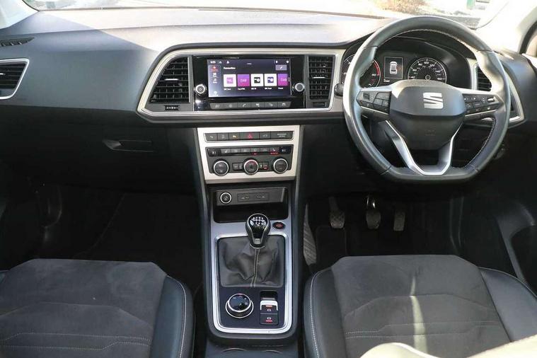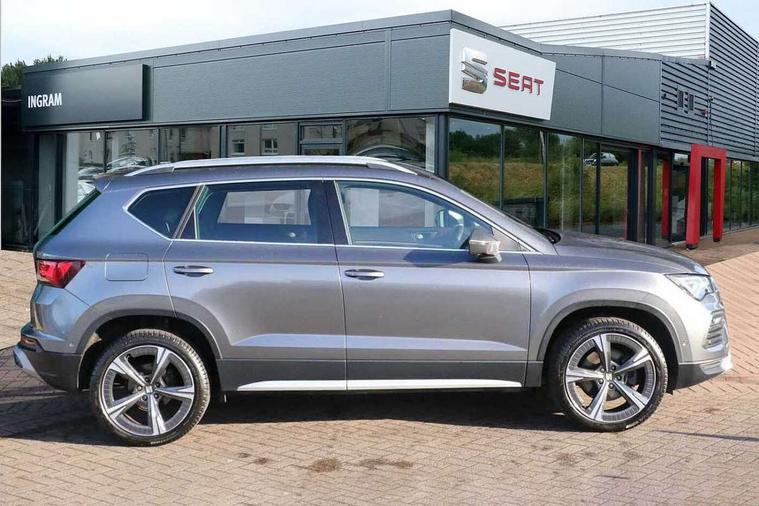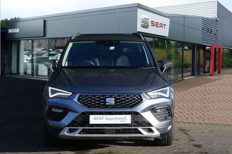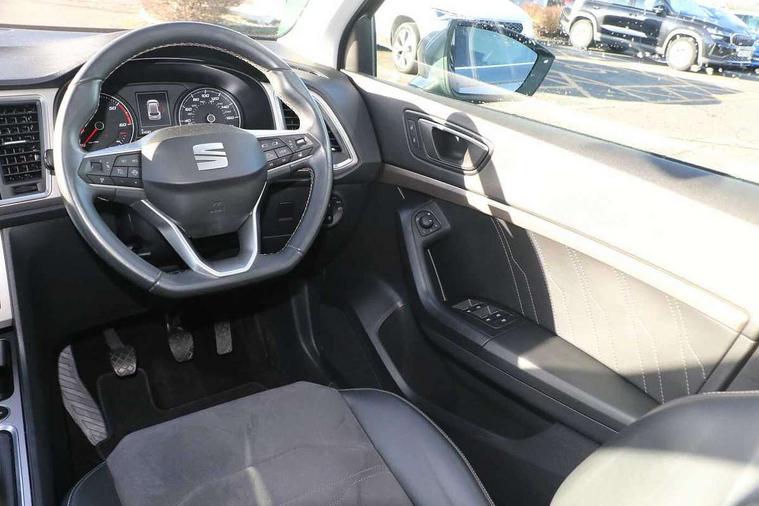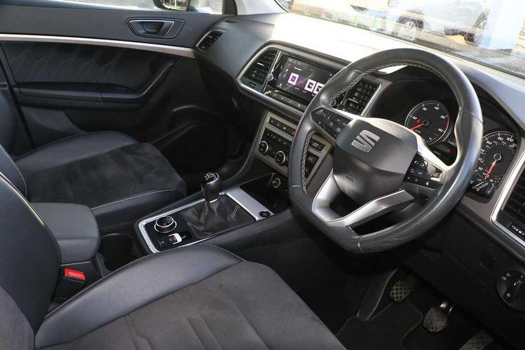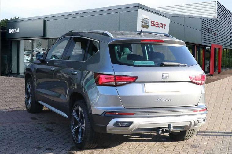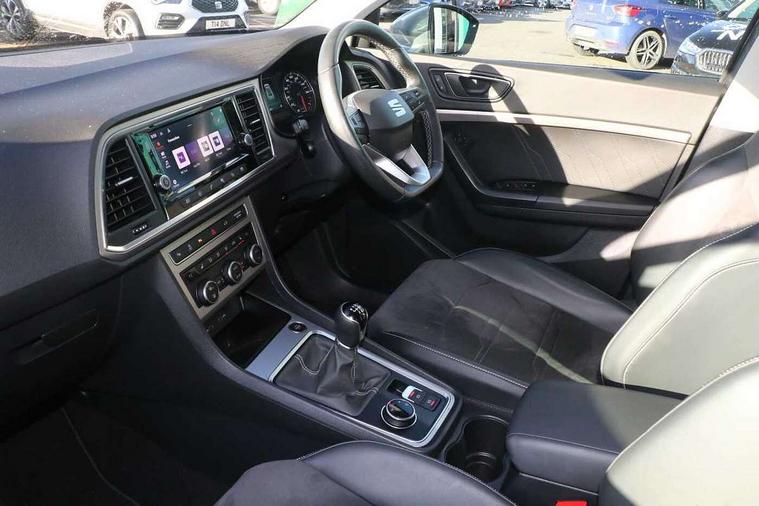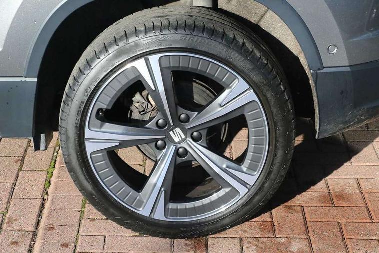 8" Digital cockpit, Colour multi-function on board computer display, E-call, Electric tailgate closing, Outside temperature gauge, Progressive power assisted steering, Rear view camera, SEAT drive profile with driving experience button - Normal, Sport, Eco and Individual mode, steering and throttle response, Self parking functionality (includes front and rear parking sensors), Start/stop system, Tailgate, Trip computer, Wired Full Link, Wireless phone charger, Steering wheel mounted audio/phone controls, Black simulated exhaust pipes, Black wheel arch surrounds, Body colour bumpers, Chrome front grille frame, Chrome roof rails, Chrome side window trim, Dark tinted rear windows, Daytime running lights, Door mirrors with welcome light silhouette, Dynamic headlight range control with self adjusting whilst driving, Electric adjustable/heated/folding door mirrors, Front and rear electric windows, Front grille hot stamping, Full LED headlamps with lens and LED front fog lamps with cornering function, Heated windscreen, Illuminated aluminium front door sill, LED rear tail lights with dynamic indicators, Rear fog lights, Rear side wing doors, Rear wash/wipe, Reflex silver side mouldings, Roof spoiler, Third brake light, Variable front intermittent wipers, 12V socket in front, 3 seat bench in 2nd row, 60/40 split folding rear seat, Drawer under right front seat, Dual zone climate control, Front and rear head restraints, Front centre armrest, Front seat back storage pockets, Height adjustable driver and passenger seat with lumbar adjustment, ISOFIX points in outer rear seats with top tether anchorage points, Leather steering wheel and gear knob, Microsuede upholstery with front comfort seats, Rear armrest and easy back seat release mechanism from boot, Single front passenger seat, Convenience pack - Ateca, Interior lighting pack - Ateca, Media system plus pack - Ateca, Safe and driving pack - Ateca, 3x3 point rear seatbelts, ABS, Traction control system (TCS), Electronic stability control (ESC) and Electronic differential lock system (XDS), Airbags - Driver and front passenger airbag with deactivation, front side, two curtain and driver's knee airbags, Electric parking brake with auto hold function, Front and rear seatbelt reminder, Hill hold control, Manual rear child locks, Single tone horn, Tiredness recognition system, Traction control, Tyre pressure monitoring system, Alarm, Keyless entry, Locking wheel bolts, Remote central locking, Chrome interior detailing, 19" Exclusive 36/5 Machined Aerowheels in Nuclear Grey,