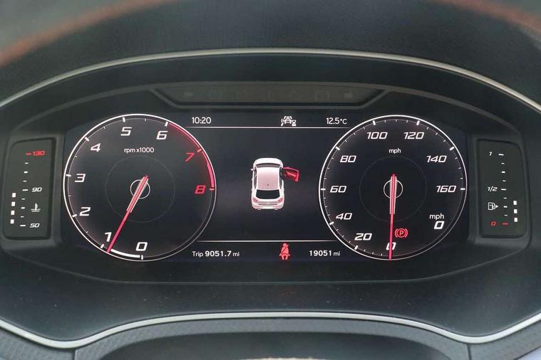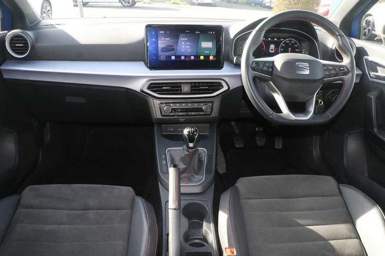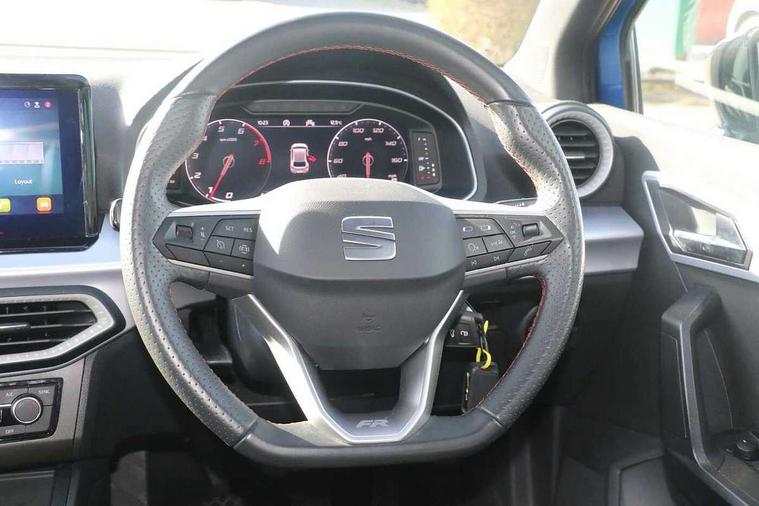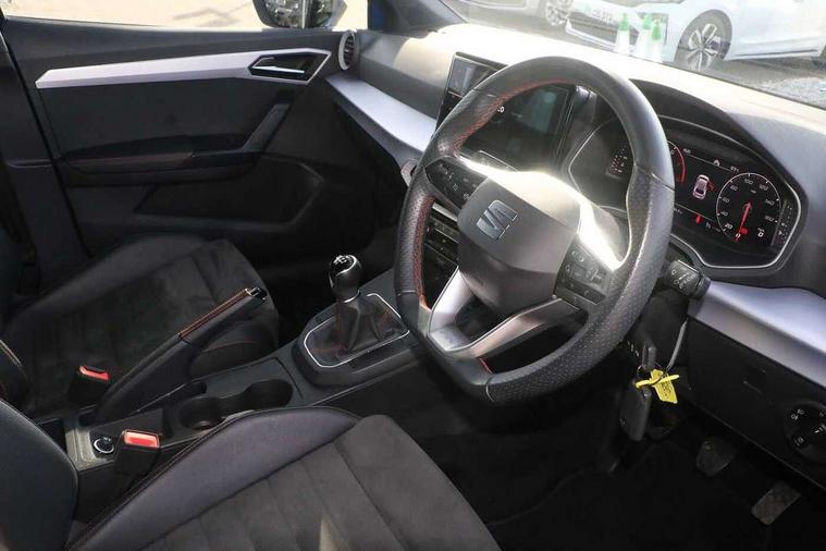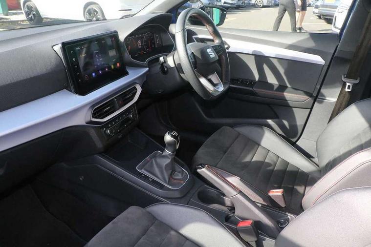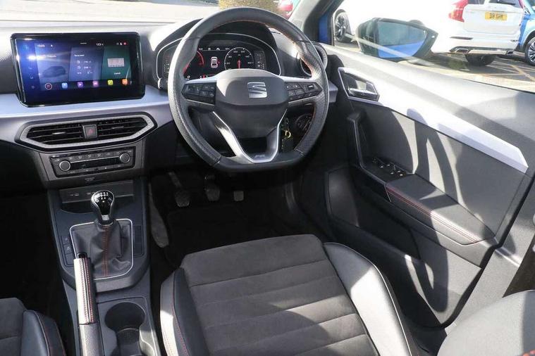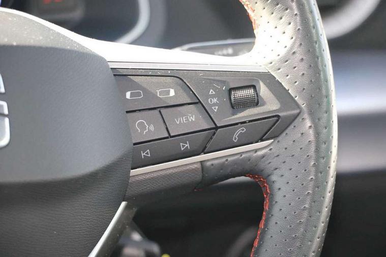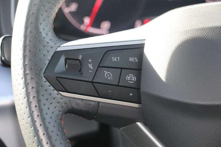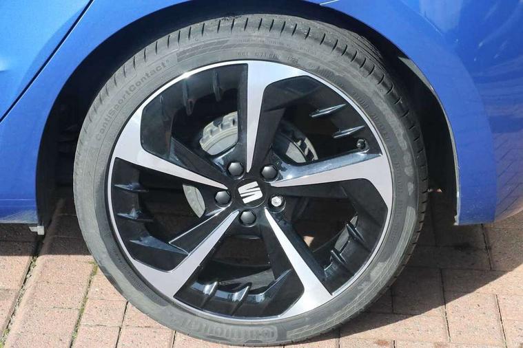 'Lights On' Reminder warning buzzer, 10" Digital cockpit, 9.2" touchscreen navigation system with type C USB socket, Voice control and DAB/AM/FM radio, Auto start and stop system, Bluetooth audio streaming with handsfree system, Cruise control, Digital clock, E-call, Full link smartphone integration with mirror link, wireless apple carplay, Google android auto + USB Type C cable for apple and android devices, Lane assist, Low fuel warning light, Outside temperature gauge, Power Steering, Seat connect with safety, service, remote and online, SEAT logo boot release, Speed limiter, Trip computer, Sports suspension, Auxiliary input socket, Radio/MP3 player, SD card slot, Steering wheel mounted controls, Anti theft roof antenna, Auto dimming rear view mirror, Automatic rain sensing wipers, Black door mirrors, Body colour bumpers, Body colour door handles, Brilliant black window surrounds, Dark tinted rear windows, Electric adjustable/heated/folding door mirrors, Electric front windows, Electric headlight adjustment, Electric rear windows, Front/rear fog lights, FULL LED automatic headlights with dynamic headlight range control, coming and leaving home, LED daytime running lights, LED tail lights, Rear roof spoiler with FR twin exhausts, Rear side wing doors, Rear wiper, Third brake light, 3 seat bench in 2nd row, 60/40 split folding rear seat, Ambient interior lighting, Chrome detailing and black headlining, Comfort seats, Dual zone climate control with combination filter, Front courtesy lights, Front cupholders x 2, Front reading lights, Gear shift indicator, Glovebox, Height adjustable front and rear headrests (five), Height adjustable front seats, Height/reach adjust steering wheel, Illuminated air vent surrounds, Illuminated boot, Instrument lighting with brightness control, Isofix, Leather multifunction flat bottomed sports steering wheel, Microsuede cloth upholstery, Passenger sunvisor, Single front passenger seat, Storage pockets on back of front seats, Sunvisors with mirror and driver side card holder, 3 point seatbelts on all 3 rear seats, ABS, Active front headrests, Child locks on rear doors, Electronic stability control, Energy recovery system, Front assist forward collision warning and autonomous emergency braking, Front driver and passenger side airbags with curtain airbag and front passenger airbag deactivation, Hill hold control, Multi-Collision braking, Seat belt reminder for front and rear seats, Tiredness recognition system, Tyre pressure monitoring system, Electronic engine immobiliser, Locking wheel bolts, Perimeter alarm and interior monitoring with backup horn and tow away protection, Remote central locking + deadlocks, 18" Performance machined alloy wheels in black and grey, Emergency tyre repair kit,