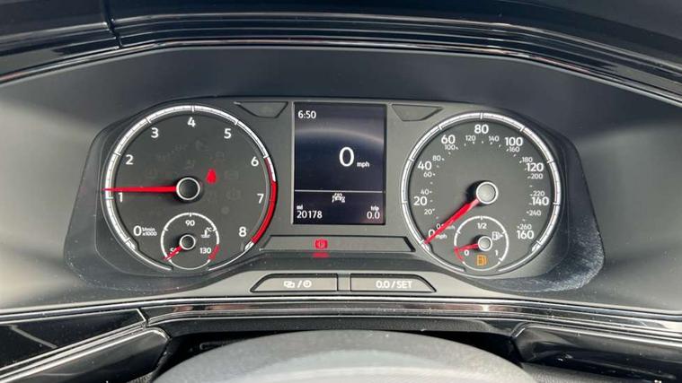 'Lights On' Reminder warning buzzer, Adaptive cruise control including front assist, forward collision warning, autonomous emergency braking, speed limiter, Blind spot monitoring, Bluetooth telephone and audio connection for compatible devices, Car information display, Digital cockpit, Driver alert system, eCall emergency call system, Lane assist, Low washer fluid warning light, Multifunction computer with visual gear change recommendation for fuel consumption, Operating permit alteration, Power assisted speed sensitive steering, Speedo, rev counter, electronic odometer, trip, service interval display, exterior temperature and fuel gauge, Stop/start system, Warning sound and light for doors and tailgate open, Warning sound and light for front seatbelts unfastened, We Connect Go Dongle, Wireless Car net app connect with Apple CarPlay, combined functionality of Apple CarPlay/Android Auto and MirrorLink, Battery regeneration during braking, Misfuel prevention device, 2x USB connection with USB charging sockets and in rear centre console, DAB Digital radio receiver, Diversity antenna for FM reception, Multi device interface (MDI) with USB connection, Music playback - MP3, WMA and AAC files, Premium USB cable for Apple or Android smartphone compatibility, Simultaneous pairing of 2 compatible mobile devices, Title and cover art display, Automatic hazard lights activation under emergency braking, Black door mirrors, Black roof rails, Body colour door handles, Body coloured bumpers, Dusk sensor + automatic driving lights, Electrically foldable, adjustable and heated door mirrors with reverse activated kerb view adjustment on passenger's side, Front and rear electric windows, Front fog lights with static cornering function, Galvanised body, Heated rear window, LED third brake light, Lower door sills and door pillars in black, Radiator grille with high gloss surface and chrome strip, Rear fog light on one side, reversing light on both sides, Rear lights incorporating LED technology, Rear side wing doors, Rear tinted glass 65% approx light absorbing from B pillar backwards, Rear window aerial, Rear windscreen washer and wiper with interval delay, Reflectors in all doors, Tailgate with integrated roof spoiler, Windscreen wipers/ intermittent wipe + 4 position delay, 12V Accessory socket in centre console, 3 rear head restraints and 3 rear three point seat belts with ECE label, 3 seat bench in 2nd row, 60/40 split folding rear seat backrest, Comfort front sport seats, Diag cloth upholstery, Drawer under drivers seat, Driver and front passenger sunvisor with vanity mirror, Driver's sunvisor with ticket holder, Dust and pollen filter, Front + rear carpet mats, Front and rear reading lights X 2, Front centre armrest with storage compartment, Front seat back storage pockets, Front seats with adjustable lumbar support, Glovebox, Heating and fresh air system with 4 stage blower, Height/reach adjust steering wheel, Instrument lighting white adjustable panel illumination, Interior light with delay, Isofix child seat preparation for 2 rear child seats, Luggage compartment cover, Luggage compartment lighting, Manual air conditioning, Moveable and foldable Rear bench seat, Single front passenger seat, Storage compartment in drivers and front passengers door, Three spoke multi-function leather trimmed steering wheel and gearknob, Variable boot floor, Anti-lock Braking System (ABS) with Hydraulic Brake Assist (HBA), Automatic post collision braking system, Driver and front passenger safety-optimised head restraints, Drivers and Front Passengers airbags with front passengers airbag deactivation switch, ESC with EDL, ASR, EDTC and trailer stabilisation function, Front and rear curtain airbags, Front disc brakes and rear drum brakes, Front seat side impact airbags, Height-adjustable front three-point seat belts with tensioners, Hill start assist, Pre crash preventive occupant protection, Rear door child safety locks, Rigid safety cell with front and rear crumple zones, Single torn horn, Tyre pressure loss indicator, Volkswagen roadside assistance, Alarm with interior protection and deactivation via infotainment system, Child security locks in rear doors, Electronic engine immobiliser, Remote tailgate unlocking using key fob, Decorative inserts transition high gloss black/platnium grey, 17" Manila black diamond turned surface alloy wheels + anti theft wheel bolts, Breakdown kit,