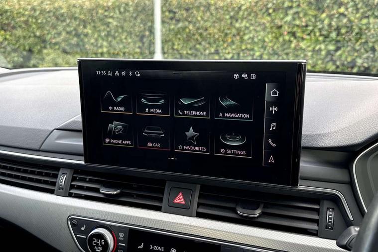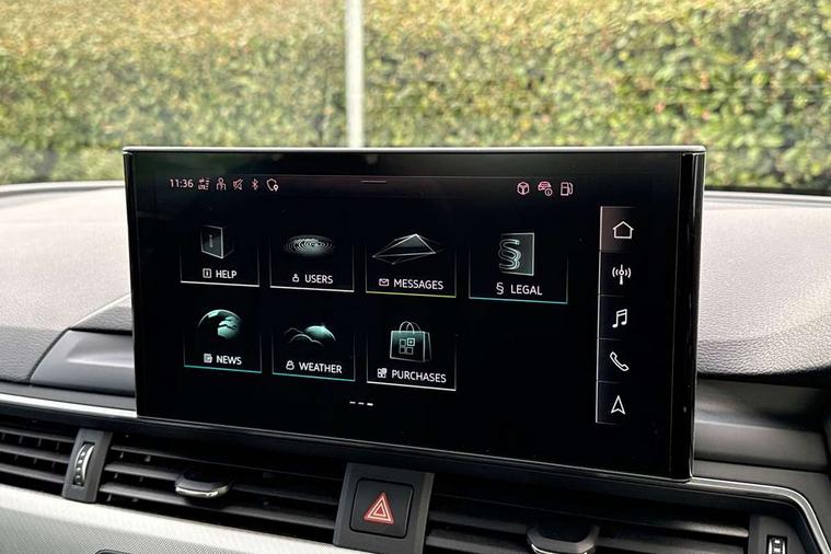 Audi connect safety and service (e-call), Audi drive select, Audi parking system plus with front and rear sensors, Audi smartphone interface, Audi virtual cockpit, Automatic start-stop system with coasting functionality and efficiency programme, Bluetooth interface, Cruise control system with speed limiter, Electric boot lid release, Electromechanical power steering, MMI Navigation plus with MMI touch includes 10.1" high resolution colour MMI display, 3D map, Rear view camera, Voice control system, 54 litre fuel tank, Comfort dynamic suspension, 2 USB charging ports, 8 passive loudspeakers, DAB digital radio reception, Auto dimming rear view mirror, Body coloured door mirrors, Electrically folding auto dimming/adjustable/heated door mirrors with LED side indicators and kerb view function for passenger side, LED headlights and rear lights with LED daytime running lights, New design rear diffuser, Rain and light sensors, Windscreen with acoustic glazing, 3 spoke high multi-function leather sport steering wheel with height and reach adjustable, 4 way electric lumbar support for driver and front passenger, 40/20/40 split folding 3 rear seat bench in 3 parts with rear centre armrest, Deluxe 3 zone electronic climate control, Door sill trims with aluminium inlay, Front and rear head restraints, Front centre armrest, Heated front seats, Interior lighting, ISOFIX child seat mounting and top tether, Manual seat adjustment, High gloss package - A4, 3 rear seatbelts, 6 airbags - Driver, front passenger, curtain and side windows, Electronic Stabilisation Control (ESC) including ABS, ASR and EDL, Hill hold assist, Multi collision brake assist, Pop-up bonnet for pedestrian protection, Pre sense city, Seatbelt monitoring, Warning triangle and first aid kit, Anti theft alarm, Anti theft wheel bolts, Keyless Go, Tool kit, Tyre repair kit,