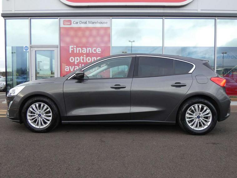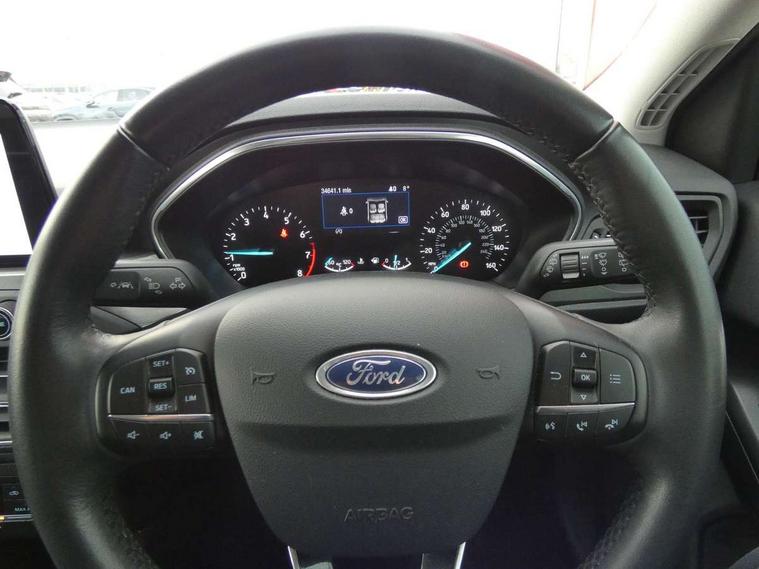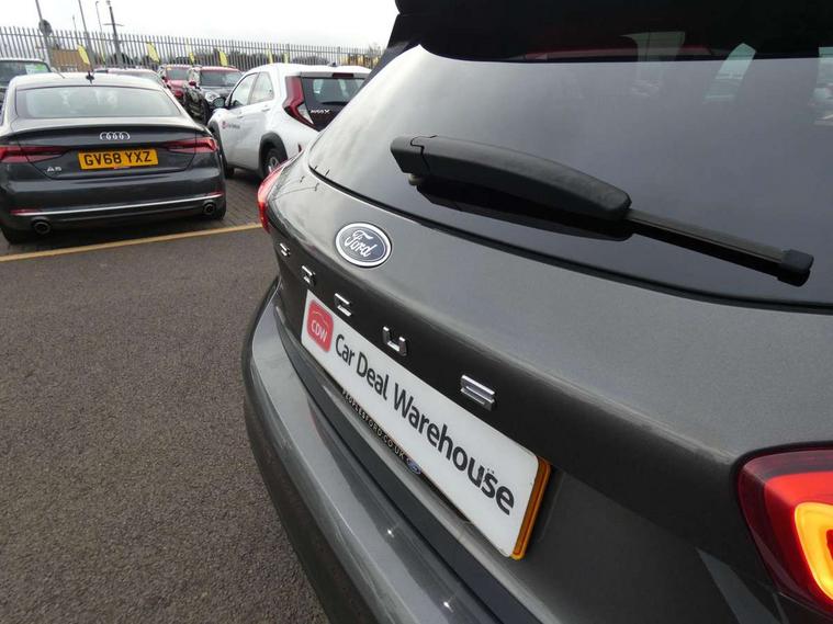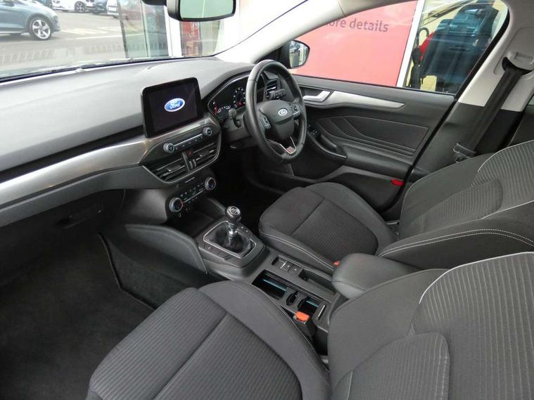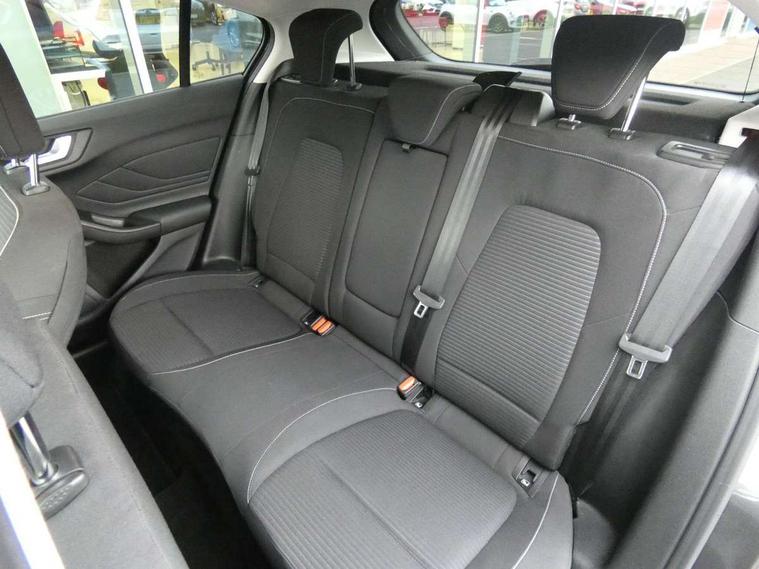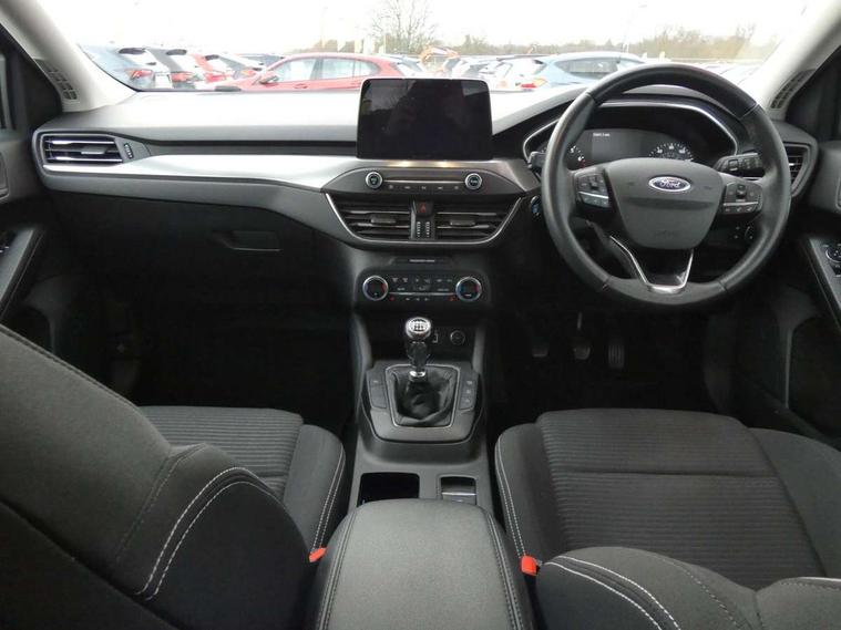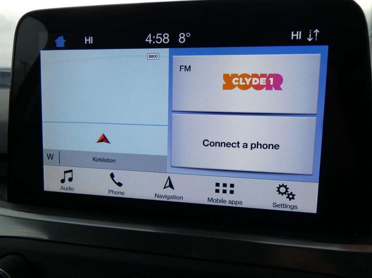 4" TFT coloured cluster screen, Bluetooth system, Digital clock, Easy fuel capless refuelling system, Eco mode, Ford pass connect, Ford SYNC 3 nav system with DAB radio, 8" colour touch screen, voice control, app link, Apple car play/Android auto and 4.2" TFT coloured cluster, Lane keeping aid with lane departure warning, PAS, Selectable drive mode, Trip computer, 2 USB ports, Aux input, 'Quickclear' heated windscreen/heated washer jets, Auto dimming rear view mirror, Auto headlamps (on/off), Automatic rain sensing wipers, Body colour large rear spoiler, Body coloured bumpers, Body coloured door handles, Body coloured electrically operated and heated door mirrors with side indicators, Electrically operated front and rear windows with one touch opening and closing, Front fog lamps with cornering function, Front variable intermittent wipers with electric wash, Halogen reflector headlamps, Heated rear window, LED daytime running lamp, LED rear lamps, Power folding door mirrors with puddle lights, Tailgate wash/wipe, Upper grille with chrome surround and horizontal bars, 3 spoke leather trimmed steering wheel with integrated audio controls, 60/40 split back and cushion rear seats with 2 height adjustable headrests, Ambient lighting, Centre console with sliding front armrest, Cloth upholstery, Driver's lumbar support, Dual zone electronic air temperature control, Front/rear floor mats, Heated front seats, Height adjustable front headrests, Isofix child seat preparation, Leather gear knob, Reach + rake adjustable steering column, Rear centre headrest, ABS+Electronic Brake force Distribution, Auto hold function, Driver airbag, Electronic parking brake, Electronic stability control, Front and rear seatbelt reminder, Front inertia reel height adjustable seatbelts with pre-tensioners, Front passenger airbag, Front side airbags, Hill start assist, Passenger airbag deactivate switch, Post collision braking, Pre collision assist with autonomous emergency braking and pedestrian/cyclist detection, Side curtain airbags, Three rear inertia reel lap/diagonal seatbelts, Tyre pressure monitoring system, Ford keyfree system with Keyless entry and keyless start, MyKey system, Remote central locking & engine immobiliser, Thatcham category 1 alarm, 16" 15 spoke sparkle silver alloy wheels, Mini steel spare wheel,