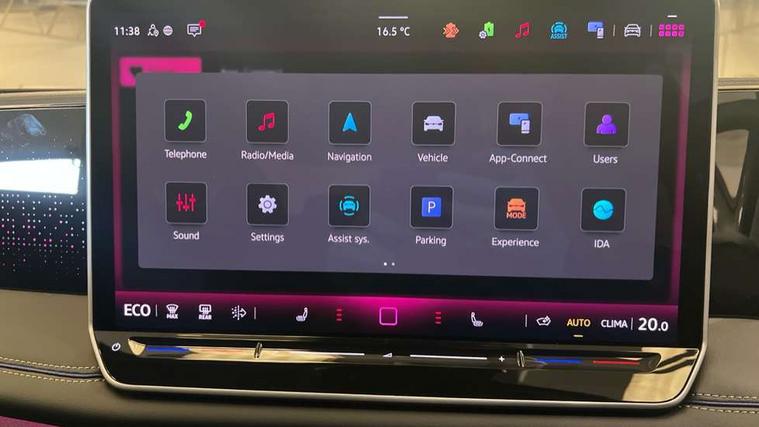 Adaptive cruise control (ACC), Advanced driver attention and drowsiness monitor, Bluetooth mobile phone interface, Digital Cockpit Pro - 10.25" high resolution dash display screen with customisable menus and information, Driving profile selection, Dynamic road sign display, E-Sim card for online connectivity, Easy Open and Close Electric tailgate with virtual pedal activation, eCall emergency call service, Extended safety system (proactive passenger protection system), Front Assist - Autonomous emergency braking with pedestrian and cyclist monitoring, IDA voice assistance with ChatGPT, Inductive smartphone charging without external antenna connection, Lane change system, Side assist, Rear traffic alert and Exit warning system, Multifunction front facing camera, Navigation system, Oncoming vehicle braking when turning including swerve support, Park assist plus with park distance control, Power assisted steering with speed sensitive, Progressive steering, Start/stop system with regenerative braking, Tailgate/trunk lid unlocking from outside, Warning signal and warning light for front and rear seatbelts not fastened, Wireless App-Connect, Adaptive chassis control DCC pro includes driving mode selection, Charging cable Mode 2 Type 2 / G (10A), Charging cable Mode 3 Type 2 / 3 (32A), Front shock absorption G08, Front wheel drive, Rear shock absorption, 12.9" infotainment display, Digital radio reception (DAB), Diversity antenna for FM reception, 3D rear combination light special signal pattern, Ambient lighting with logo projection, Auto dimming interior rear view mirror, Automatic headlight control system, Body coloured door handles, Chrome moldings on the side windows, Coming/leaving home lighting function, Dynamic headlight range control with dynamic cornering light, Exterior mirrors convex on the left and aspherical on the right, Heat insulating glass in side and rear windows, Heat insulating windshield, High Beam Assist, automatic sensing for switching between dipped and main beam, High level 3rd brake light, Highway light, Illuminated door handle recesses, Illuminated lightline between headlamps, Illuminated logo front and rear, Laminated safety glass windshield, LED headlamps, LED separate signature day time running light, Poor weather light, Rain sensor windscreen wipers, Rear fog light on one side, reversing light on both sides, Rear side wing doors, Rear wiper, Remote electrically foldable door mirrors, puddle lights and reverse activated passenger's door mirror, 12V outlet in center console rear and in luggage compartment, 12V socket in centre console, 2 USB-C ports in the front, 2 USB-C charging sockets on the centre console in rear, charging capacity up to 45 W, 3 bench rear seats in 2nd row, Air care climatronic 3 zone air conditioning system with rear air conditioning control panel, Black roof lining, Brushed stainless steel pedals, Carpet mats, front and rear, Centre console with illuminated storage compartment with sliding cover and two drinks holders, Chrome elements on the mirror switch and power window switches and door pulls, Door and side trim panel insert in Art velour, Drivers seat with manual adjustment of seat travel and height and backrest angle with thigh support longitudinally sliding, Front centre armrest, Front integrated head restraints, Front massage seats, Front scuff plates in aluminium, Front seats with manual height adjustment, Greyson sports cloth upholstery with inner side bolsters in artvelours, Interior ambient lighting with 30 colour options, ISOFIX anchors for child seats on outer rear seats and front passenger seat compatible with i-Size, Leather wrapped heated multifunction steering wheel with touch control and paddle shift, Mechanical rear seat release, Power adjustable lumbar support in front, Rear bench seat, split folding, longitudinally movable and folding with load-through hatch and centre armrest, Safety optimised front head restraints, Single front passenger seat, Sports comfort seats in front, Sun visors with illuminated vanity mirrors, Three rear head restraints, 3 point seat belt for centre rear seats, 3 Point seat belts in front with pretensioners, 3 point seatbelts in outer rear with ECE label, Driver and front passenger airbag with front passenger airbag deactivation, Electronic parking brake with auto hold, First aid kit with warning triangle and safety vest, Front and rear curtain airbags, Front centre airbag, Front disc brakes, Hill start assist, Manual child proof rear door locks, Rear disc brakes, Rear side airbags, Two tone horn, Tyre pressure monitoring system, Alarm with interior protection, Central locking system keyless entry, Interior door handle in matte chrome, Soul instrument panel, Tyre mobility kit including compressor and sealing foam,