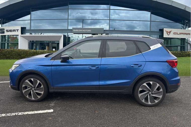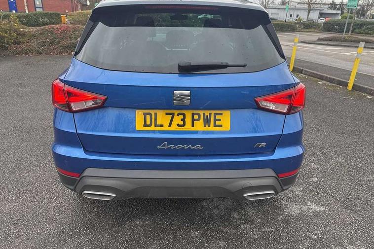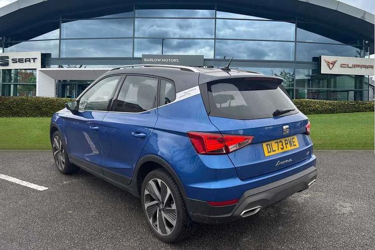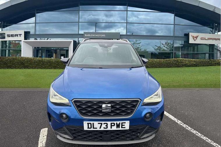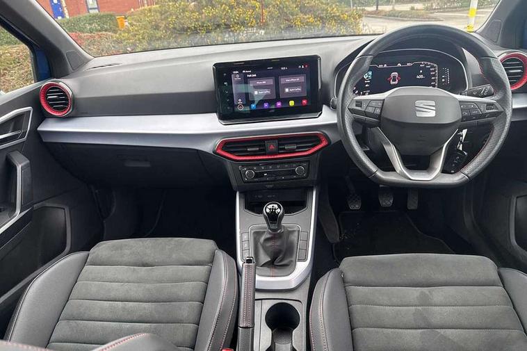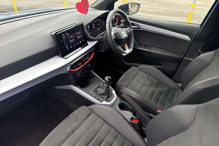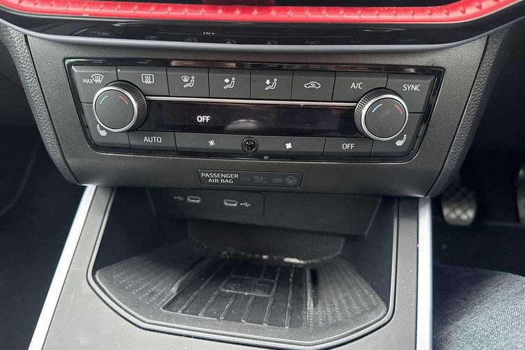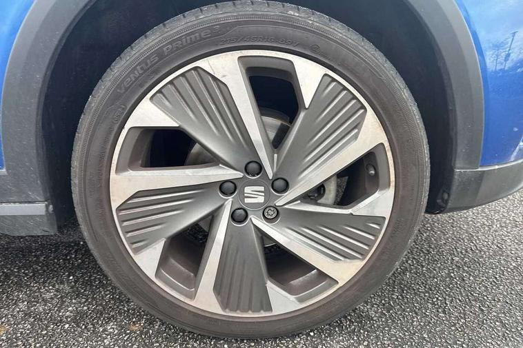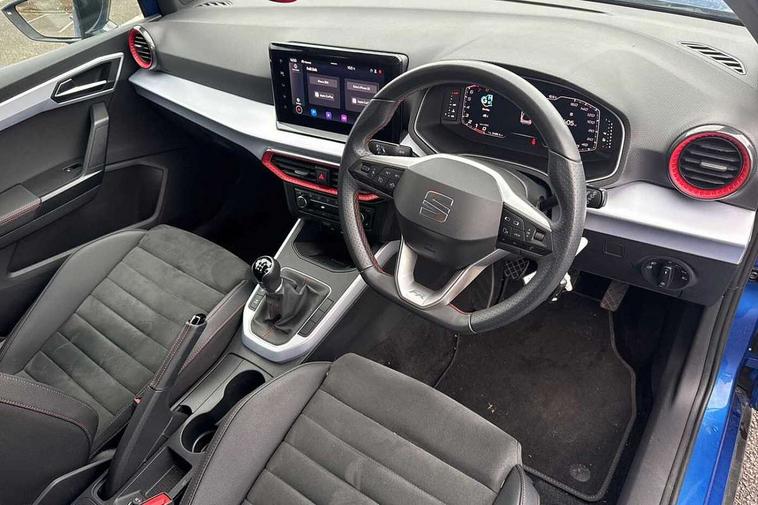 'Lights On' Reminder warning buzzer, 10" Digital cockpit, Digital clock, E-call, Electric speed sensitive power steering, Full Link Smartphone Integration with Mirror Link, Apple Car Play, Google Android Auto with USB Type C cable for Apple and Android compatibility, Low fuel warning light, Outside temperature display, Rear parking sensor, RPM counter, Seat connect with safety, service, remote and online, SEAT Drive profile - Four different models normal-sport-eco-individual, steering response, throttle response, Trip computer, Wireless phone charger, 9.2" colour touchscreen with navigation system, voice control and USB port (type c), Bluetooth interface for hands free and audio streaming, DAB digital radio and AM/FM radio, Steering wheel mounted audio controls, Anti theft roof antenna, Auto dimming interior rear view mirror, Automatic activation of hazard warning lights, Body coloured bumpers, Body coloured door handle inserts, Chrome roof rails and window surrounds, Dark tinted rear windows, Electric front/rear windows, Electrically adjustable, heated and folding door mirrors, Front fog lights with cornering function and rear fog light, FULL LED automatic headlights with dynamic headlight range control, coming and leaving home, LED daytime running lights, LED rear tail lights and licence plate lights, Protective side mouldings, Rain sensing wipers, Rear side wing doors, Rear spoiler, Rear window wash/wipe, Roof colour door mirrors, Third brake light, Twin exhaust pipe styling hidden exhaust pipe, Visible VIN plate, Windshield wiper with intermittent control and potentiometer, 2 cupholders, 3 seat bench in 2nd row, 60/40 split folding rear seat, Aircare filter, Black interior roof, Double boot floor, Driver sunvisor with covered mirror + card holder, Dual zone climate control, Front comfort seats, Front courtesy light with front reading lights, Front seat back storage pockets, Gear shift indicator, Heated front seats, Height adjustable front seats, Height/reach adjustable steering column, Illuminated boot, Instrument lighting with brightness control, Interior ambient lighting, Interior light in footwell, central console and door panel, ISOFIX points in outer rear seats with top tether anchorage points, Microsuede cloth upholstery, Passenger sunvisor with vanity mirror, Perforated flat bottomed leather steering wheel/gear knob/handbrake with red stitching and FR logo, Single front passenger seat, Two front and three rear height adjustable headrests, Interior chrome pack - Arona, 3 point seatbelts on all rear seats, ABS, Active front headrests, Child locks on rear doors, Driver and front passenger airbags with front passenger airbag de activation, front side and curtain airbags, Electronic stability control, Emergency Brake Assist (EBA) and front assist, Front and rear seatbelt reminder, Hill hold control, Multi-Collision braking, Tiredness recognition system, Traction control, Tyre pressure monitoring system, Alarm with back-up horn, Electronic engine immobiliser, Locking wheel bolts, Remote central locking + deadlocks, Tow away protection, Titan black dashboard, 18" Performance Cosmo grey matt alloy wheels,