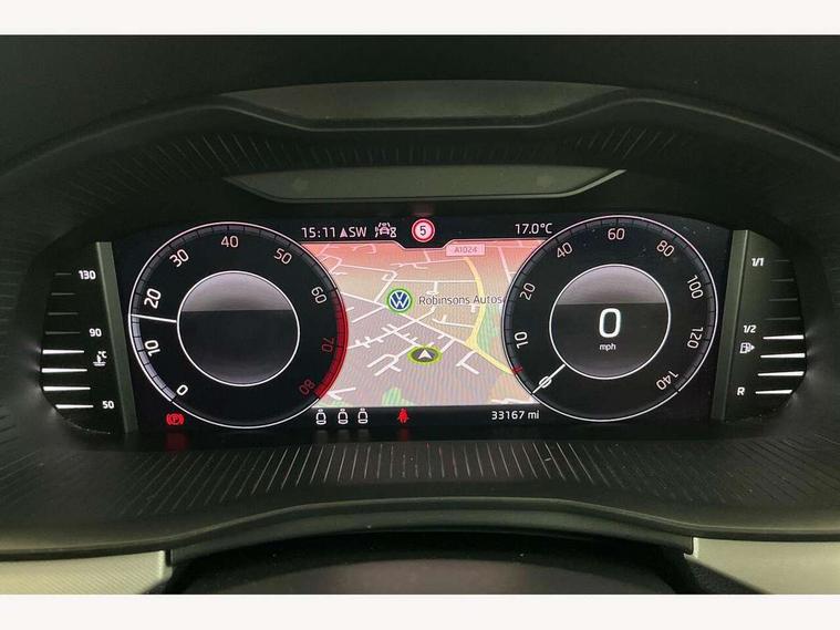 Amundsen satellite navigation with 9.2" touchscreen display, voice control, virtual cockpit and web radio, Bluetooth system, E-call, Front assist system, Lane assist, PAS, Service indicator, Speed limiter, Trip computer, Virtual cockpit with 10.25" display, Wireless SmartLink for apple car play, android auto and mirrorlink, 2 USB - C ports with 1x adaptor cable, Auxiliary input socket, DAB Digital radio, Auto dimming rear view mirror, Body colour bumpers, Body colour door mirrors and handles, Chrome grille surround, Electric folding door mirrors, Electrically adjustable and heated door mirrors, Front and rear electric windows, Headlight range control, Heated rear window, High functionality rear led lights with dynamic indicators, Privacy glass, Rear fog lights, Rear wiper, 12V Accessory socket in centre console, Chrome inner door handles, Dual zone climate control, Front gesture control, Front head restraints, Glove compartment with illumination, Ice scraper, Isofix child seat fittings on outer rear seats, ISOFIX on front passenger seat, Manual lumbar support for front seats, Pollen filter, Rake/reach adjustable steering wheel, Reading lights for driver and front passenger, Sun visor with make up mirror for front passenger, Textile floor mats, Third rear headrest, Top tether for front passenger seat, Umbrella in driver's door, 3x3 point rear seatbelts, Airbags - driver and front passenger, ESP, Front passenger airbag deactivation switch, Front side airbags with curtain airbags, Hill hold control, Manual parking brake, One tone horn, Rear disc brakes, Seatbelt reminder for driver an co-driver, Traction control, Tyre pressure monitor, Alarm with interior monitoring, back up horn and tilt sensor with safe function and towing protection, Anti-theft wheel bolts, Immobiliser, Remote central locking with SAFE system,