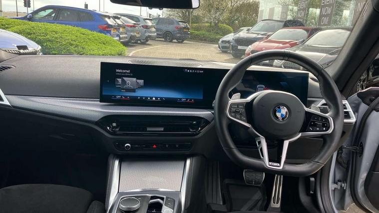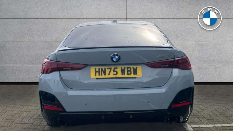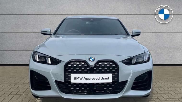 Active guard plus, Attentiveness assist, Automatic start/stop function, BMW ConnectedDrive online services, BMW iDrive controller on centre console, BMW service history, BMW Teleservices, Brake pad wear indicator in front and rear, Check Control warning system for monitoring of lights and door/luggage compartment open warning, Condition based service, Electric bootlid, Electric power steering with Servotronic steering optimised at all speed ranges, Instrument cluster with speedometer with mph readout, tachometer, fuel gauge and oil temperature gauge, Integrated owners handbook, Language version English, Oil sensor for level and grade, On board computer - average speed, fuel consumption, outside temp display with acoustic warning, clock/date, service interval, odometer/trip meter, Run flat indicator, Shifting point display, Start/stop button in black, Variable sport steering, 8 speed automatic steptronic transmission with gearshift paddles, Balanced 50/50 weight distribution, Double joint spring strut front axle, Drive experience mode switch - Comfort mode, ECO PRO mode and SPORT mode, Electronic differential lock control (EDLC), Low centre of gravity, Petrol Particulate Filter, Stroke dependent dampers, DAB tuner, Personal eSim, Acoustic glazing, Automatic headlight beam throw control with load dependent regulating reaction, dynamic compensation of braking dive and acceleration squat, Automatic windscreen wipers and automatic headlight, BMW radiator grille with mesh grille, end face of the nuggets in aluminium matt and frame in chrome matt, Body colour fuel filler flap, Body colour roof fin, Bonnet and tailgate badge, Electric folding wing mirrors - Driver side electrochromic, auto anti dazzle function & front passenger side auto parking function without anti dazzle, Electric windows - front and rear, with open/close fingertip control, anti trap facility and comfort closing function all round, Follow me home headlights, Front and rear bumper system, Front apron plastic in body colour, Green tinted heat protection glazing, Illuminated bow type door handles in body colour drivers side with door lock, Interior rear view electrochromatic mirror with automatic anti dazzle function, LED 3rd brake light, LED daytime running lights, LED front fog lights, LED front indicators, Licence plate panel integrated into front bumper and tailgate, Low and high beam headlights in Bi-LED, M designation on front side panels, left and right, M Sport entry door sill strips, One piece front bumper cover including towing eye cover in body colour, Preparation for high beam assistant, Rear side wing doors, Rear wiper, Reversing light, Side frame trim strip black matt, Two part LED tailights in L-shape with components in smoked glass, brake light, LED turn indicator and rear fog light, Visible exhaust tailpipe finisher, Visible VIN plate, Welcome lights in interior and door handle area, Widened track and increased camber values for max transverse dynamics, agility and steering precision, Windscreen washer jets concealed underneath bonnet, 12V power socket in front centre console, 2 front cupholder in centre console with clamping elements and matt black inlay, 3 rear headrests, 3 seat bench in 2nd row, 3 spoke flat bottom M sport leather multifunction steering wheel, 3 zone automatic air conditioning, 4 pieces lashing eyelets in luggage compartment, 40:20:40 split folding rear seat, folding head restraint of centre seat and rear centre armrest with two cupholders, Anthracite headlining, Armrest integrated in front and rear door trim + front centre console armrest, Battery in luggage compartment, BMW ID, Extended storage - 2x Dual USB Type C 3A charging function in the rear centre console for the rear, Extended storage - Luggage compartment partition net on left side trim panel, Bag hook on both sides of the luggage compartment, Extended storage - Multifunction hook, Extended storage - Trailer tow hitch button in black (extendable trailer tow hitch) on the right hand side, Four grab handles integrated in roof lining, Front and rear door pockets, Front footwell lights, Heated driver and front passenger seats, Height adjustable front headrests, Illuminated armrest storage compartment, Illuminated glove compartment with separate small compartment, Interior light and front reading light, Luggage compartment light, Single front passenger seat, Steering column adjustment - Infinitely variable in height and length, Sunvisors with illuminated vanity mirrors and ticket pocket, Through load system, Toolkit located in luggage compartment, Velour front floor mats, Ambient lighting pack - 4 Series, BMW Live Cockpit Plus pack - 4 Series, Connected professional package - 4 Series, M High gloss shadowline exterior trim pack - 4 Series, M sport exterior styling pack - 4 Series, Park assist pack - 4 Series, 3 point seatbelts on all seats, BMW emergency call, Brake energy regeneration, Braking pre-tensioning, Child locks, Child seat ISOFIX attachment for the two outer rear seats, Crash sensor activating of airbags, Unlocking doors, hazard warning lights, interior light, safety battery terminal, Driver and front passenger side airbags, integrated in the door side seat backrest bolsters for all seat variants, Driver/Front Passenger airbags, Dry braking, Dynamic brake control, Dynamic stability control + (DSC+) - Anti-lock Braking System (ABS) with brake assist and cornering brake control + Automatic Stability Control (ASC), Dynamic Traction Control - DTC, Electric parking brake including automatic hold function and automatic release of the parking brake when driving off, Front and rear ventilated brake disc, Front passenger manual airbag deactivation, Head airbags for all 4 outer seats, Hill start assistant, Seat belt security check for driver and front passenger, Seat belt with belt stopper, pyrotechnic belt tensioners and belt force limiters, Seat occupancy detection for driver and passenger side, Side impact protection, Tyre pressure 
