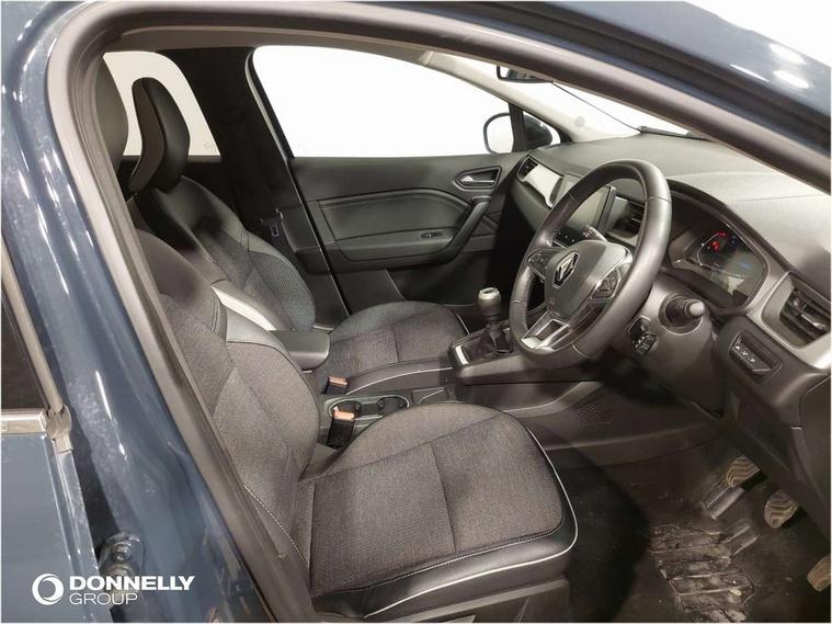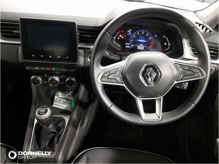 7" TFT Driver information display, Cruise control + speed limiter, EasyLink 7" touchscreen with navigation, google search and traffic information, Eco mode, Front and rear parking distance sensors, Gear change indicator, Lane departure warning system, Lane keep assist, Multisense with 3 driving modes + 8 ambient lighting colours, Rear view camera, Renault automatic emergency assist, Smartphone integration compatible with Apple CarPlay and Android Auto, Traffic sign recognition with over speed prevention, Trip computer, Variable assistance power steering, Wireless phone charger, DAB Radio with Bluetooth and USB, 2 reverse gear LED lamps and 1 rear LED fog lamp in the bumper, Auto dimming rear view mirror, Automatic front wipers with rain sensors, Automatic headlights, Automatic high/low beam, Black side door protection with chrome effect, Body colour door handles, Body coloured bumpers, Body coloured door mirrors, C Shaped LED front and rear lighting signatures with 3D effect on the rear lights, Chrome around front air deflectors, on front wing deco element and window lining, Day time running light, Drivers one touch window with anti-pinch feature, Extra tinted glass in rear windows and tailgate, Front and rear electric windows, Front grille with chrome upper trim, Full LED headlights, Grey front and rear skid plate, LED high level brake lights, LED rear fog lights, LED turn indicators on door mirrors, Longitudinal roof bars, Rear side wing doors, Rear wiper, Shark fin antenna, 12V Accessory socket, 60/40 split and fixed base rear seat bench, Automatic climate control with one touch demist function and air quality regulator, Central rear LED rooflight with 3 reading lights, Front head restraints, Glovebox, Heating system with pollen filter, Height adjustable driver's seat, Height adjustable passenger seat, Height/reach adjust steering wheel, ISOFIX child seat fixing points on rear outermost seats, LED front roof lights, Middle console with armrest and storage, Rear air vents, Rear head restraints, Single front passenger seat, Sliding rear bench, Synthetic leather steering wheel, Synthetic leather/cloth upholstery, 3 rear seatbelts, ABS+EBA, AEBS - active emergency braking system, Distance warning alert, Driver and front passenger and 3 rear passengers seatbelt reminder, Driver and front passenger, side, head and curtain airbags, Driver height adjustable seat belt, Electric parking brake with auto hold function, Electronic stability control, Front dash warning indicator in case of heavy braking, Front driver and passenger side airbag deactivation, Hill start assist, Manual passenger airbag deactivation function, Rear door and window child locking function for rear door, Tyre pressure warning light, Anti drill door locks and locking fuel cap, Central door locking, Deadlocking system, Hands free keycard with push button and start/stop function, RAID (Renault Anti-Intruder Device) automatic door locking, Black soft touch dashboard, 18" Pasadena diamond cut alloy wheels with grey inserts,