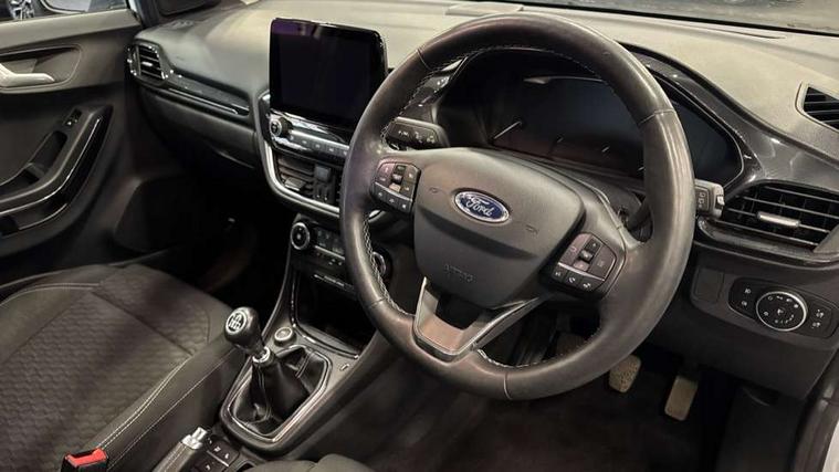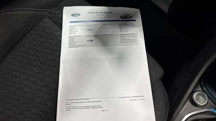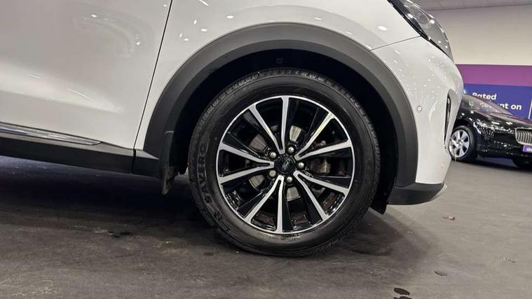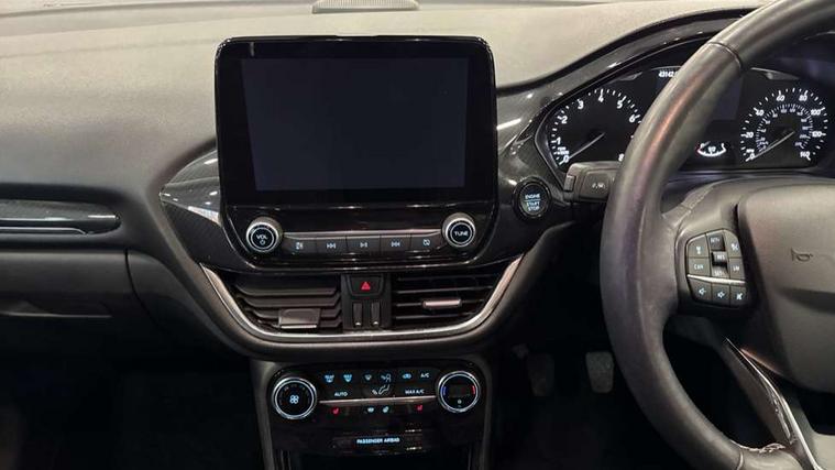 Ford easy fuel, Lane keeping aid with lane departure warning, Rear parking sensor, Selectable drive modes(Normal, sport, Eco, trail, slippery), Wireless charging pad, Automatic headlights with rain sensing wipers and auto high beam, Front fog lights with cornering lights and LED rear lamps, Power foldable heated door mirrors with puddle lamps, Privacy glass to side rear windows and tailgate glass, Projector headlamps with LED day time running lights, Quickclear heated windscreen, Alhambra cloth upholstery with casual bolsters, Centre console with armrest and stowage, EATC - Electronic Auto Temperature control, Ford megabox extended bootspace, Front and rear floor mats and tie down rings, Leather steering wheel/gear knob/handbrake, Lumbar massage for driver and passenger, Comfort pack - Puma, Driver assistance pack - Puma, Ford SYNC 3 navigation pack - Puma, 3 rear seatbelts, Electronic stability control (ESC) and hill start assist, Pre-collision assist with autonomous emergency braking, pedestrian/cyclist detection & post-collision braking, Tyre pressure monitoring system (TPMS), Thatcham alarm, 17" 10 spoke absolute black machined finish alloy wheel, Tyre inflation kit,
