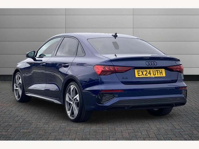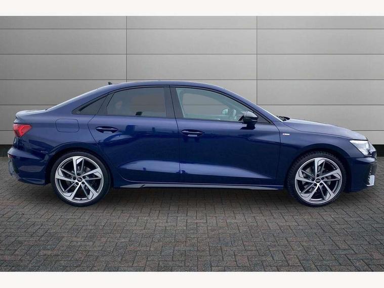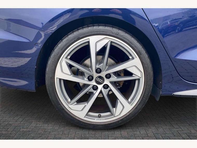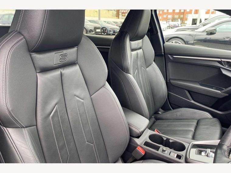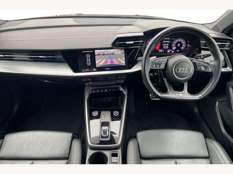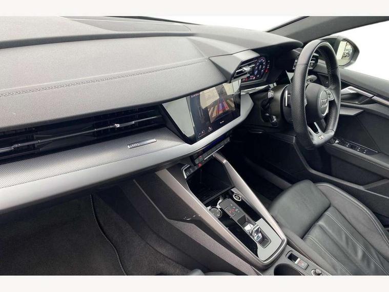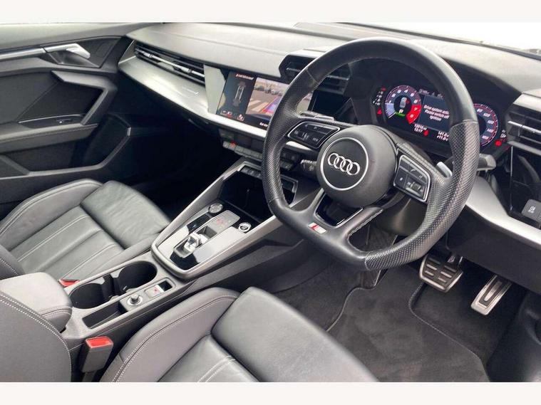 Audi drive select (Auto, Comfort, Dynamic, Efficiency and Individual), Audi smartphone interface, Audi Virtual Cockpit - 10.25" digital and colour instrument cluster, Automatic start/stop system with recuperation, Bluetooth interface, Camera based traffic sign recognition, Collision avoidance assistant, e-Call (emergency call), Electromechanical power speed sensitive steering, Lane departure warning system, MMI Navigation Plus with high resolution 10.1" colour touch screen display, Service indicator, Trip computer, Voice control system with natural language interaction, Sports suspension, 2xUSB-C connection with data and charging functions, 6 passive loudspeakers, CD player, DAB Digital radio, 3rd brake light, Acoustic glass windscreen, Audi beam uses LEDs to project the Audi logo onto the ground as you exit your A3, Auto dimming frameless rear view mirror, Electrically adjustable/heated/folding/auto dimming door mirrors with integrated LED indications + kerb view function for passenger side, Front electric windows, Illuminated door sills with aluminium inserts at the front with S logo, LED daytime running lights, LED headlights with LED rear lights and dynamic rear indicators, Light and rain sensors, Model and engine designation badges at rear, Privacy glass - dark tinted rear window, rear door and side windows, Rear boot, Rear electric windows, Rear side wing doors, S roof spoiler, 12V socket and storage compartment in front centre console, 3 seat bench in 2nd row, 3 spoke flat bottomed leather multifunction sport steering wheel with gear shift paddles, 4 way electrically adjustable lumbar support for driver and front passenger, 60/40 split folding rear seat bench, Black cloth headlining, Dual zone electronic climate control, Front and rear centre armrest in artificial leather, Front and rear headrests, Front/rear floor mats, Height and reach adjustable steering wheel, Interior lighting - glove compartment light and right hand side, Luggage compartment floor covering, Manual boot compartment lid, Single front passenger seat, Stainless steel pedals and front footrest in black, Twin leather upholstery with front sports seats S embossed logo, Aluminium interior elements pack - A3, Black styling pack - A3 Saloon/Black edition, LED interior lighting pack - A3 Saloon, 3x3 point rear seat belts, Driver and front passenger airbag with passenger airbag deactivation, Electronic Stabilisation Control (ESC) including ABS, ASR and EDL, First aid kit with warning triangle and 2 safety vests, Front side airbags with head airbags and interaction airbag, Pre-sense front with pedestrian and cyclist detection, Seatbelt monitoring, Tyre pressure loss indicator, Anti theft alarm, Anti-theft wheel bolts, Electronically operated child locks, Immobiliser, Remote control central locking, Aluminium air vent surrounds, Dark spectrum aluminium inlays, accent surfaces in the dashboard and centre console in platinum grey silk effect paint finish, 19" 5 arm trapezoid design alloy wheels in matt grey with diamond cut finish,