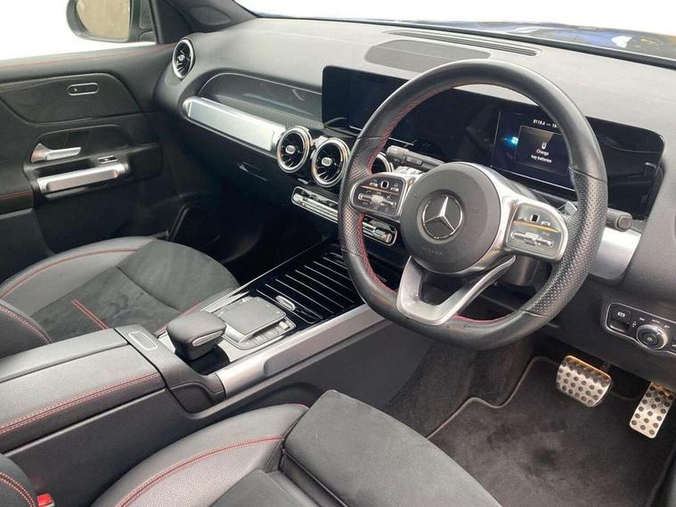 180 degree reversing camera, 7 inch digital instrument cluster display, Active lane keeping assist, Attention assist - Monitors steering behaviour and long journey fatigue, Brake pad wear indicator warning light, Car wash mode, Cruise control with limiter, DYNAMIC SELECT with a choice of driving modes (ECO, Comfort, Sport and Individual), ECO start/stop function, Fluid level warning indicator for fuel, oil, coolant and washer fluid, Hard disk navigation, Hey Mercedes Voice activation, Lamp failure indicator, Mercedes me connect including emergency call system, accident recovery, breakdown management and maintenance, Mercedes me remote services, Outside temperature gauge, Owners manual and service booklet in English, Parameter steering system, Pre-installation of private car share, Radio aerial integrated into front and rear windshields, Service indicator (ASSYST), Speed limit assist, Trip computer in multifunction display with current consumption indicator, Comfort suspension, Rear axle multi-link, 7 inch digital media screen display, DAB digital radio tuner, MBUX multimedia system with DAB digital radio and touchpad including satellite navigation, Mercedes Benz sound system (100 W) with 6 speakers, Pre installation for Mercedes Benz Link, USB (type C) port in front stowage compartment, USB (type C) ports (2) in stowage compartment, Adaptive brake lights, Aerial for GPS, AMG bodystyling door panels black grained with chrome plated inserts, AMG bodystyling front apron with chrome splitter, AMG bodystyling rear apron with diffuser optics and chrome trim element, AMG specific front and rear bumper including underride guard in high gloss chrome, Beltline strips and weather strip in chrome, Body coloured door handles, Body coloured door mirror caps, Electric adjustable and heated door mirrors with integrated LED side indicators, Exhaust system with dual flow exhaust pipes (non-functional), Front and rear electric windows, Headlamp assist automatic headlamp activation, Heated glass rear windscreen + timer control, High level LED third brake light, Interior mirror with black reading lamps and frameless, LED high performance headlamps with integrated LED daytime running lights, LED tail lamp, Polished aluminium roof rails, Privacy glass with dark tinting on rear side windows and rear window, Radiator grille with pins in chrome and single louvre with chrome insert, Rain sensor windscreen wipers, Rear fog lamp, Rear side wing doors, Rear wiper, Two visible tailpipe trim elements exhaust, 3 seat bench in 2nd row, 3 spoke multifunction sport steering wheel in nappa leather, Air conditioning - Two zone thermotronic luxury automatic climate control with display, AMG sports pedals with brushed stainless steel surfaces and black rubber studs, Artico man-made leather/Microfibre Dinamica upholstery with red contrast stitching, Automatic child seat recognition sensor, Black floor mats with AMG lettering, Black roof lining, Fore/aft adjustment rear seats, Freight packaging with tie-down hooks, Front centre armrest with stowage, Front door sills with Mercedes Benz lettering, Front passenger grab handle with brushed side silver chrome, Galvanished gear shift paddles on steering wheel, Heated front seats, Height/reach adjustable steering column, Luggage net on driver/front passenger seat backrest, Rear armrest with two integral cup holders for drinks, Rear seat easy entry, Single front passenger seat, Sports seats with adjustable head restraints, Stowage compartment in centre console, Stowage compartment with retractable cover, Third row of seats for two people on rear seat, Touchpad on center console, Twin front cup holders, Two outer rear seat isofix and top tether child seat fixing points, Interior lighting with light and sight pack - GLB, Seat comfort package - GLB, 3 rear 3 point seatbelts, Active bonnet pedestrain safety measure which detects an impact and raises bonnet by 65mm, Active brake assist includes forward collision warning system with autonomous braking, Adaptive brake assist with hold function and hill start assist, Airbags - kneebag for driver, Anti-lock braking system (ABS) with brake assist, Childproof locks manually operated for rear doors and electrically operated for rear power windows, Crash responsive emergency lighting, Curve dynamic assist, Driver and front passenger head and sidebags, Driver and front passenger windowbags, Dual stage driver and front passenger airbags, Electronic parking brake, Electronic stability programme with acceleration skid control, Front and rear seatbelt reminder, Front brake callipers with Mercedes Benz lettering, Front passenger seat occupancy sensor, Tyre pressure monitoring system, Warning triangle and first aid kit, KEYLESS-GO starting function, Remote central locking and crash sensor with emergency opening function, Thatcham category 1 alarm system with immobiliser and interior protection, Urban guard vehicle protection - Anti theft alarm system, tow away protection with visual and acoustic warning and alarm siren, Vehicle key with decorative surround in chrome, Black air vents with chrome surround, Carbon structure trim, 19" AMG 5 twin spoke light alloy wheels painted in tantalite grey with high sheen finish, Summer tyres, Tirefit tyre sealant kit,
