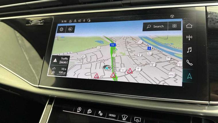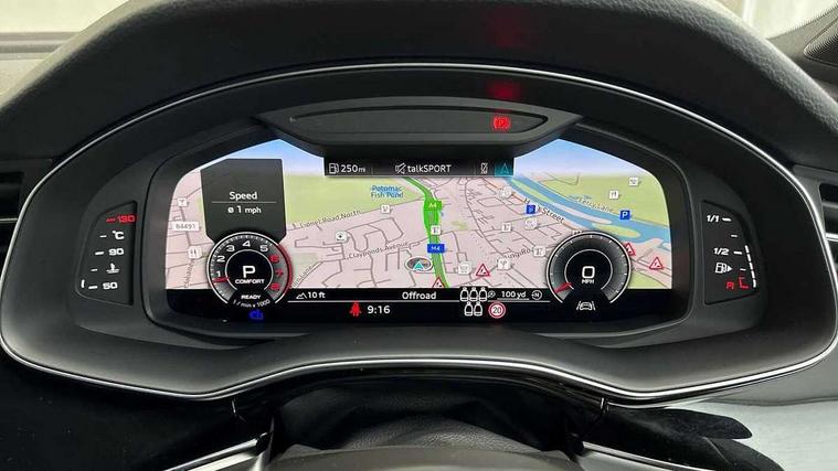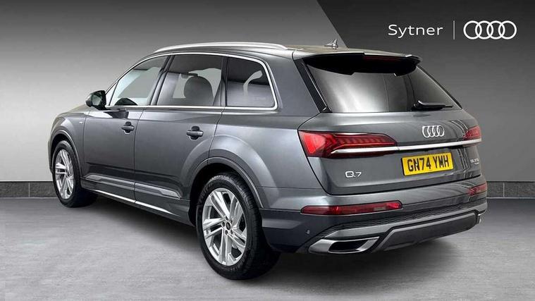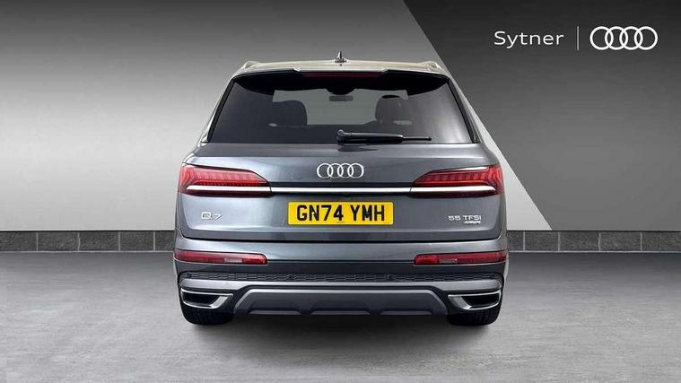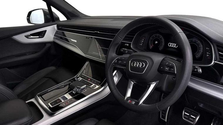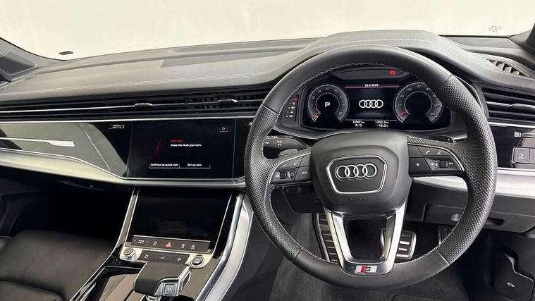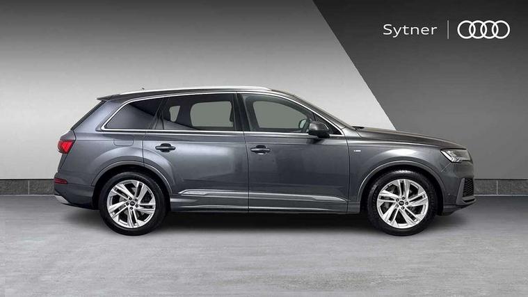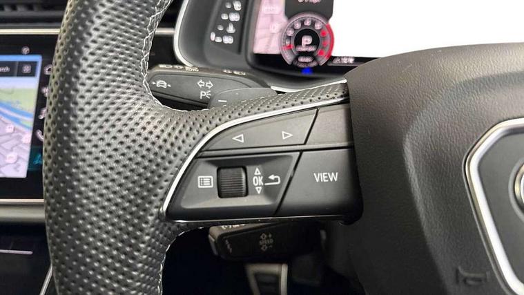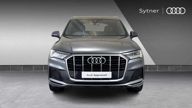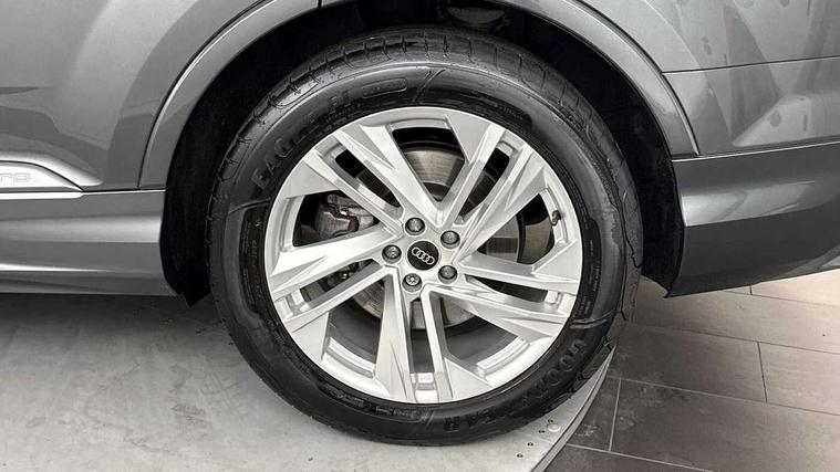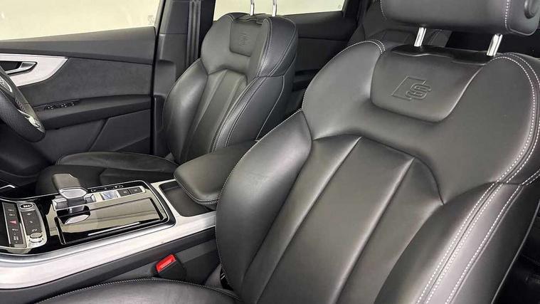 Audi connect safety and service (e-call), Audi connect with Amazon Alexa Integration, Audi drive select (Auto, Comfort, Dynamic, Efficiency, Individual, Off-road and All road), Audi phone box light with wireless charging, Audi virtual cockpit - 12.3" high-resolution LCD display with fully customisable instrument cluster, Bluetooth interface, Camera based traffic sign recognition, Electromechanical steering, MMI navigation plus with MMI touch screens includes 10.1" and 8.6" screens with haptic feedback, Natural voice recognition, Parking system plus with 360 degree display (front, rear and side sensors) - acoustic and visual park assist system, Power operated tailgate, Rear view camera, Smartphone interface includes wireless Apple carplay/Android Auto, Start/stop system, 48V Mild hybrid technology, 85 litre fuel tank, Adaptive air sports suspension, Quattro all wheel drive with self locking centre differential, Audi music interface - front 2 USB-C ports with charger and data functions, Audi sound system with 6 channel amplifier, 180 watt amplifying capacity and 10 loudspeakers including subwoofer, DAB digital radio module, 3rd brake light, Aluminium window trim, Audi Beam uses LEDs to project S emblem with red rhombus onto the ground when opening the side doors (front/rear), Auto dimming frameless rear view mirror, Black roof rails, Bumpers in contrast paint scandium grey finish includes door trim and wheel arch trim strips, inlays in door strip contain quattro embossing, Dark tinted Matrix LED headlights with dynamic front and rear indicators, Electrically adj heated/folding + automatically dimming exterior mirrors with memory + automatic kerb side function for passenger side exterior mirror, Heat insulating glass in windshield, Integrated LED indications in door mirrors, LED daytime running lights, LED rear tail lights, Privacy glass - dark tinted rear and rear side windows from B-pillar backwards, Rear side wing doors, Rear wiper, 2 seat bench in 3rd row, 2 zone automatic climate control, 3 seat bench in 2nd row, 7 seat layout with ISOFIX points for the front passenger seat and rear passenger seat, Black cloth headlining, Comfort front centre armrest, Electric adjustable front seat with 4 way lumbar support, driver memory functionality, Folding rear seats, Front head restraints, Front/rear floor mats, Heated front seats, Illuminated door sill trims with S logo, LED interior ambient lighting, Luggage compartment cover, Luggage compartment sill protection in stainless steel, Rear head restraints, Single front passenger seat, Stainless steel pedals, Sunvisors with illuminated vanity mirrors, Black styling pack plus - Q7, 3 point seatbelts on all rear seats, Audi pre sense front, Child locks on rear doors, Driver and front passenger, front side and curtain airbags, Electromechanical parking brake, Electronic Stabilisation Control (ESC) including ABS, ASR and EDL, Extended pedestrian protection measures, Hill hold assist, Seatbelt monitoring, Tyre pressure loss indicator, Warning triangle and first aid kit, Anti theft alarm, Anti-theft wheel bolts and wheel loosening detection, Keyless Go, Remote central locking, Polished oak trim with grey finish inlay, Tool kit, Tyre repair kit,