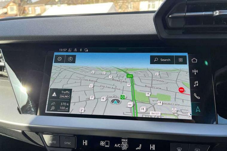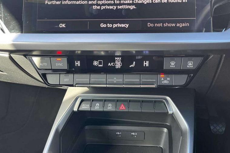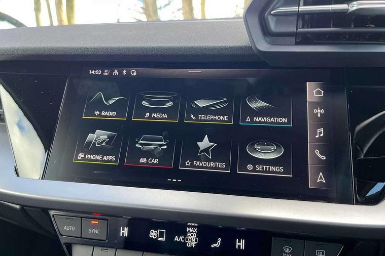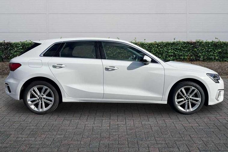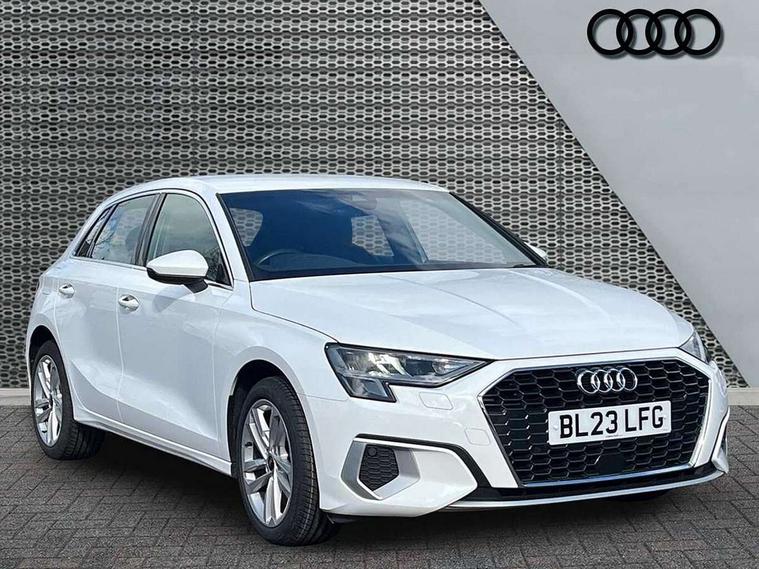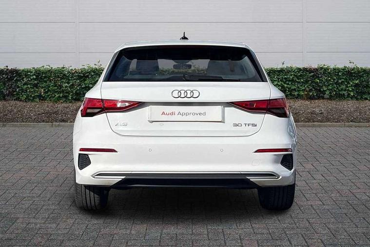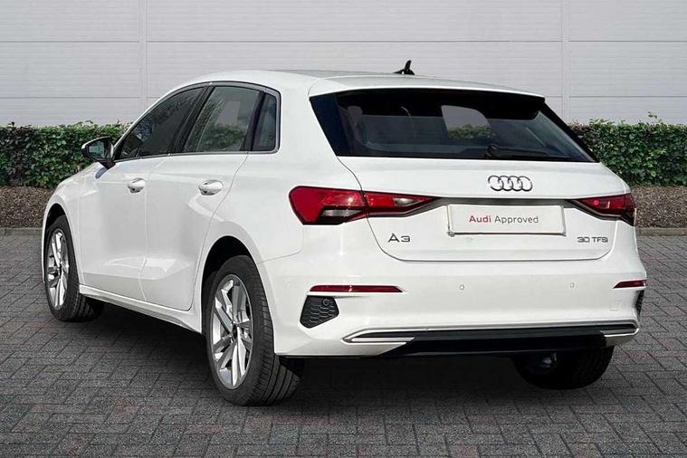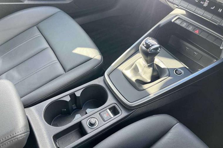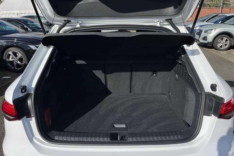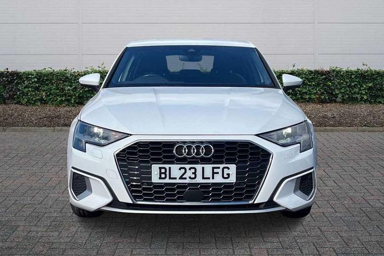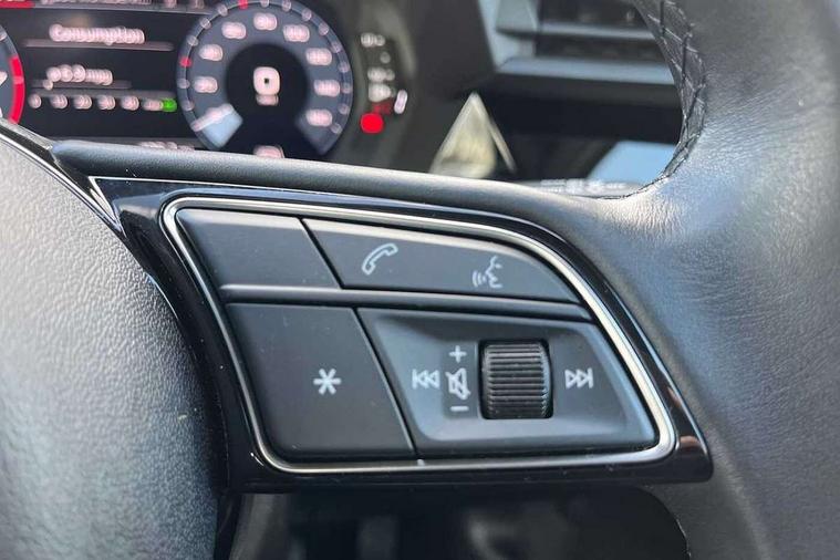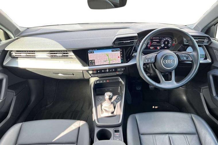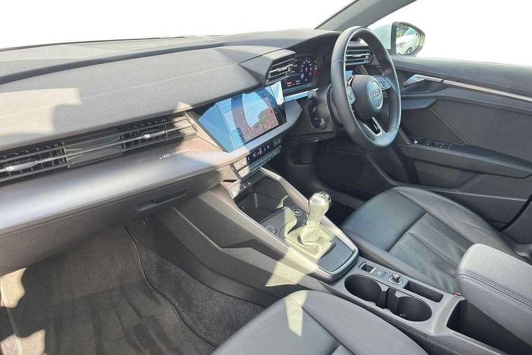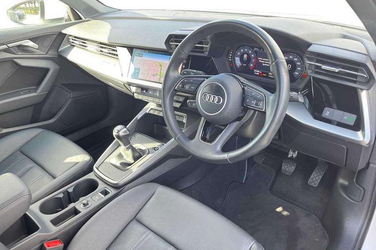 Audi drive select (Auto, Comfort, Dynamic and Individual), Audi smartphone interface, Audi Virtual Cockpit - 10.25" digital and colour instrument cluster, Automatic start/stop system with recuperation, Bluetooth interface, Camera based traffic sign recognition, Collision avoidance assistant, Cruise control, e-Call (emergency call), Electromechanical power speed sensitive steering, Lane departure warning system, MMI Navigation Plus with high resolution 10.1" colour touch screen display, Rear parking sensors, Service indicator, Trip computer, Voice control system with natural language interaction, Standard suspension, 2xUSB-C connection with data and charging functions, 6 passive loudspeakers, DAB Digital radio, 3rd brake light, Acoustic glass windscreen, Aluminium window trim, Auto dimming frameless rear view mirror, Body colour exterior mirrors, Body colour roof spoiler, Electrically adjustable/heated/folding/auto dimming door mirrors with integrated LED indications + kerb view function for passenger side, Front electric windows, LED daytime running lights, LED headlights and halogen rear lights, Light and rain sensors, Rear electric windows, Rear side wing doors, Rear window, rear door windows and rear side windows in clear glass, Rear wiper, 12V socket and storage compartment in front centre console, 3 seat bench in 2nd row, 3 spoke leather multifunction steering wheel, 4 way electrically adjustable lumbar support for driver and front passenger, 60/40 split folding rear seat bench, Dual zone electronic climate control, Front and rear headrests, Front centre armrest, Front door sill trims with aluminium inlay, Front/rear floor mats, Height and reach adjustable steering wheel, Interior lighting - Front and rear roof module including reading lights, glove compartment light and right hand side, Interior lighting - glove compartment light and right hand side, Luggage compartment floor covering, Manual boot compartment lid, Manually adjustable front seats, Routine cloth upholstery with front sports seats, Seat side bolsters, Single front passenger seat, Steel grey cloth headlining, Aluminium interior elements pack - A3 Sportback, LED interior lighting pack - A3 Sportback, Sport styling pack - A3 Sportback, 3x3 point rear seat belts, Driver and front passenger airbag with passenger airbag deactivation, Electronic Stabilisation Control (ESC) including ABS, ASR and EDL, First aid kit with warning triangle and 2 safety vests, Front side airbags with head airbags and interaction airbag, Pre-sense front with pedestrian and cyclist detection, Seatbelt monitoring, Tyre pressure loss indicator, Anti theft alarm, Anti-theft wheel bolts, Electronically operated child lock, Immobiliser, Remote control central locking, Inlays with silk effect paint in platinum grey,