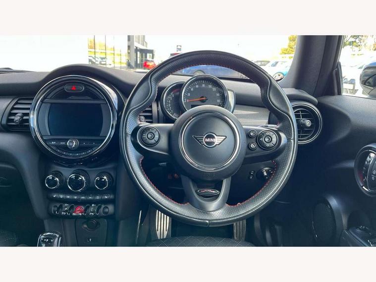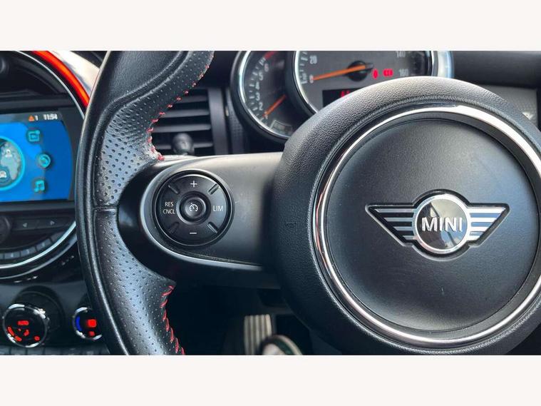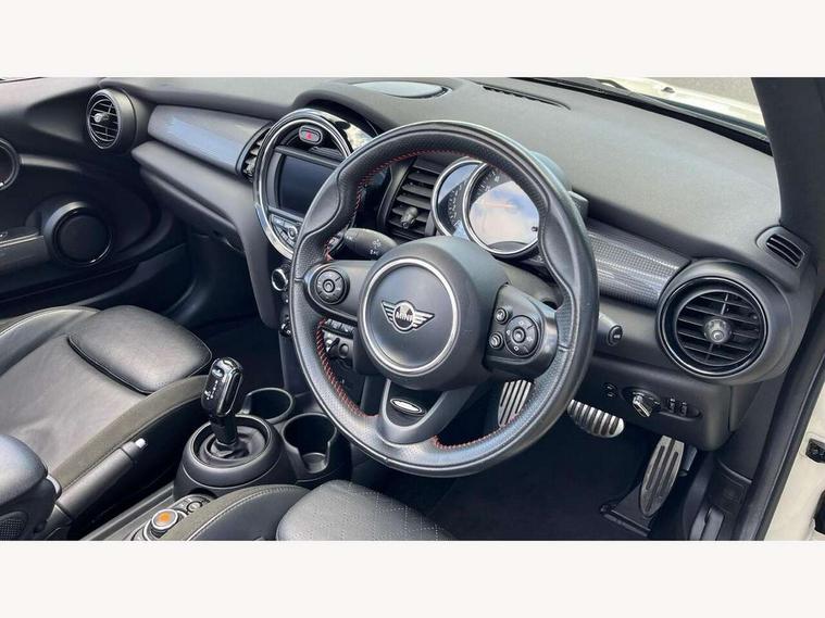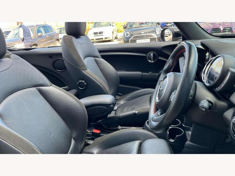 Automatic start/stop function with brake energy recuperation, Compatible mobile phone bluetooth with audio streaming, Electro-mechanical speed dependant steering assistance, Instrument cluster, Mini E-call, MINI TeleServices, On board computer, Rear park distance control, Service interval indicator, Double Vanos system, Fully variable valve control, High precision injection, Performance Control, Steptronic transmission with double clutch, 6.5" touchscreen with LED ring, FM tuner and DAB digital radio, Automatic headlight activation switch, Body colour fuel filler cap, Chrome border high gloss black slats radiator grille, Dynamic brake lights, Electric windows, Fully electric black softtop with integrated sunroof functionality, Heated rear window, Heated windscreen washer jets, John Cooper Works - aerodynamic kit (front and rear apron, spoiler), front and rear sport bumpers and part-painted side sills with door sill finishers, LED headlight with closed ring and daytime driving lights, Left exhaust tailpipe with chrome finisher, Metal door sill strips with MINI imprint, Model logo Cooper on right of tailgate, Rain sensor window wipers, Rear fog lights, Rear LED lights with union jack design, Side scuttle panel with integrated indicator, Sun/heat protection glass, White indicator lenses, 12V Accessory socket in centre console, 4 lashing eyes in luggage compartment, 50/50 split folding rear seats, Chrome interior highlights, Cupholders, Easy Load boot handles, Front and rear isofix with front passenger airbag deactivation, Glove compartment, Height and length steering column adjustment, Interior lighting with 12 basic colours selectable via toggle switch in roof, John Cooper Works perforated leather steering wheel with contrast stitching in chilli red and John Cooper Works logo, Leather gearshift lever and handbrake gaiters, Leatherette integrated headrest, adjustable thigh support with john cooper works logo, LED reading lights, vanity mirror lights, front foot well light and spotlight on front seats, Manual air conditioning, Mechanical seat adjustment, driver seat height adjust, forward/back and front seats backrest, Mini logo projection on floor from drivers exterior mirror, Multifunction steering wheel, Rear head restraints, Storage compartments in doors, Sunvisors with vanity mirrors, 3 point seatbelts on all four seats, 6 Airbags - front, side and seat belt tensioners, Active rollover protection, Anti-lock braking system (ABS), DSC - Dynamic Stability Control, Front and rear disc brakes, Hill start assist, Single tone fanfare horn, Tyre pressure monitoring system, Alarm system with tilt sensor, monitoring doors, bonnet interior and tailgate, Electronic vehicle immobiliser, Keyless Go, Tool kit,