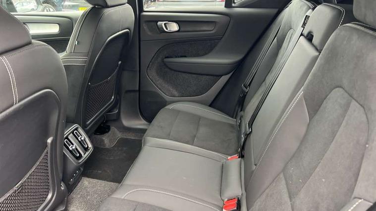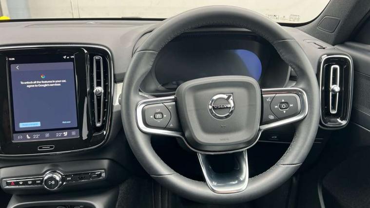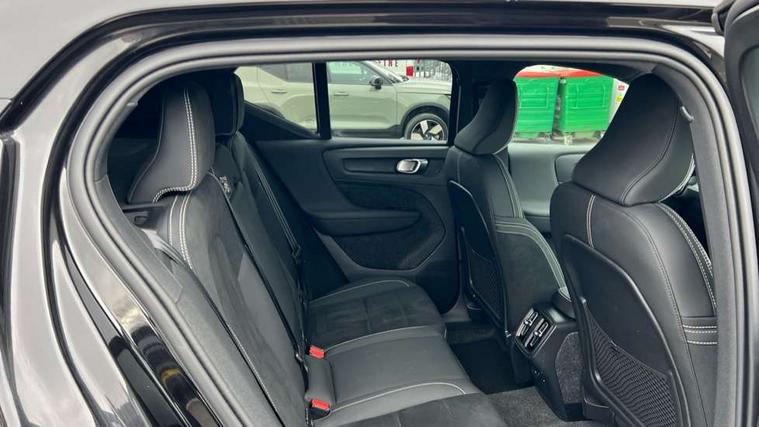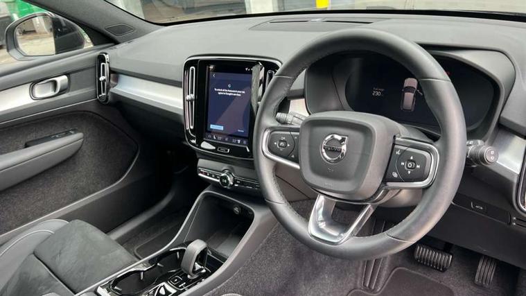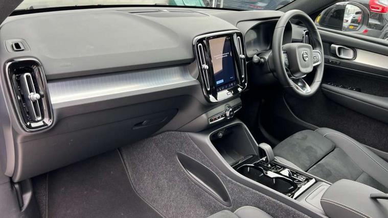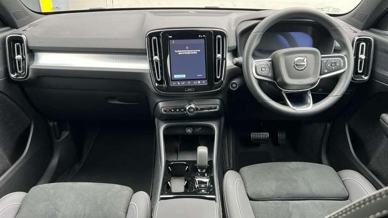 12.3" Progressive Driver Display, 9" centre console portrait touch screen, Adjustable steering wheel force, Android auto (Wired), Apple carplay (wired), Bluetooth handsfree system, Driver alert control, Driver assistance (pilot assist and adaptive cruise control), Driver awareness - Blind spot information system with steer assist, cross traffic alert with autobrake and rear collision warning and mitigation, E-call, Front and rear parking sensors, Front park assist, Google automotive services - Enabled entertainment apps, navigation with google maps, voice recognition with google assistant, Hands free power tailgate, Intelligent speed assistance, Lane keeping aid, Oncoming Lane Mitigation, Speed sensitive steering, Volvo cars services with app - Driving journal, emergency and breakdown call, engine remote start, remote door locking/unlocking and vehicle dashboard, Wireless/Inductive Mobile Phone Charging, Automatic transmission with start/stop and manual change functions, Dynamic chassis, DAB Digital radio, Steering wheel mounted remote controls, Adaptive brake lights with high level LED brake lights, Auto dimming feature for exterior door mirrors, Auto dimming interior mirror, Auto folding and heated power door mirrors, Automatic headlamp levelling, Automatic LED Headlights + Active high beam incorporating daytime running lights, Dark tinted windows - rear side windows and rear screen, Front aluminium tread plates, Front and rear electric windows, High gloss black front and rear skid plate, High gloss black front bumper deco, High gloss black front grille strikethrough and ironmark, High gloss black rear model, engine and volvo logo badges, High gloss black window trim, Home safe and approach lighting, Integrated roof rails in high gloss black, LED front fog lights, Puddle lights, Rain sensor with automatic windscreen wiper activation, Rear side wing doors, Rear wiper, Roof antenna, Roof spoiler, Visible VIN plate, 12V socket in front tunnel console and luggage compartment, 2-Zone electronic climate control with CleanZone air quality system and pollen filter, 3 seat bench in 2nd row, 3 Spoke tailored steering wheel with chrome trim, 60/40 versatile split folding rear seat, Centre console cupholders and storage, Charcoal carpet and floor mats, Charcoal headlining, Connect suede textile/microtech upholstery, Flexible load floor and grocery bag holder, Front headrests, Front seat cushion extensions, Glovebox bag hook, Heated front seats, Height adjustable passenger seat, Height/reach adjustable steering column, High gloss centre tunnel deco, High level illumination - Front door pocket, front side step (under door), tailgate, instrument panel, front door inlay, rear courtesy&reading lights, Integrated waste bin, Isofix attachments on outer rear seats, Load cover, Load protection net, Mid level illumination - Front footwell, luggage & glovebox compartment, front cabin courtesy & reading lights, illuminated vanity mirrors+ticket holder, Multi directional lumbar support for driver and passenger seat, Power driver seat with memory + exterior mirrors memory, Rear armrest with cupholders, Rear headrests, Single front passenger seat, Underfloor luggage compartment storage, Climate pack without heated front seats - XC40, 3x3 point rear seatbelts, City safety with steering support with Pedestrian + cyclist + front collision warning with full auto brake and rear auto brake, Driver and passenger airbags, Drivers knee airbag, Electronic parking brake with auto hold, First aid kit, Front and outer rear seatbelt reminder and pretensioners, Front seats SIPS airbags, Hill descent control - Off-road drive mode, Hill start assist, IC (Inflatable Curtains) - Full Length, Passenger airbag cut-off device, Power child locks on rear doors, Road sign information display, Run off Road Protection, SIPS (Side Impact Protection System), Slippery road and hazard light alert, Stability and Traction Control with Spin control, Engine Drag Control and Corner Traction Control, Tyre pressure monitoring system, Vehicle deceleration control with Anti-lock Brake System, Electronic Brake Distribution and Emergency Brake Assist, Warning triangle, WHIPS whiplash protection system - front, 2 x Key integrated remote control central locking including with deadlocking system and auto open/close windows, Anti-theft alarm including immobiliser/volume sensor + level sensor, Keyless drive includes keyless entry and keyless start, Locking wheel nuts, 20" 5 spoke high gloss black alloy wheels,