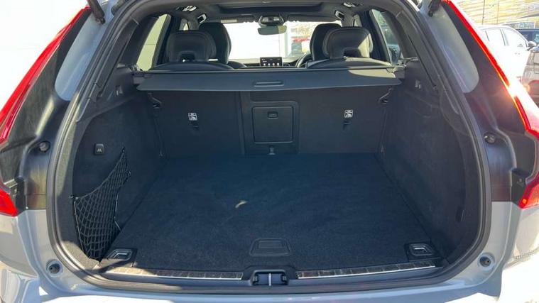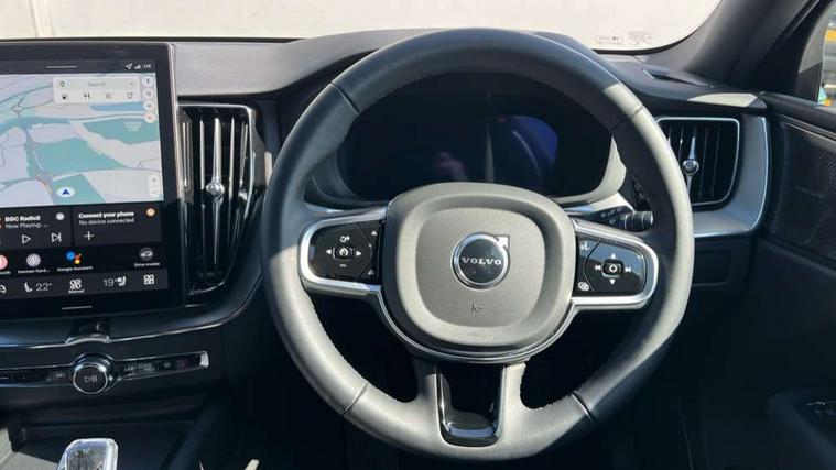 11.2" centre console touch screen, 12.3" Progressive Driver Display, 360 degree surround view parking camera with side proximity sensors, Adaptive cruise control, Adjustable steering wheel force, Android auto (Wired), Apple carplay (wired), Bluetooth handsfree system, Driver alert control with lane keeping aid, Emergency services call system, Front and rear park assist, Google Automotive Services, Intelligent speed assistance, Oncoming Lane Mitigation, PAS, Power operated tailgate with handsfree opening and closing, Service interval indicator, Speed limiter, Speed sensitive steering, Trip computer, Volvo cars services with app, Volvo on call with App, Wireless/Inductive Mobile Phone Charging, 8 speed automatic transmission with start/stop + manual change functions, DAB Digital radio, Premium Sound by Harman Kardon, dirac unison, dolby pro logic II surround sound, 13 speakers/600W output and fresh air subwoofer, Steering wheel remote infotainment controls, Adaptive brake lights with high level LED brake lights, Auto dimming interior + exterior mirrors, Automatic headlight levelling system, Automatic LED Headlights + Active high beam incorporating daytime running lights, Dark tinted windows for rear side windows and cargo area, Electric adjustable/heated/auto power folding door mirrors, Electric front+rear windows, Front aluminium tread plates, Heated front windscreen, High gloss black door mirrors and window surround, High gloss black front and rear bumper decoratives, High gloss black front grille, Surround, Strikethrough and Ironmark, High gloss black rear model, engine and volvo logo badges, Home safe and approach lighting, Integrated roof rails in high gloss black, Puddle lights, Rain sensor with automatic windscreen wiper activation, Rear side wing doors, Rear wiper, Roof antenna, Roof spoiler, Tinted windscreen, Visible VIN plate, 12V socket in front tunnel console and luggage compartment, 3 seat bench in 2nd row, 3 Spoke tailored steering wheel with chrome trim, 4 Zone electronic climate control, A-pillar parking ticket holder, Air purifier particulate matter (PM) 2.5 filter, B Pillar ventilation, Bright metal luggage scuff plate, Centre console cupholders and storage, Charcoal floor mats, Contour sports seats with nappa soft leather/textile upholstery, Front and rear courtesy lights, Front and rear door pocket illumination, Front cupholder illumination, Front footwell illumination, Front reading lights, Front seat cushion extensions, Glovebox compartment with illumination, Head restraints for all seats, Heated front seats, Heated steering wheel, Height/reach adjustable steering column, Illuminated luggage compartment, Illuminated vanity mirrors + ticket holder, Inner door release handle illumination, ISOFIX attachment on outer rear seats, Load cover, Load protection net, Multi directional lumbar support, Power driver seat with memory + exterior mirrors memory, Power height adjustable passenger seat, Power passenger seat with memory, Rear armrest with cupholder, Rear footwell and front and rear side step illumination, Rear reading lights, Rear seat concealed storage, Single front passenger seat, Tailgate illumination and ambient door lighting, Underfloor stowage compartment, Versatile split folding rear seat - 60/40, Driver assist pack without Adaptive cruise control - XC60, 5 three point seatbelts, City safety with steering support with Pedestrian + cyclist + front collision warning with full auto brake and rear auto brake, Drivers knee airbag, Dual stage driver/passenger airbags, Electronic parking brake with auto hold, First aid kit, Front seats SIPS airbags, Hill descent control - Off-road drive mode, Hill start assist, IC (Inflatable Curtains) - Full Length, Passenger airbag cut-off device, Power child locks on rear doors, Road sign information display, Run off Road Mitigation, Run off Road Protection, Seatbelt reminder and pretensioners, SIPS (Side Impact Protection System), Slippery road and hazard light alert, Stability and Traction Control with Spin control, Engine Drag Control and Corner Traction Control, Tyre pressure monitoring system, Vehicle deceleration control with Anti-lock Brake System, Electronic Brake Distribution and Emergency Brake Assist, Warning triangle, WHIPS whiplash protection system - front, Anti-theft alarm including immobiliser/volume sensor + level sensor, Key integrated remote control central locking + fuel flap with deadlocking system and auto open/close power windows, Keyless Drive (includes Keyless Entry and Keyless Start), Locking wheel nuts, Private locking for tailgate, 21" 5 Double spoke high gloss black alloy wheels, Summer tyres,