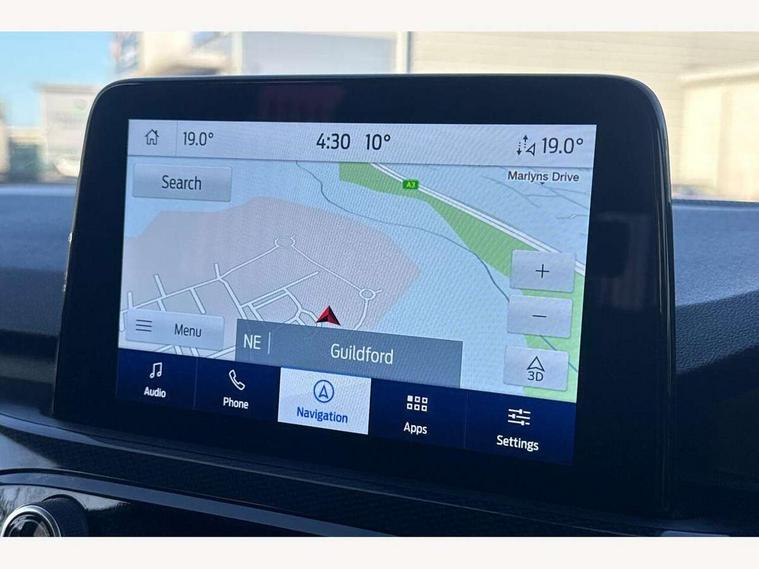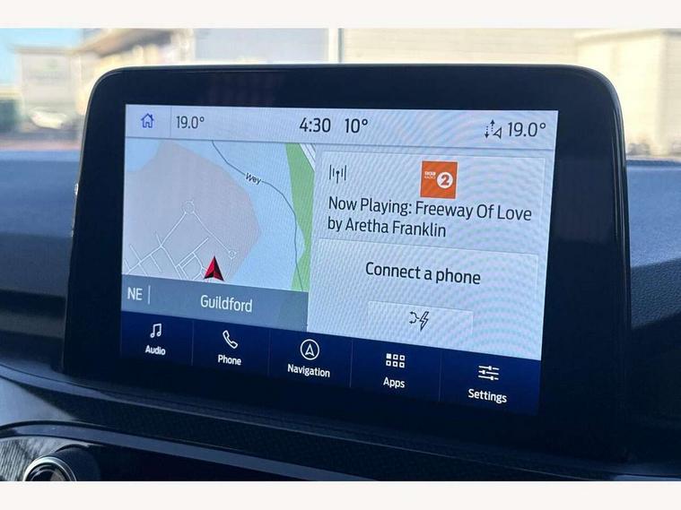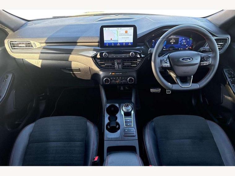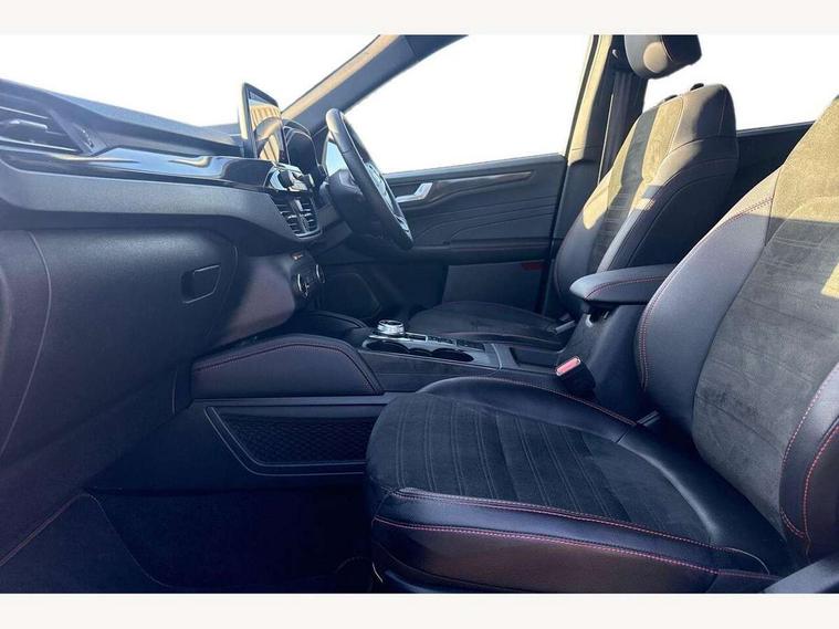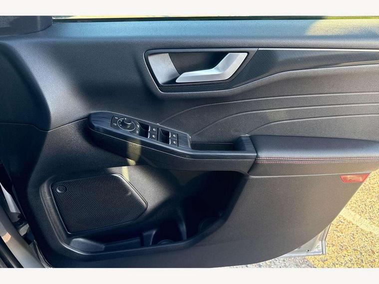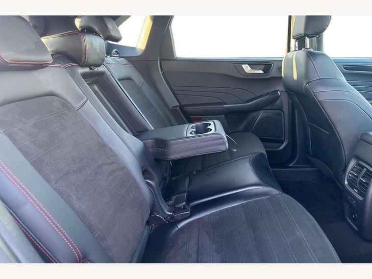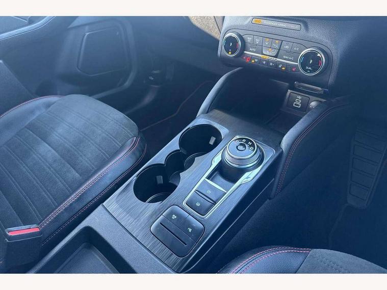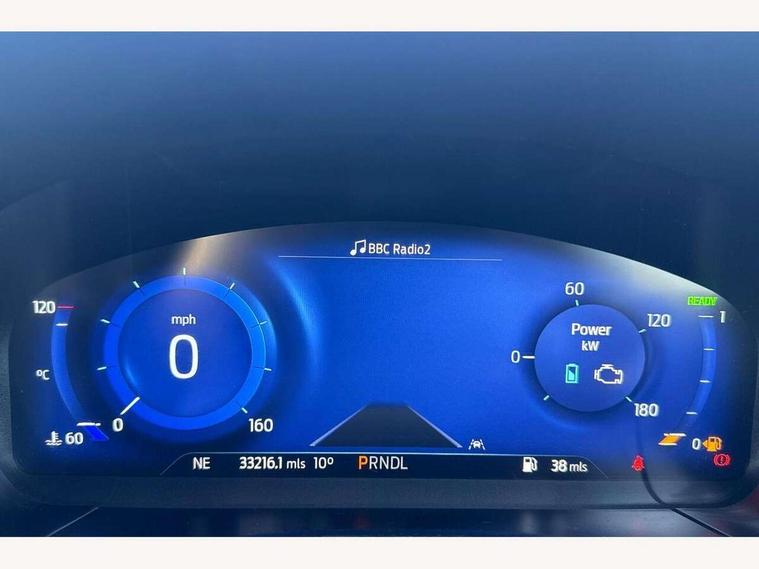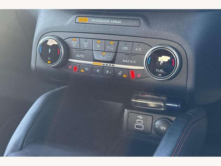 12.3" digital colour instrument cluster, Ford easy fuel, Ford SYNC 3 with 8" TFT LCD touchscreen, App Link, andriod auto/apple carPlay, emergency assistance and navigation with Ford pass connect, Front and rear parking sensors, Hands free power tailgate, Lane keeping aid with lane departure warning, Power assist steering, Rear view camera, Selectable drive modes, Service interval indicator, Sports suspension, Twist beam rear suspension, B&O premium audio system with 10 speakers and subwoofer, 2 USB ports, DAB radio/CD, Auto headlamps with high and low beam, Black roof rails, Day/night rear view mirror, Front LED fog lamps, Large rear spoiler, LED daytime running lights, LED rear lights, Power folding heated door mirrors with puddle lights, Power front/rear windows with global close, Power opening panoramic roof, Privacy glass, Quickclear heated windscreen, Rear side wing doors, Rear wiper, ST Line body styling kit with unique front and rear fascia and bumper, rear painted diffuser, front painted skid plates, dark mesh upper grille, ST Line front scuff plates, Third brake light, Twin exhausts, 10 way power adjustable drivers seat, 2nd row sliding seats with 60:40 split, 8 way manual passenger seat including lumbar support and height adjust, Alloy pedals, Centre console with electronic parking brake, Dark headlining and pillars, Electronic automatic temperature control (EATC), Flat bottomed leather steering wheel in sensico with red stitching, Front and rear head restraints, Heated passenger and driver seats, Heated rear seats, Heated steering wheel, Partial premium touch sensico leather upholstery with black cloth inserts and red stitching, Rear charging point, Single front passenger seat, Sports seats, ST Line front and rear floor mats, 3x3 point rear seatbelts, Airbags - front driver/passenger, front and rear curtain, Drivers knee airbag, Electronic stability control (ESC) and ABS, Ford MyKey Gen 2 safety system, Manual child proof rear door locks, Post collision braking, Pre collision assist with autonomous emergency braking, Rear seat Occupancy alert, Red brake calipers, Tyre pressure monitoring system, Engine immobiliser, Keyless entry and Ford power start button (Keyless start), Locking wheel nuts, Remote powered central double locking doors, Thatcham category 1 alarm,