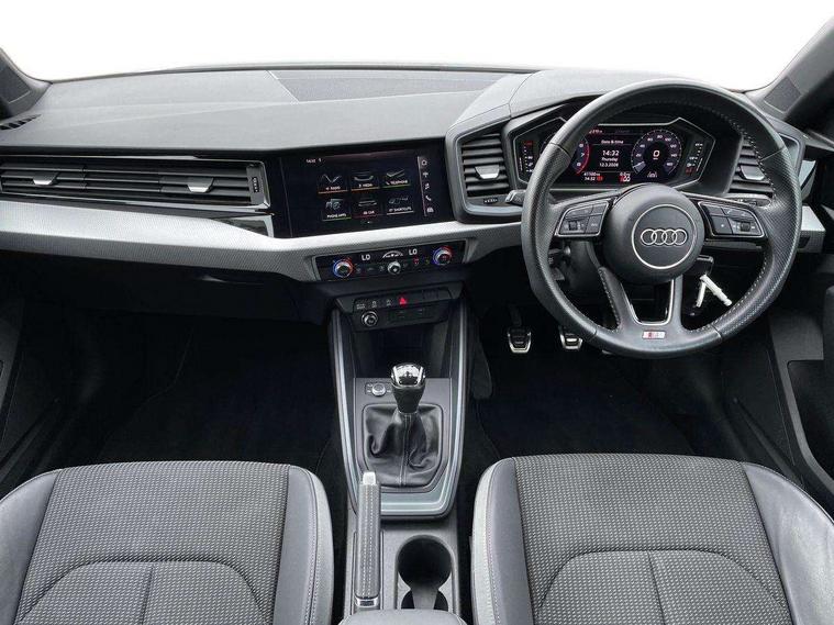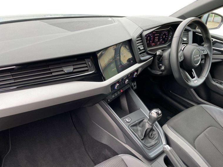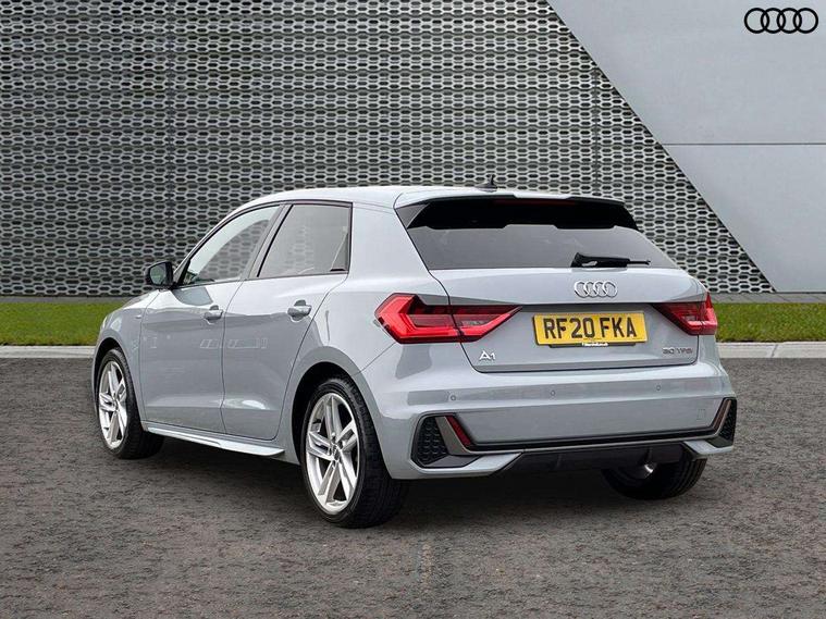 10.25" Digital instrument cluster display classis style instrument dials + speed, odometer, time, outside temperature, telephone menu + fuel level warning, Audi connect safety emergency and service including E-call, Audi drive select - power steering assistance + engine, Audi smartphone interface with connect compatible smartphone via USB directly MMI display + Nav, music, third party apps controlled via MMI controller, Automatic start/stop system, Bluetooth interface, Cruise control, Driver's information system, Electromechanical power steering, Lane departure warning system, Rear parking sensor, Service interval indicator, Speed limiter, Voice control system, Washer fluid level indicator, Sports suspension, 1 x SDXC card reader, 1 x USB type C and 1 USB type A charging points, DAB Digital radio, MMI radio plus with 8.8" colour MMI display screen and MMI touch, Auto dimming rear view mirror, Body coloured door mirrors, Door sills with aluminium inlays and S Line logo, Electric front and rear windows, Electrically adjustable, heated, folding door mirrors with integrated LED side indicator, Front side air inlets in grained matt black and C frame in titanium black, Heat insulating glass windscreen and side windows, Heated rear windscreen, LED headlights with LED rear lights + dynamic rear indicators + headlight adjustment and high beam, turning light + LED daytime running lights, Radiator grille and rear diffuser in matt titanium black, Radiator protective grille frame in matt aluminium silver, Rain and light sensors, Rear fog lights, Rear wiper, S line badges on front wings, Side front spoiler lips in grained matt black, 12V socket in centre console with two cup holders, 3 rear seats with headrests, 40:60 Split folding rear seat or folded fully, Black cloth headlining, Driver and passenger seat with manual height adjust with forward and backwards adjustment, Front and rear black floor mats with contrast stitching in fine silver, Front head restraints, Height and reach adjustable steering wheel, ISOFIX child seat mounting for front passenger and outer rear seats including top tether attachment point of outer rear seats, Leather gear knob with aluminium trim, Luggage compartment light with front and rear reading lights, Manually adjustable lumbar support in front seats, Stainless steel pedals, LED interior lighting pack - A1, Luggage compartment pack - A1, S line exterior styling pack - A1 Sportback, 3x3 point rear seatbelts, Audi pre-sense front with pedestrain and cyclist recognition, Brake assist function, Driver and front passenger airbag with front side and head airbags, Electronic Stability Control including ABS, EBD, ASR and EDL, Front and rear seatbelt reminder, Front passenger airbag deactivation switch, Hill hold assist, Seatbelt height adjustment for front seats, Seatbelt monitoring, Tyre pressure warning light, Warning triangle and first aid kit, Anti theft alarm, Anti theft wheel bolts and loose wheel warning, Immobiliser, Remote central locking with 2 foldaway keys, Aluminium trim for control switches, air vents and digital instrument cluster, Silver grey inlays polygon structure in diamond paint finish, Structured grey accent areas including air vents, door handle recesses and centre console in quartz paint finish,