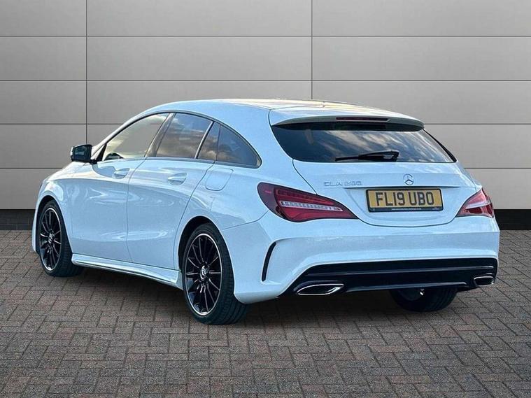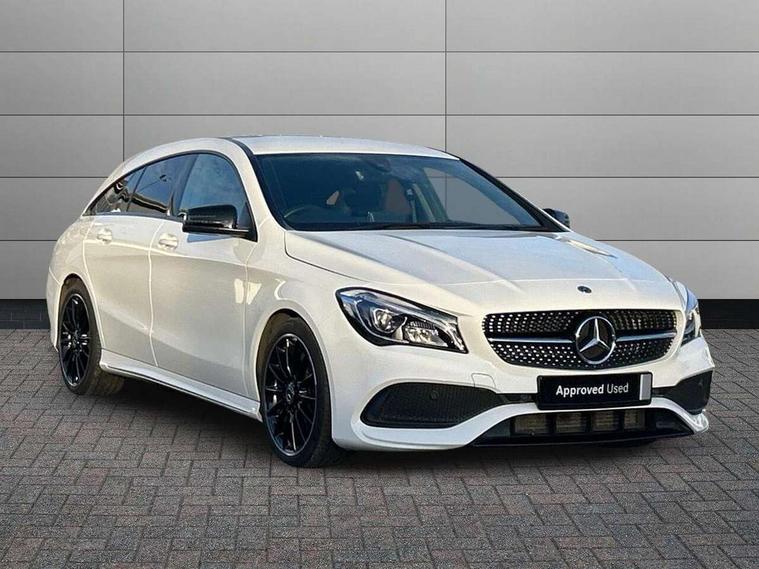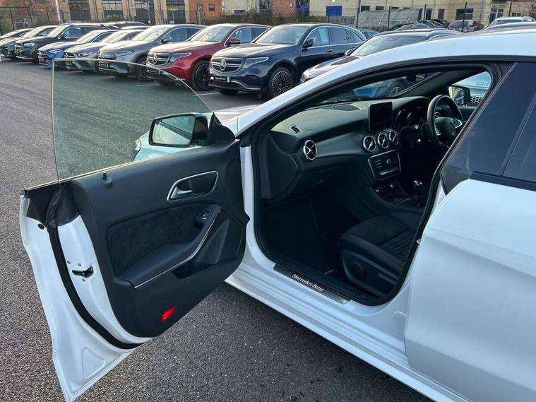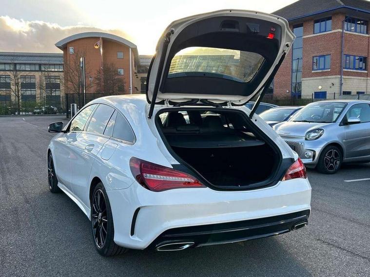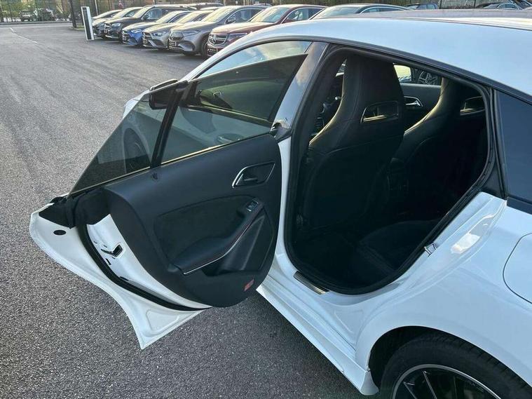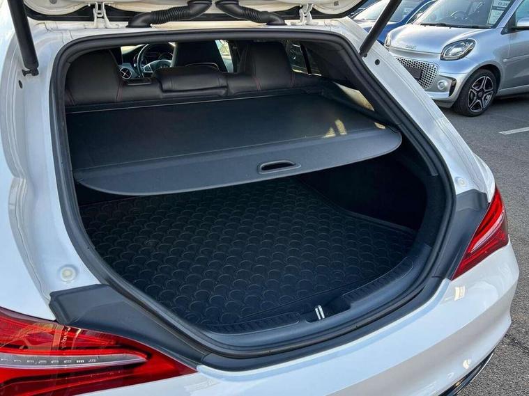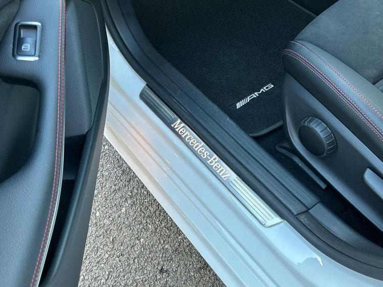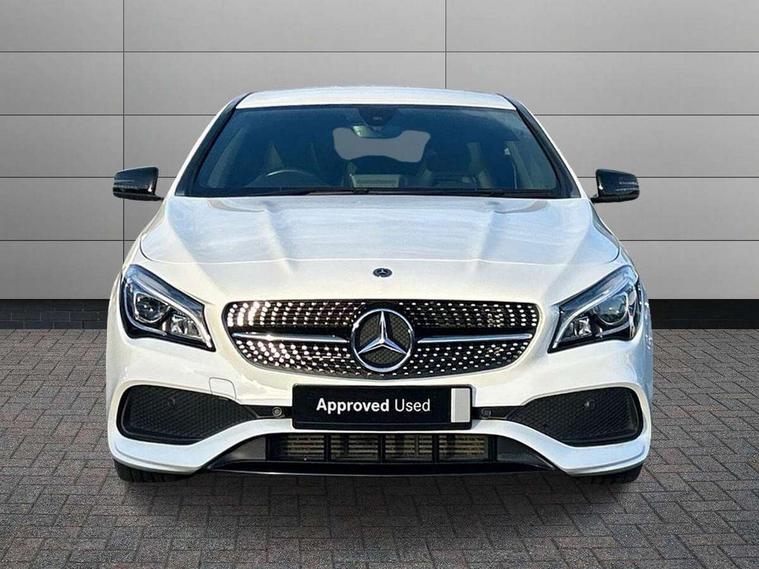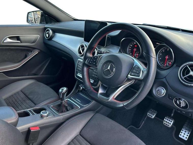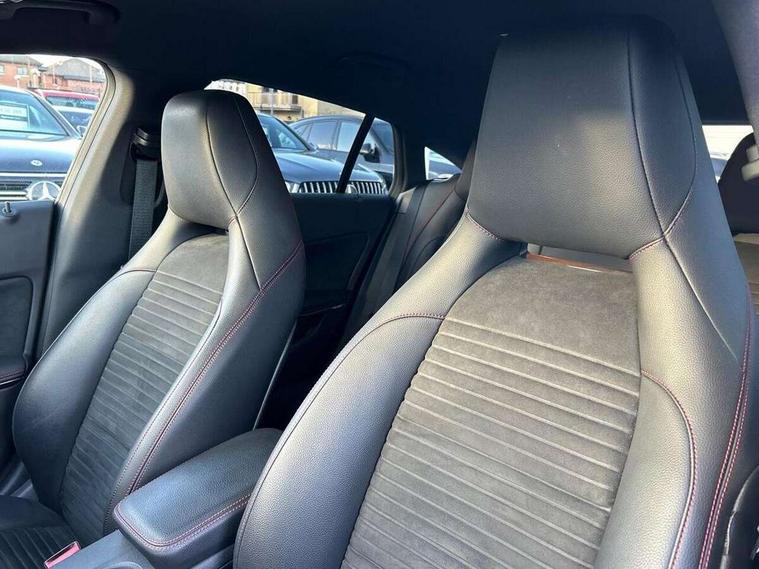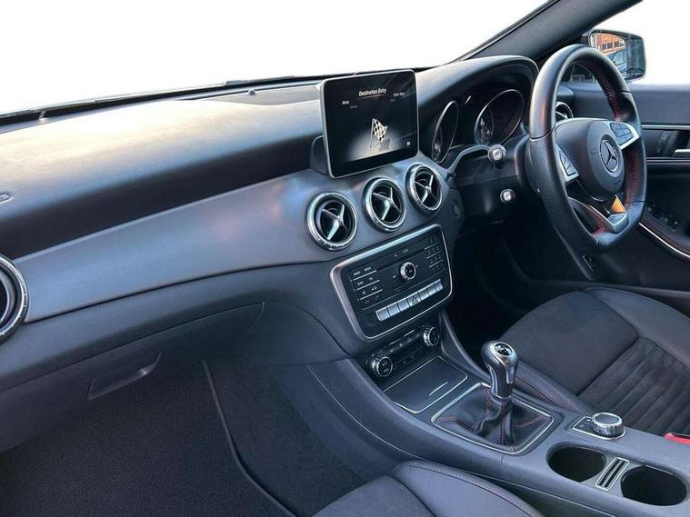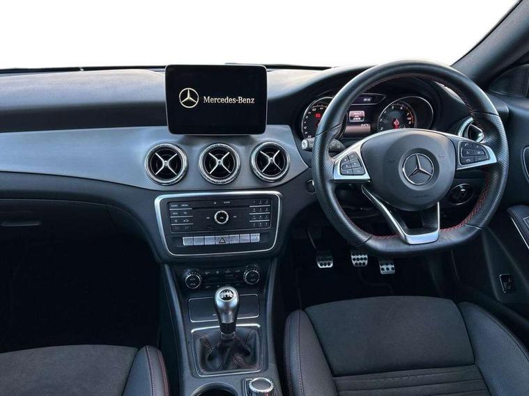 8" colour display screen, Attention assist, Bluetooth system, Cruise control + speed limiter, Direct steering, Door/boot open warning light, DYNAMIC SELECT with a choice of driving modes (ECO, Comfort, Sport, Sport+ and Individual), Easy-pack tailgate - Powered opening/closing automatically, ECO start/stop function, Lamp failure indicator, Low fluid warning light, Outside temperature gauge, Reversing camera, Service indicator (ASSYST), Trip computer, Lowered comfort suspension, Media interface, Mercedes Audio 20 radio/single CD, USB connection, Adaptive brake lights, AMG body styling, Auto dimming driver's door mirror, Auto dimming rear view mirror, Automatic headlights, Automatic rain sensing wipers, Black high gloss beltline, Body colour bumpers, Body colour door handles, Body colour side skirt, Diamond grille with pins in chrome and single louvre in high-gloss black with chrome inserts, Electric adjustable heated door mirrors, Electric folding door mirrors, Front and rear electric windows, Front door courtesy lamps, Heated rear window with timer, High gloss black door mirror housing, LED headlights with LED daytime running lights, LED Indicators, LED tail lamp, LED third brake light, Privacy glass, Rear fog lights, 1/3 to 2/3 split folding rear seats, 3 spoke flat bottom multi-function sports leather steering wheel in black with topstitching in red, Auto Mercedes-Benz child seat recognition sensor, Brushed stainless steel sports pedals with rubber studs, Centre console with cupholders, Courtesy light in boot, Door sill illumination, Front centre armrest with storage box, Front footwell lights, Front head restraints, Front seat cushion length adjustment, Front sports seats, Height adjustable front seats, Height/reach adjustable steering column, Illuminated glovebox, Illuminated storage compartment, Isofix rear child seat fastenings, Load securing rings in luggage compartment, Luggage compartment cover, Reading lights, Rear footwell lights, Rear head restraints, Seat cushion angle adjustment, Sunvisors with illuminated vanity mirrors, Thermotronic luxury automatic two zone climate control, Mirror pack - CLA, 3x3 point rear seatbelts, ABS with Brake Assist, Active bonnet, Adaptive brake system, ASR, Brake pad warning light, Child lock for rear electric windows, Child proof door locks, Crash responsive emergency lighting, Drivers knee airbag, Dual stage driver/passenger airbags, Electronic parking brake, ESP curve dynamic assist, Front and rear seatbelt reminder, Front brake callipers with Mercedes Benz lettering, Front passenger airbag deactivation, Front passenger seat occupancy sensor, Front side airbags, Hill start assist, Tyre pressure monitoring system, Warning triangle and first aid kit, Window airbags, Anti theft alarm system, Chrome surround in electric key, Immobiliser, Keyless Go, Remote central locking, Chrome air vent surrounds, 18" AMG 10 spoke alloy wheels, Tirefit,