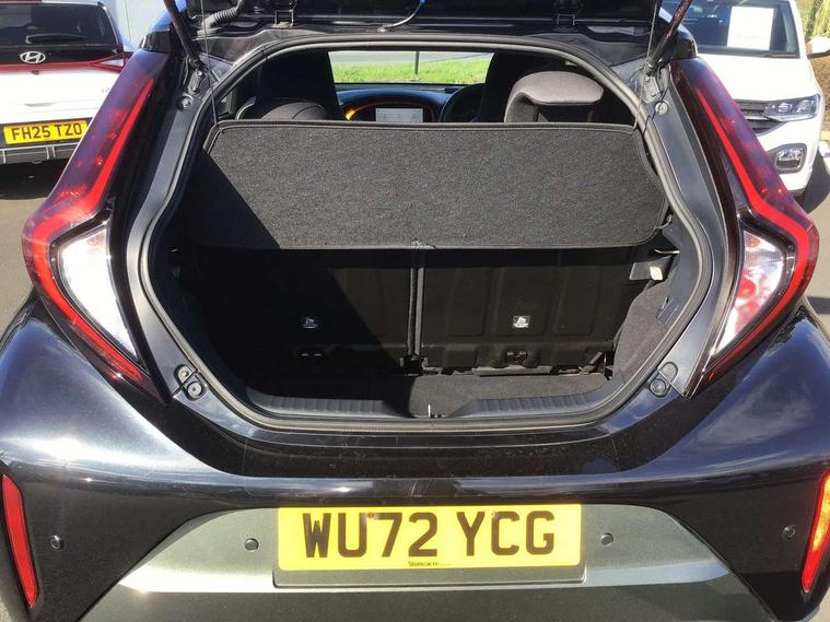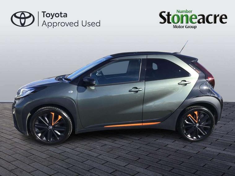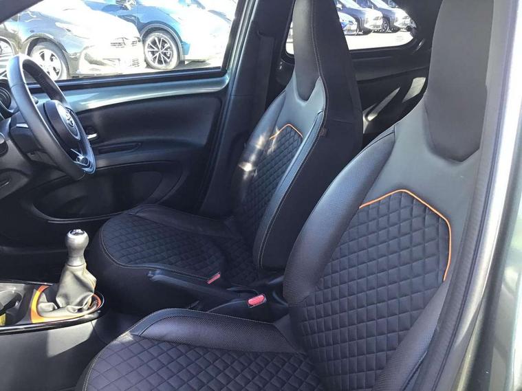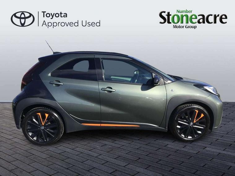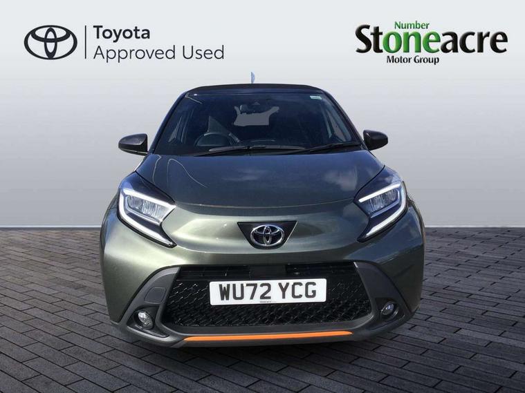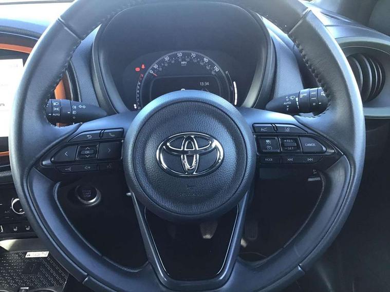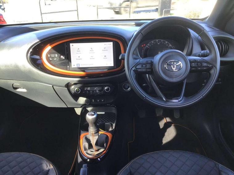 4.2" TFT colour screen, Adjustable speed limiter, Analogue speedometer, Bluetooth connectivity, Digital tachograph, Driver attention alert system, eCall emergency call system, Electric power steering, Front and rear parking sensors with auto brake, Intersection turn assist, Key reminder warning, Noise reduction kit, Pre collision system with emergency steering assist, Remote boot door release on key, Reversing camera with static guide lines, Smart entry and push button start, Speed limit display, Start and stop, Wireless charger, Wireless Smartphone Integration includes Apple CarPlay and Android auto, Vehicle Stability Control (VSC), 4 speakers, 9" HD multimedia display touch screen with Toyota smart connect, DAB digital audio broadcast, USB connector, Auto headlights, Auto wipers, Automatic headlights cut-off, Automatic high beam On/Off switch, Bicycle towing hook, Black fog light surrounds, Black side protection mouldings, Black wheel arch mouldings, Body colour door handles, Body coloured front bumper, Boot door scuff plate, Canvas roof, Eclipse black rear bumper, Electric heated door mirrors, Follow me home headlights, Front fog lights, Front power windows, Gloss black door mirrors, Gloss black upper front grille, Headlight cut-off reminder, LED daytime running lights guide, LED front light guide, LED High mounted stop lamp, LED projector headlights, Limited edition logo on C pillar, Magnolia strip on lower front and rear bumpers, Manual day/night rear view mirror, Manual headlight levelling, Metallic Bi-tone paint, Power adjustable door mirrors, Privacy glass, Rain sensor, Rear combination lights LED bulb type, Rear side wing doors, Rear windscreen defogger, Rear windscreen wiper, Remote hazard lights system, Short antenna, Variable intermittent windscreen wipers, 12v power outlet - front, 2 seat bench in 2nd row, 3 spoke leather steering wheel, 50/50 split folding rear seat, Adjustable speed limiter switch on steering wheel, Audio and telephone switches on steering wheel, Auto air conditioning, Black insert on steering wheel, Black roof lining, Boot light, Canvas top headlining, Centre room light, Chrome interior door handles, Chrome surround on air conditioning buttons, Clean air filter, Driver and front passenger heated seats, Floor mats, Front and rear cup holders, Front head rest deco art, Front head restraints, Height adjustable driver seat, Intelligent adaptive cruise control switch on steering wheel, ISOFIX child restraint system on rear seats, Lane departure alert switch on steering wheel, Leather gearshift knob, Light blue ambient lighting in centre console, Manual tilt steering wheel, Manually reclining and sliding driver seat, Manually reclining and sliding front passenger seat, Multimedia switches on steering wheel, Partial leather seats, Pollen filter, Rear door pockets, Rear head restraints, Satin silver insert on gear shift knob, Single compartment glovebox with lights, Single front passenger seat, Soft tonneau cover, Sun visors with mirror on driver and passenger side, Voice recognition switch on steering wheel, Toyota safety sense pack - Aygo X, Anti lock braking system + Electronic brake force distribution, Child safety door lock, Emergency brake light signal (EBS), Hill start assist control (HAC), Passenger airbag on/off switch, Seat belt reminder for front and rear seats, Supplement restraints system (SRS) - 6 airbags, Traction control, Tyre pressure warning system, Immobiliser, Remote power door locks, Black wheel centre caps, Mandarina Orange wheel insert, Tyre repair kit,