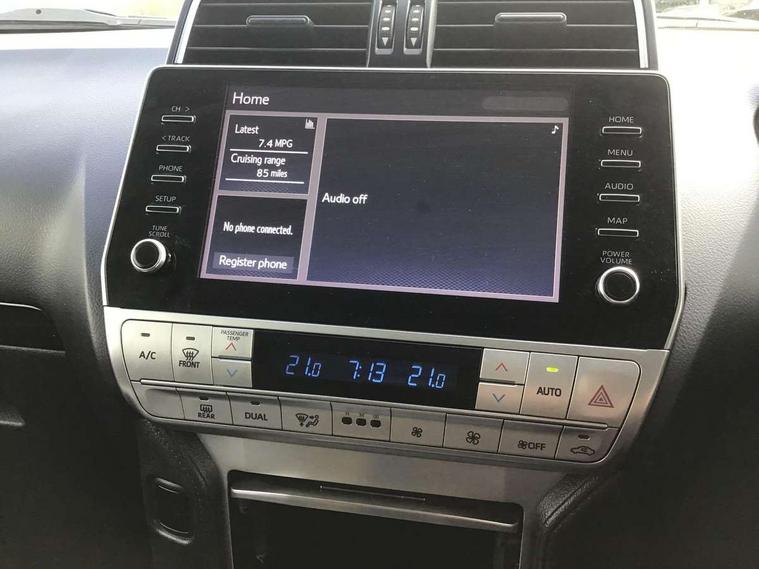 4.2" coloured TFT screen multi-information display, Adjustable speed limiter with memory, Audio switch on steering and and steering wheel mounted controls, Bluetooth handsfree connectivity, Boot tailgate remote release on key, Cruise control, Digital speedometer, ECO-driver indicator, Gearshift indicator, Reversing camera with 4 rear parking sensors, Tilt detection sensors, TPMS (Tyre pressure monitoring system), Trip computer, Tyre pressure warning system (TPWS), Variable flow control (VFC) power steering, 8" touchscreen with Toyota touch 2 multimedia system, 9 speakers, Apple Carplay/Android Auto, Aux-in connector, Digital audio broadcast (DAB), Multimedia and telephone switches on steering wheel, USB connector, Aluminium door scuff plates, Anti-jam protection on power windows, Automatic headlights with cut-off, Black roof rails, Black side steps, Black upper front grille, Body colour front and rear bumpers, Body coloured door mirrors and door handles, Body coloured protection moulding on side doors, Body coloured rear spoiler, Dusk sensor, Electric heated door mirrors, Follow me home headlights, Front and rear mud guards, Front and rear power windows with auto up/down function, Front spoiler, Grey insert on boot door, Headlamp levelling, Integrated indicators on door mirrors, Intermittent wipers, LED Daytime running lights, LED front fog lights, LED High mounted stop light, LED rear brake lights, LED rear combination lights, Multi reflector halogen headlights, Power adjustable and retractable door mirror, Rear blanking glass, Rear fog lights, Rear window defogger system, Rear window wiper, Shade band on window, Towing hook, Trailer sway control, 12V power socket in front, 12v rear passenger power socket in 2nd Row, 2 rear coat hooks, 220v power socket in boot, 4 spoke leather steering wheel, 50:50 split folding 3rd row rear seats, 60:40 split folding 2nd row rear seats, Ashtray, Assist grips in centre pillar, Assist grips in front pillar, Automatic dual zone air conditioning, Black interior door handles, Boot light, Chrome insert on centre air vent, Clean air filter, Cloth upholstery, Driver and front passenger whiplash injury lessening seats, Driver and passenger seatback pockets, Fabric door trim, Floor mats, Front and rear door pockets, Front assist grips, Front bottle holders, Front cupholders, Half width mesh grille, Height adjustable passenger seat, Illuminated driver and passenger sun visors with vanity mirror, Illuminated entry system, Leather armrest on front console box, Leather gearshift and handbrake, LED Driver and front passenger personal lights, Lockable glove box with light, Manual adjustable tilt and telescopic adjustable steering wheel, Manual height adjustable drivers seat with lumbar support, Manually reclining driver and passenger seat, Manually sliding driver and passenger seat, Rear assist grips, Rear bottle holders, Rear cupholders, Rear passenger personal lights in 2nd row, Rear passenger room lights in 3rd row, Reclining and sliding on 2nd row rear seats, Retractable tonneau cover, Silver centre console, Sunglasses holder, Child safety door lock, Front passenger airbag detector, Front seatbelt pre-tensioners + force limiters, Front seatbelt reminder, Passenger airbag on/off switch, Speed detecting automatic door lock, Supplement restraint system (SRS) 7 airbags - driver and passenger, knee, side and curtain, Trailer wiring harness, Driver power door lock, Glass breaking alarm sensors, Immobiliser, Intrusion sensor and alarm, Isofix child restraint system, Remote door lock, ABS, Active traction control, Brake assist, Downhill Assist Control (DAC), EBD, Emergency brake light signal, Engine start/stop system, Hill start assist, Smart entry and push button start, Vehicle stability control, 17" 6-spoke silver alloy wheels, Full size temporary spare wheel,