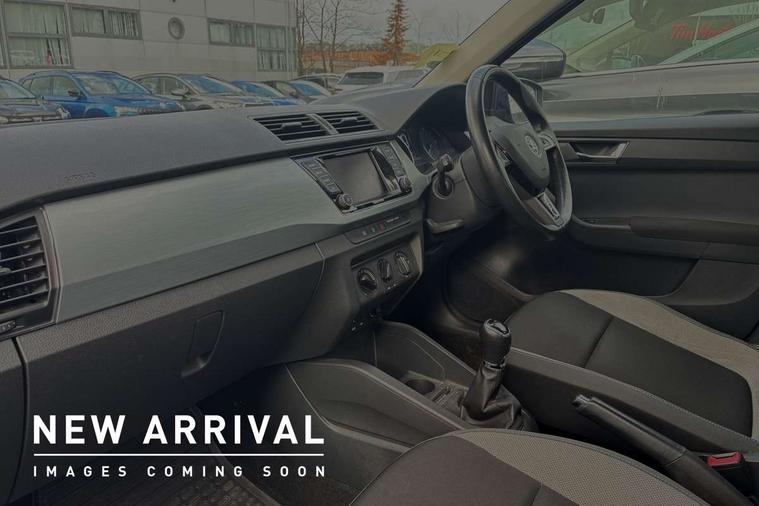 Bluetooth system, Exterior temperature gauge, Front assistant collision mitigation, Maxi dot trip computer, PAS, Service interval indicator, SmartLink, Auxiliary socket for external MP3 player, Bolero radio with telephone control, Mirror Link, USB and SD card, DAB Digital radio, Body colour bumpers, Body colour door handles, Body colour door mirrors, Chrome grille surround, Electric front windows, Electrically adjustable and heated door mirrors, Heated rear window, Height adjustable headlamps, Intermittent rear wash/wipe, Tinted rear windows, Tinted windscreen, 1.5L bottle holder in front door panels, 2 height adjustable rear headrests, 60/40 split folding rear seat, Boot stowage box, Cargo area storage tray, Cloth upholstery, Driver + passenger vanity mirrors, Folding grab handles, Front reading lights, Height adjustable driver's seat, Height adjustable front headrests, Height adjustable passenger seat, Height/reach adjust steering wheel, Interior light with delay, Leather gearshift, Leather handbrake, Lower glovebox cover, Luggage load hooks, Parcel shelf, Pollen filter, Rear courtesy light, Rear storage trays, Storage compartment under front seats, Ticket holder, Two rear outer seat isofix location points, Arkamys surround sound pack - Fabia, Chrome Pack - Fabia, 3x3 point rear seatbelts, ABS, Curtain airbags, Driver and passenger airbags, Driver and passenger side airbags, EDS, ESC with ASR, Front seatbelt pretensioners, Hydraulic Brake Assist (HBA), Passenger airbag deactivate switch, Seatbelt warning, Tyre pressure monitor, Alarm with interior monitoring, Immobiliser, Locking wheel bolts, Remote central locking,