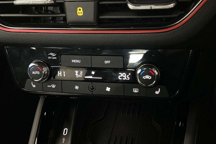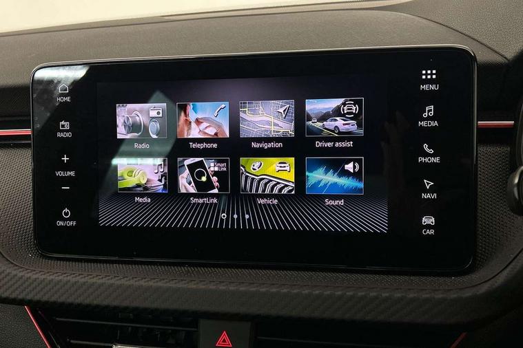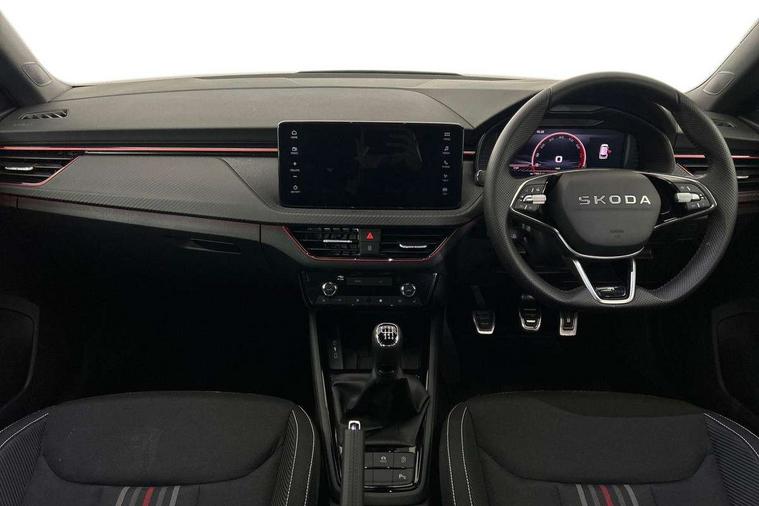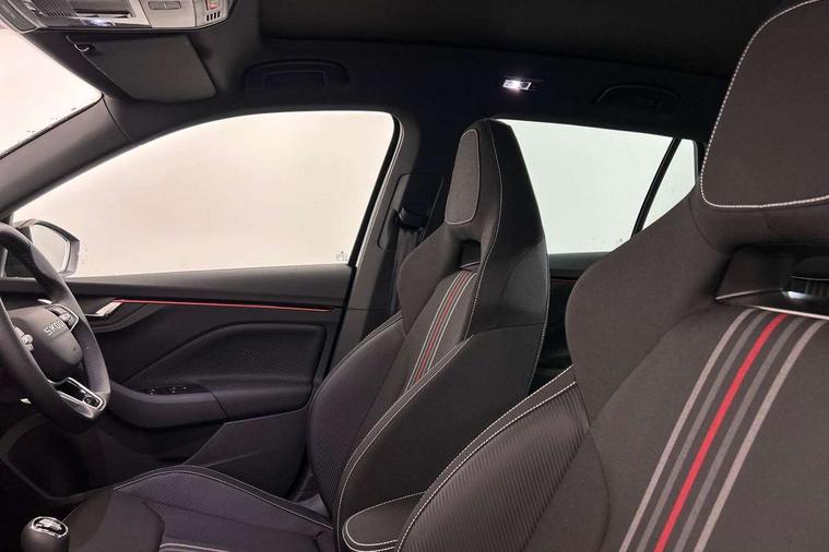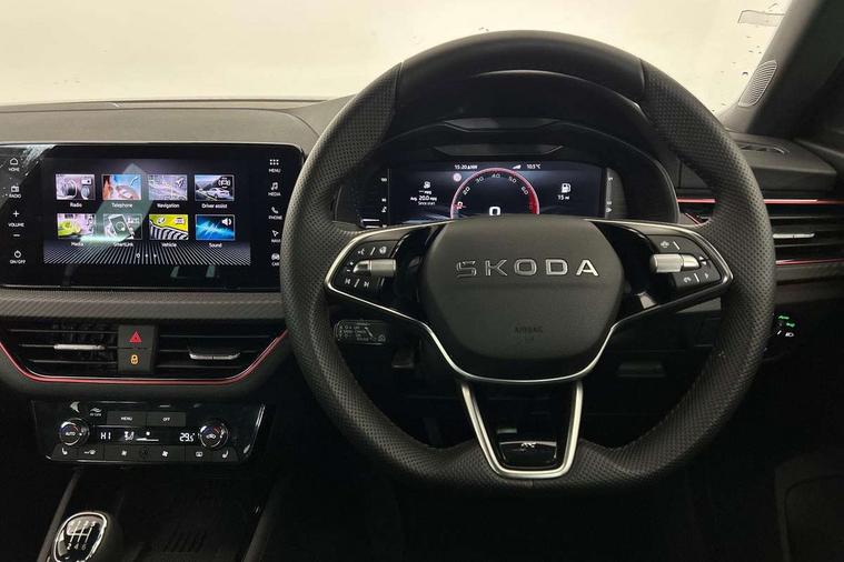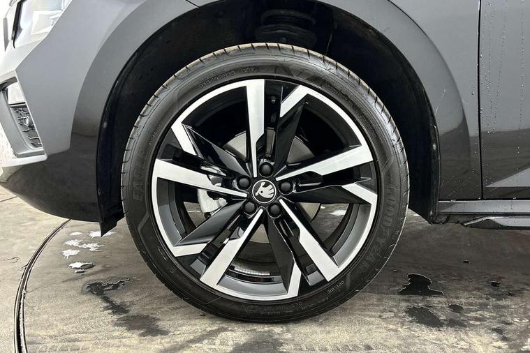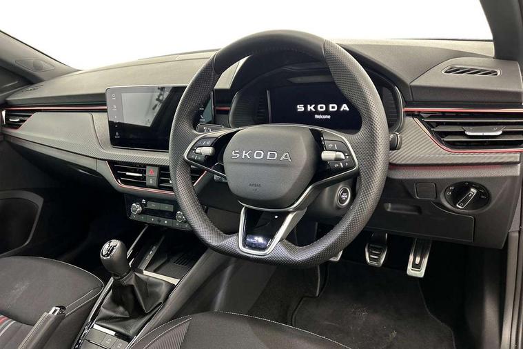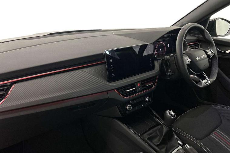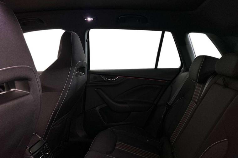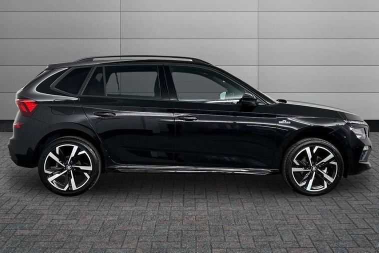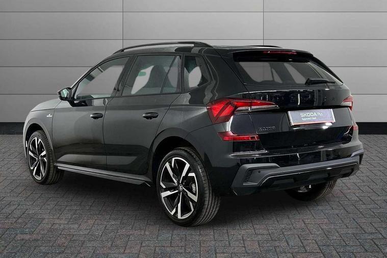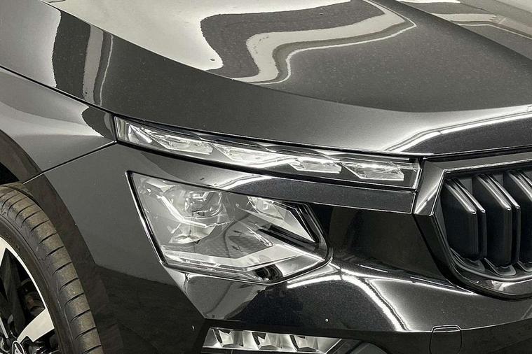 Advanced driver attention and drowsiness monitor, Bluetooth system, E-call, Front assist system, PAS, Rear parking sensors, Rear view camera, Service indicator, Speed limiter, Traffic sign recognition, Virtual cockpit with 10.25" display, Voice control system, Wireless smartlink, 4 USB C ports, 8 Speakers, 9.2" Skoda navigation display, DAB Digital radio, Auto dimming rear view mirror, Automatic headlight control with coming home and leaving home feature, Black door mirrors, Black radiator grille, Black rear diffuser, Black roof spoiler, Body colour bumpers, Body colour door handles, Boot lettering in black, Extended tailgate glass, Fixed panoramic sunroof with black roof rails, Front and rear electric windows, Heated rear window, LED daytime running lights, LED high beam, LED low beam, LED third brake light, Light sensors, Monte carlo plaque, Privacy glass, Rear side wing doors, Rear wiper, Ticket holder inside windscreen, 12V socket in luggage compartment, 3 seat bench in 2nd row, Aluminium pedals, Ambient lighting in white/red, Art leather carbon decor inserts, Art leather carbon door inserts, Black roof lining, Cargo elements, Chrome inner door handles, Driver and passenger sun visors with vanity mirror, Dual zone climate control, Front and rear roof lights, Front centre armrest, Front head restraints, Glove compartment with illumination, Height adjustable driver seat, Height adjustable front passenger seat, Ice scraper, Inner circulation control with pollen filter, ISOFIX on front passenger seat, Isofix preparation for back seats, Leather gearknob and handbrake lever, Manual lumbar support for front seats, Monte Carlo cloth upholstery, Net package and top tether hooks in boot space, Net under rear shelf, Pocket on the back of both front seats include mobile phone pockets, Rake/reach adjustable steering wheel, Reading lights, Rear centre armrests, Red hotstamping, Single front passenger seat, Sports seats, Textile floor mats, Third rear headrest, Top tether for front passenger seat, Umbrella in driver's door, Light and view plus package - Kamiq, 3x3 point rear seatbelts, Airbags - driver and front passenger, Disc brakes, ESP, Extended and predictive pedestrian/cyclist protection, Front passenger airbag deactivation switch, Front side airbags with curtain airbags, Hill hold control, Manual leather parking brake, Manual rear child locks, One tone horn, Seatbelt reminder for driver an co-driver, Traction control, Tyre pressure monitor, Anti-theft alarm system with interior monitoring, backup horn, towing protection and remote central locking with SAFE system, Anti-theft wheel bolts, Electronic engine immobilizer, 18" Ursa black diamond cut alloy wheels,