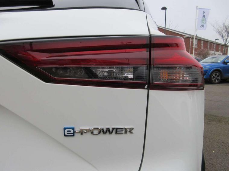 Android auto/Apple CarPlay (Wired), Blind spot warning, Drive modes (sport, normal, eco), Electric speed sensitive power steering, Emergency and breakdown call, Front and rear parking sensors, Full Digital 12.3" TFT Digital Combimeter, Google maps services - search, weather, 3D maps and Google street view, Idle stop/start system, Intelligent around view monitor, Intelligent Cruise control (ICC), Intelligent driver alert system, Intelligent forward collision warning, Intelligent lane intervention, Lane departure prevention, Lane departure warning system, Maximum speed limiter, Moving object detection, Nissan connect 12.3 inch touchscreen infotainment system, Nissan connect navigation, Push button starter, Rear cross traffic alert, Rear view camera, Remote control services - door locks, lights, horn and car locator, Telematics - notifications and connectivity services, TomTom live traffic services, Traffic sign recognition with legal speed adjustment, Trip computer, Virtual personal assistant and firmware over the air capability, Wireless apple carplay, 6 speakers, AM/FM audio system with DAB, Bluetooth audio streaming, Front USB connections (Type-A and Type-C), Rear USB charging only ports (Type-A and Type-C), Auto dimming rear view mirror, Auto rear wiper when reversing, Automatic hazard signal with emergency stop signal, Body colour mirror caps, Body coloured door handles, Bodyside mouldings, Chrome side window finisher, Door handle with button, e-POWER badging, Electric auto folding door mirrors, Electrically adjustable and heated door mirrors with LED turn indicator, Follow me home headlights, High beam assist, Intelligent auto headlights, LED daytime running lights, LED Headlights, LED rear lights, One touch front and rear electric windows with remote opening and closing, Partially body coloured bumpers, Privacy glass, Rear bumper with graphite insert, Rear reversing light (bulb lighting), Rear roof spoiler, Rear side wing doors, Rear styling plate, Shark fin antenna, Splash free rain sensing wipers, Super UV and infrared cut glass, Three blink turn signal, 12v power socket in dashboard and luggage, 2x Rear coat hooks, 3 bench rear seats in 2nd row, 3 rear headrests, 4 folding assist grip, 6-way manually adjustable driver's seat, 60/40 split folding rear seat bench, Ambient lighting around centre console, Centre console storage tray, Chrome interior door handles, Cloth monoform upholstery, Driver and front passenger sunvisors with illuminated vanity mirrors, Driver seat back pocket, Dual zone automatic climate control with pollen filter, e-POWER shifter, Front and rear door storage, Front centre console and armrest, Front cupholders x 2, Front door with bottle holders, Glovebox with light, Hard trunk cover, Height adjustable driver's seat, Height adjustable front headrests, Height adjustable passenger seat, Leather steering wheel, Luggage board system, Luggage space lighting, Manually adjustable passenger (slide recline + lifter), Multifunction steering wheel, Passenger seat back pocket, Rear armrest with 2 cupholders, Rear door bottle holders, Single front passenger seat, Soft PVC kneepad, Steering wheel switches, Sunglasses holder, Tilt/telescopic adjustable steering wheel, Two rear isofix child seat anchorage points with top tether, Welcome light and console tray ambient lighting, 3x3 point rear seatbelt pretensioners + load limiters, ABS with EBD and brake assist, Active brake limited slip, Auto hold function, Child locks on rear doors, Curtain and front side, far side airbags, Driver and passenger airbags, Driver, passenger and 2nd row rear seat belt reminder, Electronic parking brake, Front seatbelt pretensioners + load limiters, Height adjustable front seatbelts, Hill start assist, Intelligent blind spot intervention, Intelligent front emergency braking with pedestrian, cyclist recognition and junction assist, Intelligent rear automatic braking, Tyre pressure monitoring system, Vehicle dynamic control, Capless fuel filler, Engine immobiliser, Intelligent Key, Remote central door locking with deadlocking, Thatcham Cat.1 alarm, Interior instrumental panel B finisher, 18" Diamond cut alloy wheels, Tyre puncture repair kit,