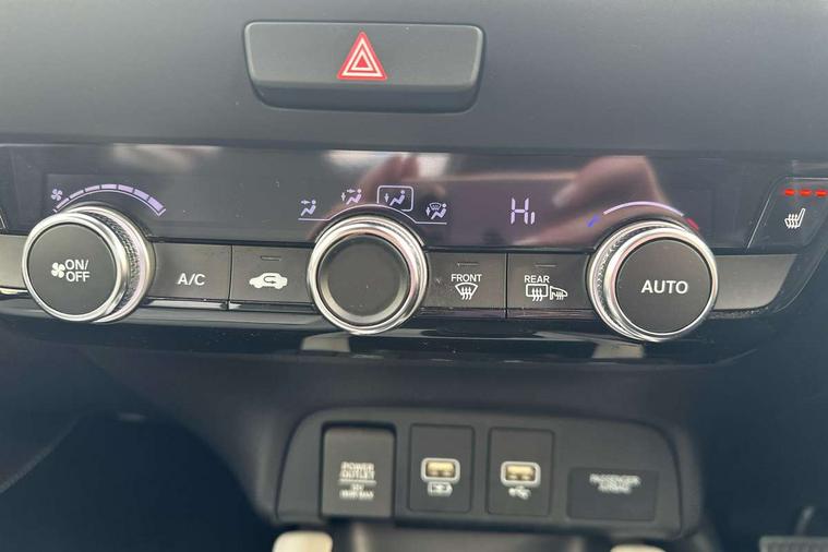 Adaptive cruise control, Adjustable speed limiter, Agile handling assist, BLIS (Blind Spot Information System) with Cross Traffic Monitor, Bluetooth hands free telephone connection, eCall emergency call system, Econ mode, Electric power steering wheel with variable gear ratio steering, Emergency stop signalling system, Forward collision warning, Front and rear parking sensors, Honda CONNECT with HERE Navigation + 9" touchscreen, AM/FM/DAB/Apple Carplay and android auto, Idle stop, Intelligent speed limiter, Lane departure warning system, Lane keep assist system, Low speed following, Multi-information display, Rear view camera, Road departure mitigation, Traffic sign recognition, Vehicle stability assist, 'Shark fin' mobile antenna, 2 USB sockets in rear, 2x USB Front socket (1 data & 1 charge), 4 speakers, Remote audio controls on steering wheel, Aspheric door mirrors, Auto wipers, Automatic headlights with on/off timer, Coming/leaving home function, Body colour door handles, Body coloured bumpers, eHEV emblem, Electric adjustable door mirrors, Electrically folding door mirrors, Front and rear electric windows, Heated door mirrors, High beam assist, LED daytime running lights, LED front fog lights, LED Headlights, LED rear lights, Privacy glass, Rear side wing doors, Rear wiper, Single exhaust tailpipe, Third brake light, 3 seat bench in 2nd row, 60/40 split rear bench seat, Cargo net hooks, Climate control air conditioning, Driver and front passenger seat armrests, Driver and passenger front seat pockets, Driver's seat height adjustment, Fabric/leather upholstery, Front accessory power socket, Front head restraints, Front map lights, Front/rear courtesy lights, Heated front seats, Heated steering wheel, Isofix child seat restraint mechanism, Isofix points, Leather gearshift knob, Leather steering wheel, Magic seat flexibility system, Paddle shift controls, Plating interior door handles, Rear head restraints, Rear parcel shelf, Single front passenger seat, Sunvisors with vanity mirrors, Tilt/telescopic adjustable steering wheel, Tonneau cover, Trunk light, 3x3 point rear seatbelts, Anti-lock braking system (ABS), Brake assist function, Brake hold function, Child locks on rear doors, Collision mitigation braking system, Deflation warning system, Driver knee airbag, Driver SRS airbag (single stage inflation), Driver/Front Passenger airbags, Electric parking brake, Front and rear side curtain airbag, Front side airbags, Hill start assist, Passenger SRS airbag cut-off device, Rear side airbags, Whiplash lessening front headrests, Front seat belt with emergency locking retractor, Honda super locks, Immobiliser, Mirrors and windows key fob operation, Remote central locking with 2 remote folding keys, Security alarm, Smart entry + Smart start, Soft pad leather interior panels, 16" Multi apperance alloy wheels in mat berlina black, Tyre repair kit,