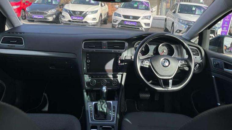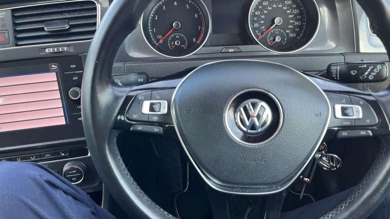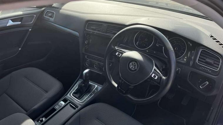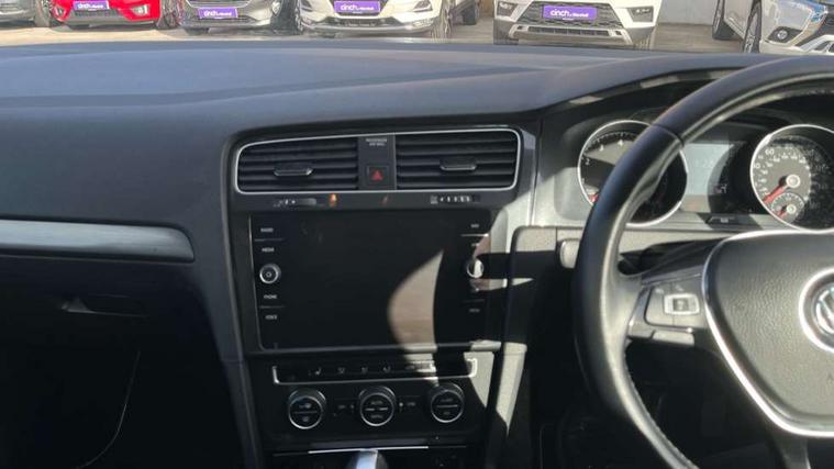 'Lights On' Reminder warning buzzer, ACC - Adaptive cruise control with front assist, forward collision warning, distance monitoring, city emergency brake and speed limiter, Bluetooth telephone and audio connection for compatible devices, Brake pad wear indicator warning light, Driver alert system, Driving Mode Selection with four preset modes - Eco, normal, sport or individual modes, Instrument cluster in white, Multifunction computer with visual gear change recommendation for fuel consumption, Power assisted speed sensitive electro-mechanical steering, Push tank flap, Speedo, rev counter, electronic odometer, trip, service interval display, exterior temperature and fuel gauge, Stop/start system, Think blue trainer driver tips and journey analysis, Warning buzzer and light for front seatbelts unfastened, We Connect Go Dongle, Battery regeneration during braking, XDS electronic differential lock, DAB Digital radio receiver, Driver Personalisation profile selection, MDI multi device interface, MP3/WMA compatability, Premium USB cable in choice of either Apple or Android smartphone compatibility, SD card slot, SMS Functionality, Title and cover art display, USB charging socket, Volkswagen media control, Automatic coming/leaving home lighting function, Black front air intake and radiator grille with chrome insert, Black rear diffuser, Black roof rails, Body colour bumpers, Body colour door handles, Body colour door mirrors with integrated indicators, Dusk sensor + automatic driving lights, Electrically adjustable and heated door mirrors, Front and rear electric windows, Fully galvanised body, Heated rear windscreen, Hidden exhaust pipe, High level 3rd brake light incorporating LED Technology, LED daytime running lights, LED front fog lights with static cornering light function, LED rear lights, LED rear number plate lights, Rain sensor and automatic dimming interior rear view mirror, Rear fog lamp, Rear tinted glass 65% light absorbing from B pillar backwards, Rear window aerial, Rear window wash/wipe with intermittent wipe, Reflectors in all doors, Tailgate with integrated rear roof spoiler, Windscreen wipers/ intermittent wipe + 4 position delay, 12V socket in luggage compartment, 3 rear headrests, 3 spoke steering wheel, 4 load lashing points in luggage compartment, 60/40 split folding rear seat backrest and flat folding into boot floor, Auto fold down lever in rear seat backrest, Bag hook in luggage compartment x 2, Black decorative sleeve on gear handles, Climate control - 2 zone electronic air conditioning with automatic air recirculation and allergy filter, Cooled glovebox, Cover for storage compartment in centre, Cupholder cover, Dust/pollen filter, Front and rear reading lights X 2, Front centre armrest with storage compartment and two rear air vents, Front seat back storage pockets, Grab handles front x 2, rear x 2 with integrated coat hooks, Height and reach adjustable steering wheel, Illuminated vanity mirrors, Instrument lighting white adjustable panel illumination, Interior light delay, Isofix preparation for 2 rear child seats, Load through provision with rear centre armrest and cupholders x2, Luggage compartment cover with stowable convenience opening, Luggage compartment lighting, Overhead storage box, Passenger underseat drawer, Pearl grey headlining, Storage box in luggage compartment, Storage compartment in roof console with cover, Storage compartments in front doors, Storage compartments in rear doors, Sun visors, Variable boot floor, height adjustable and removable, Convenience Pack - Golf, Mirror pack - Golf, Winter pack - Golf, 3 rear three point seatbelts, Airbags - Driver and rear passenger curtain, driver knee, front side impact, driver and passenger airbag with passenger deactivation switch, Anti-lock Braking System (ABS) with Hydraulic Brake Assist (HBA), Automatic post collision braking system, Child locks on rear doors, Driver/Passenger optimised head restraints, Electronic parking brake with auto hold, Electronic stability control (ESC) including Electronic differential lock (EDL) and ASR (Traction control) with deactivation via infotainment system, Front ventilated disc brakes and rear disc brakes, Pre crash preventive occupant protection, Predictive pedestrian protection, Three point height adjustable front seatbelts with tensioners, Tyre pressure loss indicator, Volkswagen roadside assistance, Alarm with interior protection and deactivation via infotainment system, Electronic engine immobiliser, Brushed dark silver decorative inserts in dash and door panels, Chrome plated air vent surround, Chrome-plated light switch surround, Polar night black decorative inserts in centre console, Full size wheel trims, Steel space saver spare wheel,
