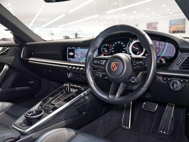 10.9 inch centre display, Automatic start/stop system, Digital display for selected gear in rev counter, Instrument cluster with central analogue rev counter and two 7-inch TFT displays, Porsche Communication Management (PCM) including online navigation module, mobile phone preparation, audio interfaces and voice control system, Porsche WET Mode, Service indicator, Stationary management with HOLD function, Trip computer, Warn and Brake Assist, 8 Speed Porsche Doppelkupplung (PDK), Aluminium block and cylinder heads, Direct fuel injection (DFI), Expansion intake manifold, Four valve per cylinder, Integrated dry-sump lubrication with an on-demand oil pump, McPherson-strut suspension with anti-roll bar at front, Multi-link suspension with anti-roll bar at rear, Porsche Stability Management (PSM), ABS with extended brake functions, Rear wheel drive, Twin turbocharger intercooled, Two gasoline particulate filter, Two three-way catalytic converters and on-board diagnostics for monitoring emission control system, VarioCam Plus variable valve timing and switchable valve lift, Water cooled with thermal management, DAB Digital radio, "PORSCHE" lettering integrated in taillight strip, Auto deploying rear spoiler, Automatic headlight activation including welcome home lighting, Body coloured bumpers, Electrically adjustable heated exterior mirrors on door waist rails, aspherical on driver's side, Engine compartment cover grille with vertical slats in black (high-gloss), Green tinted heat insulating glass, Heated rear windscreen, Intelligent lightweight body in Aluminium/Steel composite construction, LED auxiliary light units in the front end with position lights, direction indicators and side indicators, Model designation on rear trim in high gloss silver colour, Power windows with one touch operation and door seal protection, Retractable door handles, Side air intakes at front with active cooling flaps and air blades, Taillight strip including integral parking lights and rear driving lights, Three dimensional LED taillights and integral third brake light, Trims on sideskirts in black, Windscreen washer system with aero wiper blades and washer jets, Windscreen with grey top tint, 12V socket in front passenger footwell, 2+2 seater with rear engine, Clothes hooks on front seat backrests, Front and rear head restraints, Heated front seats, Inner door sill guards with model designation, ISOFIX child seat mounting points on front passenger seat, Luggage compartment at front, One individual cupholder (passenger side) and one individual cupholder in centre console, Particle/pollen filter with active carbon filter, PDK gear selector with automatic mode, manual gear selection via shift paddles on the steering wheel, Split folding rear seats, SPORT button to activate dynamic driving settings for engine and transmission, Storage compartments in each doors, Two zone auto climate control with separate temperature settings for driver/front passenger, automatic air recirculation mode incl air quality sensor, 3 point inertia reel seatbelts, 4 piston aluminium monobloc fixed + brake calipers at front and rear + brake calipers with black finish, Brake discs with 330mm diameter at front and rear, internally vented and cross-drilled, Electric parking brake, Electromechanical power brake, Full size two stage airbags for driver and front passenger, Porsche side impact protection system (POSIP) includes side impact protection in doors, head/thorax airbags for driver and front passenger, Tyre pressure monitoring system, Engine immobiliser with remote central locking and alarm system with radar based interior surveillance, Keyless Go, Tyre sealing compound and electric air compressor kit,