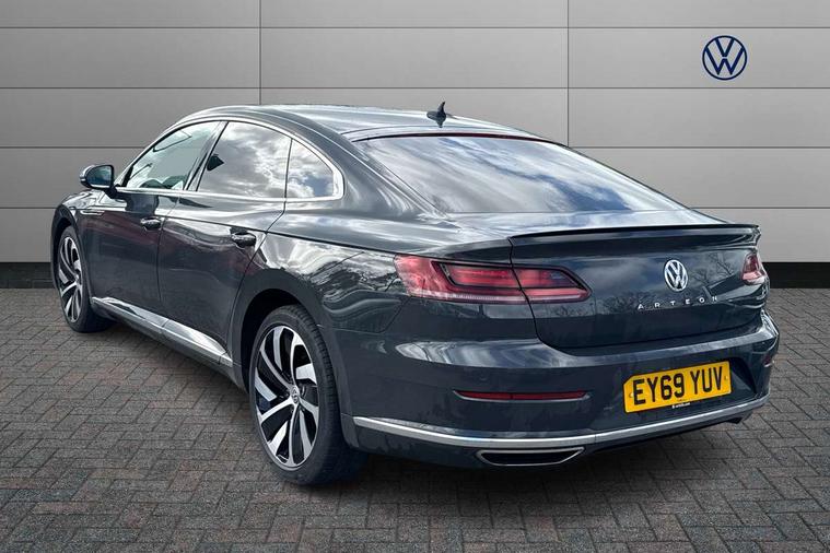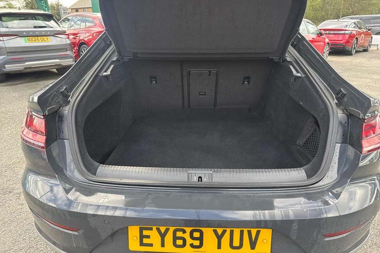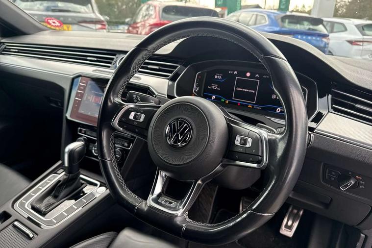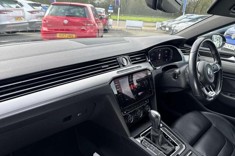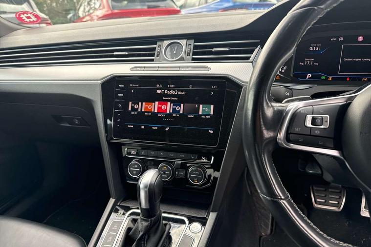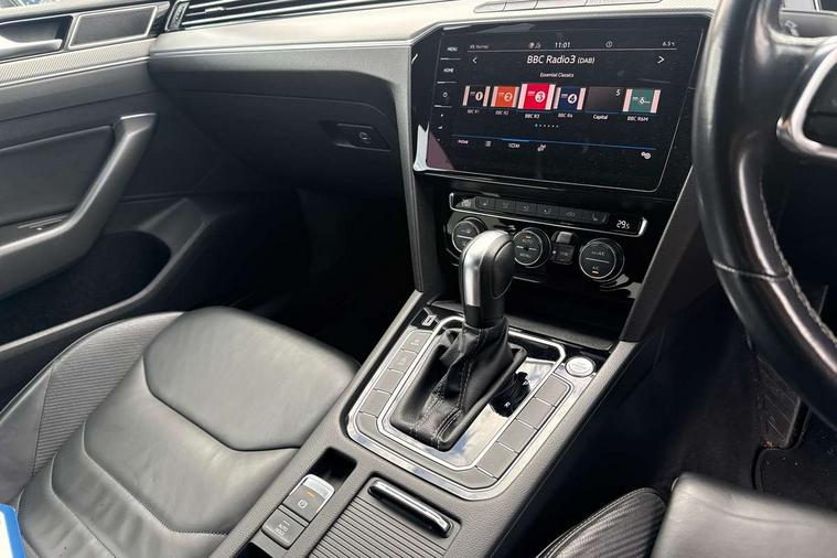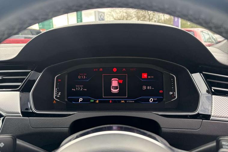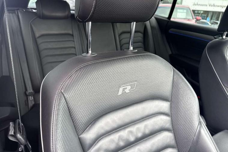 'Lights On' Reminder warning buzzer, 2D/3D map view, 8" touch screen, Active Info display 12.3" high resolution TFT dash display with customisable menu and information, Adaptive Cruise Control with pedestrian detection and speed limiter, Analogue clock in the dasboard, Bluetooth telephone and audio connection for compatible devices, Car-Net Security and Service, Discover pro navigation, Driver alert system with fatigue detection, Driver profile selection, Front Assist with radar sensor controlled distance monitoring system, Lane assist, Press and drive key, Progressive steering, Remote boot unlocking, Speedo and rev counter, electronic odometer, trip, service interval display and fuel gauge, Start/Stop function, Streaming and internet, Think blue trainer driver tips and journey analysis, Voice control system, Warning sound and light for doors and boot lid opening, Warning sound and light for front and rear seat belts if unfastened, We app connect, Battery regeneration during braking, Part galvanised body, CD/MP3/WMA and SD card reader, DAB Digital radio, MDI with USB/iPod connection cables, Premium USB cable in choice of either Apple or Android smartphone compatibility, SMS functionality - read, compose and send SMS messages using touch-screen display, Title and cover art display, USB interface 3.0 with type C, Advanced high beam control, Auto dimming interior rear view mirror, Automatic coming/leaving home lighting function, Automatic hazard lights activation under emergency braking, Automatic headlights with dusk sensor, Body colour door handles, Body coloured door mirrors with integrated indicators, Chrome side window surrounds, Chrome trim headlights extending into the radiator grille, Chrome trim on radiator grille louvres, Door sill protector, Dynamic cornering lights, Dynamic light assist, Electric adjust/heated/foldable with auto dimming on driver side, puddle lights on door mirror and reverse activated kerbview adjust on passenger side, Emergency release function in rear tailgate, Front and rear electric windows, Front fog lights, Gloss black spoiler, Headlight range control, Headlight washers, Heated rear window, Heated windscreen washer jets, High level 3rd brake light, LED headlights with separate daytime running lights, LED number plate light, LED tinted rear light clusters with dynamic indicators, Left and right chrome effect trapezoid dummy exhaust tailpipe surrounds, Left and right chrome trim on lower bumper, Left and right chrome trim on lower doors, R Line bading on front raddiator grille, R Line Design front bumper, R Line lettering on side fender vents, R Line logo on door sill protectors, Rain sensor, Rear tinted glass on rear side windows with 87% and rear windows with 77%, Side skirts with chrome inserts, Windscreen wipers/ intermittent wipe + 4 position delay, 12V socket in centre console storage area, 12V socket on rear of front centre armrest, 2 bag hooks in luggage compartment, 2 reading lights front and rear with interior delay and dimming function, 3 spoke leather multifunction steering wheel including paddle shift with Aluminium inserts and R-Line logo, 3 Zone electronic climate control with automatic air recirculation, 4 load lashing points in luggage compartment, 60/40 split folding rear seat with armrest, Aluminium finish interior door handles, Aluminium trim on upper and lower air vents extending across cockpit, Front + rear carpet mats, Front and rear interior lighting with delay and dimming function, Front centre armrest with storage compartment, longitudinal and height adjustable and two rear air vents, Front cupholders x 2, Front footwell ambient lighting, Front seat and rear pockets, Front seats with R-line logo on seat backrest, Gearshift paddles, Glovebox, Heated front seats, Height adjustable 3 rear head restraints, Height/reach adjust steering wheel, Illuminated vanity mirrors, Isofix child seat preparation easy fit for two outer rear seats, Jack and tool kit, Luggage compartment lighting, Nappa leather upholstery, Rear armrest with 2 cupholders, Rear load through provision with 2 cup holders in armrest when folded down, Removable luggage compartment cover, Stainless steel footrest and pedals, Storage compartment in drivers and front passengers door, Storage compartment in rear doors, Storage compartment with soft touch opening cover in centre console, Storage compartments in luggage area left and right, Titan headlining, USB charging point, 3 rear three-point seat belts with tensioners on outer seats, ABS, Active bonnet, City Emergency Braking in active traffic speeds up to 19mph, Drivers and front passengers airbags with passengers deactivation switch, Drivers and front passengers safety optimised head restraints, Drivers knee airbag, Electronic parking brake with auto hold, Electronic stability control (ESC) includes ASR, EDL, EDTC and trailer stabilisation function, Front and rear curtain airbags, Front seat side impact airbags, Front ventilated disc brakes and rear disc brakes, Height adjustable front 3 point seatbelts + pretensioners, Hill start assist, Outer rear seat side impact airbags, Pedestrian monitor, Proactive passenger protection system, Rigid safety cell with front and rear crumple zones, Two tone horn, Tyre pressure loss indicator, Warning triangle, Alarm with interior protection, Electronic engine immobiliser, Remote central locking with 2 remote folding keys, Piano black centre console, Silver Rise decorative inserts in dash and door panels, Full size alloy spare wheel,
