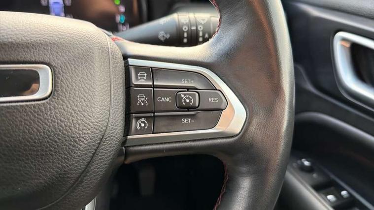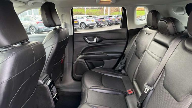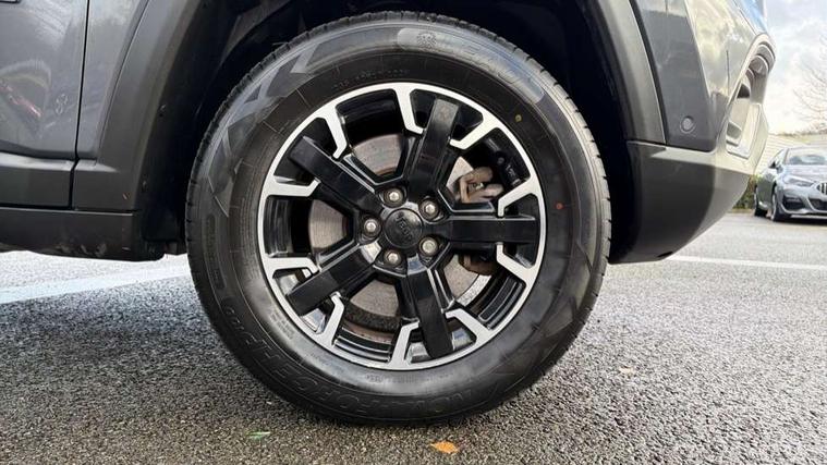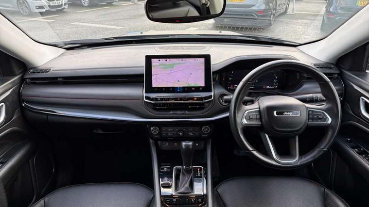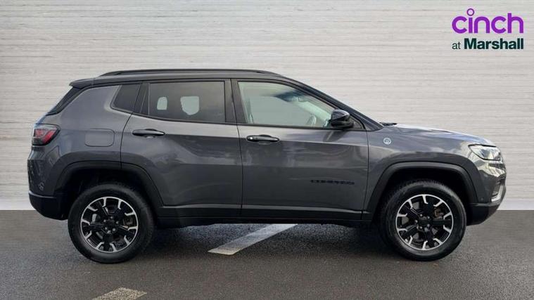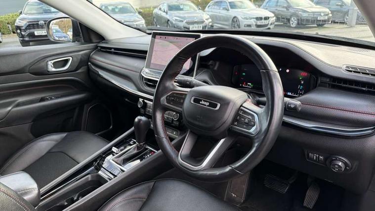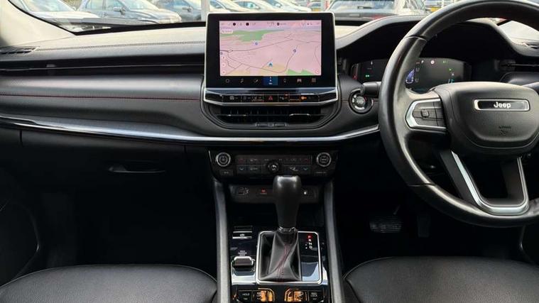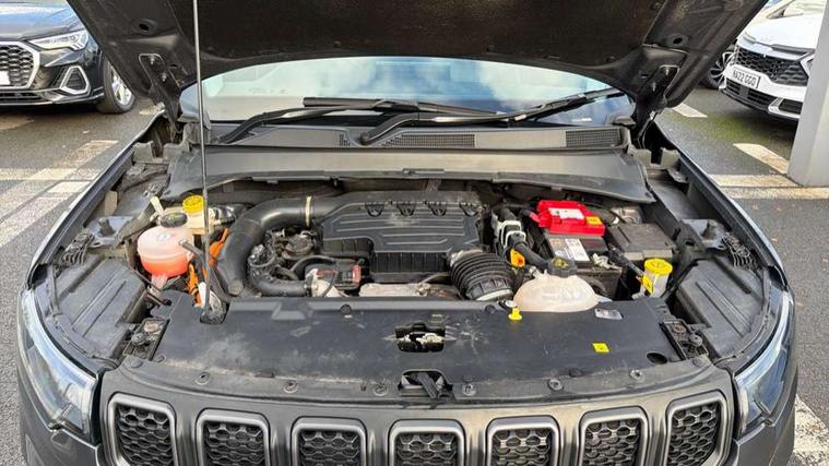 160 MPH primary speedometer, Active lane management, Active speed limiting device, Adaptive cruise control with Stop and Go, Drowsy driver detection, E-call, Electric power steering, English owners handbook, Full speed forward collision warning plus mitigation, Instrument cluster- 10.25" TFT Colour display, Instrument panel, Intelligent speed assist, Media centre electronic storage, Outside temperature display, Selec-Terrain system for Trailhawk with sport mode, Tachometer, TBM - Connected services (e-call), Traffic sign recognition (TSR), Vehicle information centre, Wireless charging pad, 7.4 kW onboard charger, Battery run - down protection, Battery skid plate, Boost and load point shift, CO2 improvement, E- launch, E-creeping, E-Parking, E-Queueing, Electric drive, Electronic roll mitigation, EV/PHEV mode 2 charging cable, Off road suspension, Bluetooth audio streaming, DAB Digital radio, Global telematics box module (TBM), Media hub (USB A-C TYPE), Steering wheel mounted audio controls, Uconnect 5 R1 Radio - 10.1" display without navigation, USB A and C type - second row, USB host flip, 4XE badge/e-Hybrid badge, Accent/body colour bumpers, Aspherical driver's exterior mirror, Auto dimming rear view mirror, Auto high beam, Automatic headlights, Belly pan - underbody protection, Black mic grille/neutral gray rings, Black side roof rails, Black window surrounds, Body colour door handles, Carry back MHEV, Coastdown and run-in optimization, Compass badge, Deep tint privacy glass, Door mirrors: power adjustable and folding, heated with auto folding function and indicators, Exterior door mirrors with heating element, Front fascia/belly pan skid plate, Front/rear grey insert, Gloss black badges, Gloss black exterior door mirrors, Headlamp leveling system, Headlamp off time delay, Heated rear window, Jeep badge, LED front fog lamps, LED rear lights, LED reflector headlamps high with segmented DRL, LED tail lights, Lower bodyside cladding in black, Neutral gray headlamp bezels, Neutral grey exterior accents, Off road bumper, Partial body cover protection, Power windows - driver and passenger express up/down, Rain sensitive windscreen wipers, Rear fascia, Rear fog lamps, Rear side wing doors, Rear windshield washer/wiper, Red rear tow hook, Removable short mast antenna, Skid plate shield - front suspension, Skid plate shield - fuel tank, Skid plate shield - transfer case, Skid plate shield - transmission, Smartbeam headlights, Third brake light, Trail rated badges, Trailer sway damping, Trailhawk badges, Trailhawk hood decal, UK front number plate bracket, Windshield wiper de-icer, 12V auxiliary power outlet - 2nd row, 3 rear seat head restraints, 3 seat bench in 2nd row, 60/40 split folding rear seat, All weather floormats with Jeep logo, Cargo area lights, Cargo compartment carpet, Cargo compartment cover, Cargo compartment organiser, Cargo compartment reversible mat, Cargo load floor, Cargo tie down loops, Centre console with sliding armrest, Centre rear 3 point seat belt, Child seat anchorage points, Coat hooks, Dash insulation, Driver assist handle, Dual zone temperature control with preconditioning capability and heater, Fold flat front passenger seat, Front head restraints, Front height-adjust seatbelts, Front map pocket LED lamps, Front map reading lights, Front seats back map pockets, Full length centre console, Glovebox light, Glovebox with damped soft close door, Heated front seats, Heated steering wheel, Illuminated door entry system, Interior door handle LED lamps, Internal rear grab handles, Leather wrapped gear knob, No Alternator, Overhead console, Overhead dome LED lamps, Passenger assist handles, Power 2-way driver lumbar adjustment, Rear air conditioning and heater vents, Rear seat armrest with cupholder, Red interior stitching accents, Single front passenger seat, Spare wheel storage insulation, Sunvisors with illuminated vanity mirrors, Tilt/telescopic steering column, Vinyl wrap steering wheel, Navigation pack - Jeep, Power pack - Jeep, Ventilated leather seats pack - Compass Trailhawk, AEB with pedestrian and cyclist detection, All speed traction control, Automatic electronic hold brake, Driver's front airbag, Dual note electric horns, Dual tyre pressure - turn changes, Electrical steering column shaft lock, Electronic parking brake, Electronic stability control, Energy recovery system, Front and rear side curtain airbags, Front passenger airbag, Front passenger airbag detector, Front side airbags, Hill descent control, Hill start assist, Jeep call assistance label, Passenger airbag deactivation switch, Rain brake support, Rear door child protection locks, Rear seat belt reminder, Tyre pressure monitoring display, Capless fuel filler, Occupant detection system, Passive entry and keyless go (Key fob without panic button), Power locking fuel filler door, Premium security alarm, Front and rear air vents, Speakers in satin chrome silver, 17" Alloy wheels, Temporary use spare tyre with non matching steel wheel,