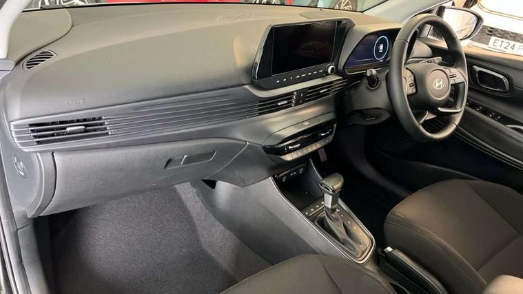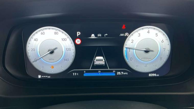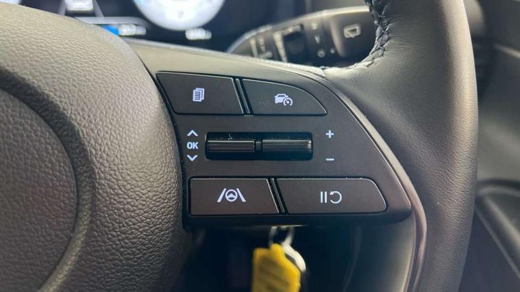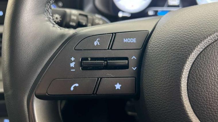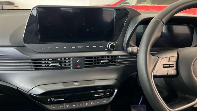 10.25" touchscreen + navigation, 2nd Gen eCall, 8" Touchscreen DAB Radio with android auto and apple carplay, Forward collision assist with car, pedestrian and cycle detection, Front parking sensor, Intelligent speed assist, Intelligent speed limit warning, Lane follow assist, Lane keep assist, MAP OTA updates, PAS, Rear parking sensor, Rear view camera with dynamic guidelines, USB C port front, USB C Port in rear, Automatic headlights with dusk sensor, Electric adjustable heated door mirrors, Electric folding door mirrors, Front grille mesh pattern design, High beam assist, LED 3rd brake light, LED daytime running lights, LED Headlights, LED taillights, Privacy glass - Rear windows and tailgate, Rain sensor, Rear side wing doors, Rear wiper, Repositioned flat metal hyundai emblem, Trailer wiring, 3 seat bench in 2nd row, Adjustable head restraints, Automatic air conditioning, Cloth upholstery, Floor mats, Heated front seats, Heated steering wheel, Leather steering wheel, Multi colour ambient lighting, Single front passenger seat, 3x3 point rear seatbelts, ABS with front and rear diagonally split, Autonomous emergency braking, Child locks on rear doors, Front ventilated disc brakes, Rear solid disc brakes, Tyre pressure monitoring system, 17" Alloy wheels, Tyre repair kit,