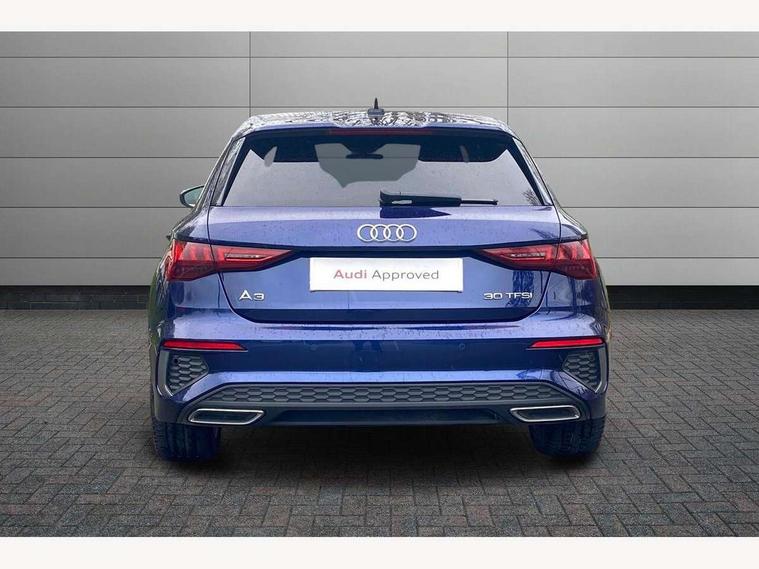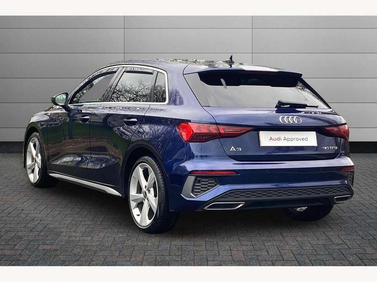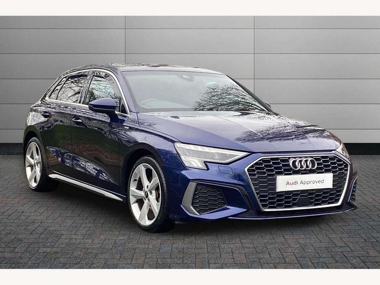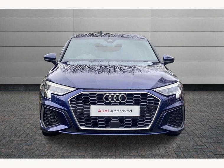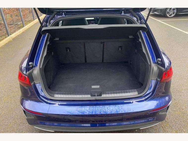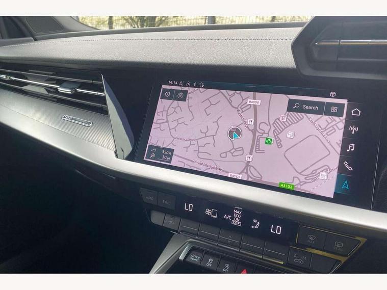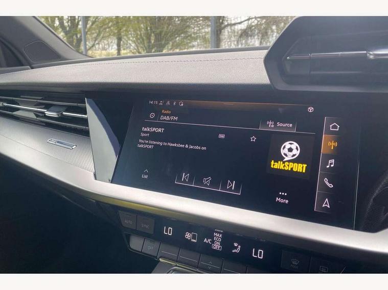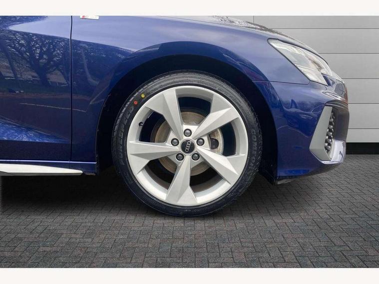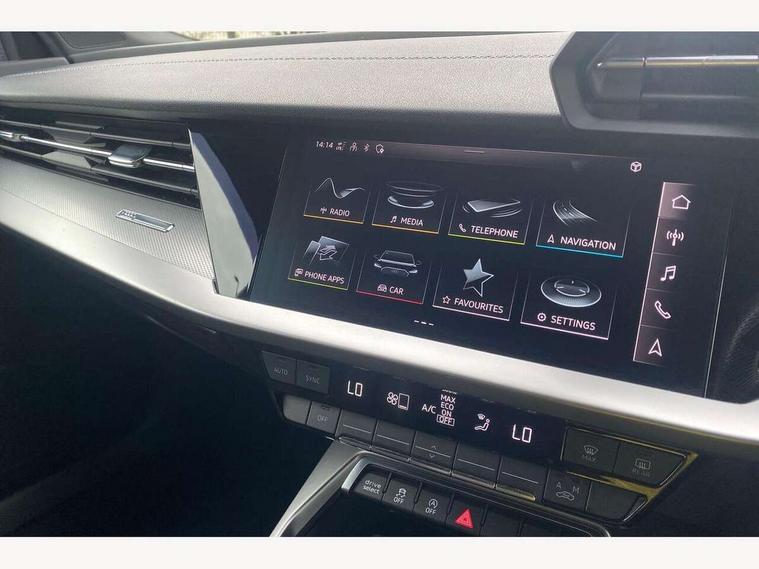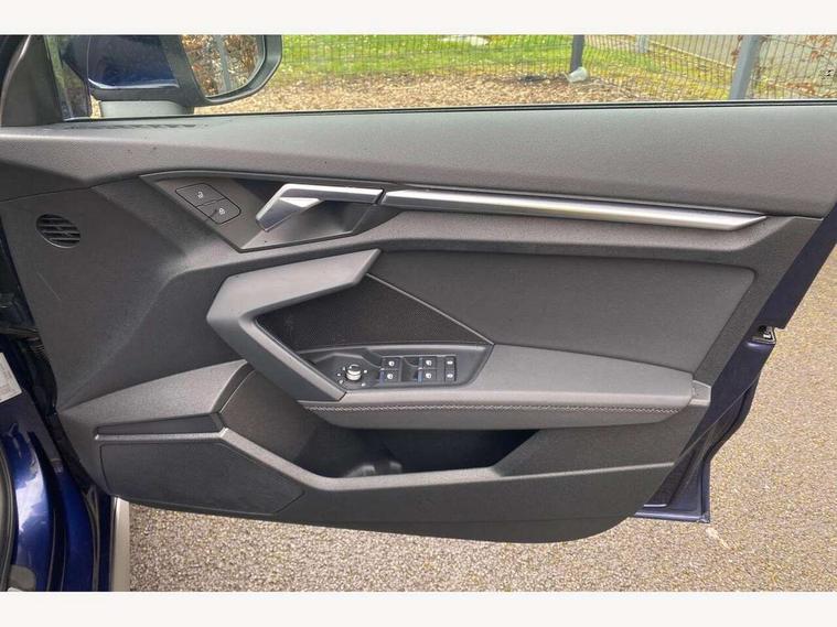Audi connect emergency call and service, Audi drive select (Auto, Comfort, Dynamic and Individual), Audi smartphone interface, Audi Virtual Cockpit - 10.25" digital and colour instrument cluster, Automatic start/stop system with recuperation, Bluetooth interface, Collision avoidance assistant, Electromechanical power speed sensitive steering, Lane departure warning system, MMI Navigation Plus with high resolution 10.1" colour touch screen display, Service indicator, Trip computer, Voice control system with natural language interaction, 2xUSB-C connection with data and charging functions, 6 passive loudspeakers, DAB Digital radio, 3rd brake light, Acoustic glass windscreen, Aluminium window trim, Auto dimming frameless rear view mirror, Electrically adjustable/heated/folding/auto dimming door mirrors with integrated LED indications + kerb view function for passenger side, Front electric windows, Illuminated aluminium inserts front door sills with S logo, LED daytime running lights, LED headlights with LED rear lights and dynamic rear indicators, Light and rain sensors, Privacy glass - dark tinted rear window, rear door and side windows, Rear electric windows, Rear side air outlets in grained matt black, Rear wiper, S line bumpers, S roof spoiler, 12V socket and storage compartment in front centre console, 40/20/40 split folding rear seat bench with cupholder, Black cloth headlining, Dual zone electronic climate control, Front and rear centre armrest in leather, Front and rear headrests, Front/rear floor mats, Height and reach adjustable steering wheel, Interior lighting - glove compartment light and right hand side, Luggage compartment floor covering, Manual boot compartment lid, Manually adjustable front seats, Seat side bolsters, Stainless steel pedals and front footrest, Twin leather upholstery with front sports seats S embossed logo, Aluminium interior elements pack - A3 Sportback, S line styling pack - A3 Sportback, 3x3 point rear seat belts, Driver and front passenger airbag with passenger airbag deactivation, Electronic Stabilisation Control (ESC) including ABS, ASR and EDL, First aid kit with warning triangle and 2 safety vests, Front side airbags with head airbags and interaction airbag, Hill hold assist, Pre-sense front with pedestrian and cyclist detection, Seatbelt monitoring, Tyre pressure loss indicator, Anti theft alarm, Anti-theft wheel bolts, Electronically operated child lock, Immobiliser, Remote control central locking, Accent surfaces in the dashboard and centre console in platinum grey silk effect paint finish, Dark spectrum aluminium inlays,