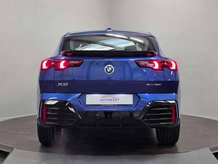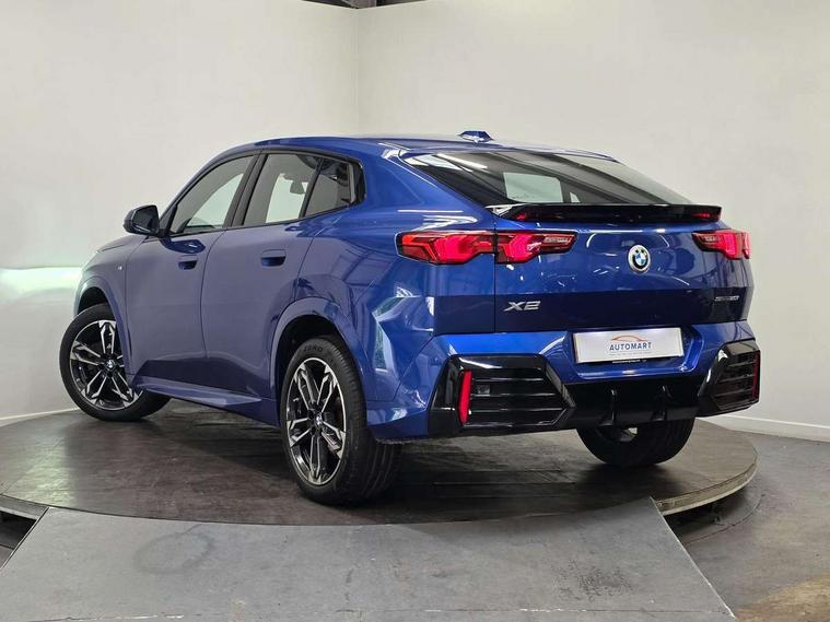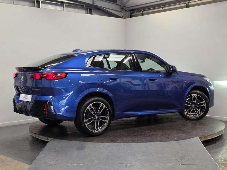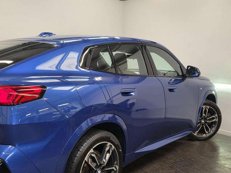Attentiveness assist, Automatic start/stop function, BMW Live Cockpit Plus with 10.25" instrument cluster and 10.7" display, BMW Operating system 9 with BMW Maps, real-time traffic information, in-car experiences, remote services and smartphone integration, BMW Teleservices, Brake pad wear indicator, Condition based service, Connected drive services, Drive off assistant, Electrically opening/closing tailgate with opening/closing with remote control and contactless opening and closing, iDrive controller, Language version English, My modes (Personal / Efficient / Sport), Parking assistant with reversing assistant, active PDC, lateral parking aid and rear view camera, Personal Profile, Servotronic PAS, Dynamic stability control, Larger Fuel Tank, Performance Control, Petrol Particulate Filter, Steptronic transmission with double clutch and gear shift paddles, BMW Personal eSim, DAB Digital radio, BMW radiator grille with mesh grid in black high gloss, radiator grille frame in pearl chrome, Dynamic brake lights, Electric adjustable heated door mirrors, Electric windows - front and rear, with open/close fingertip control, anti-trap facility and comfort closing, Folding door handles integrated flush with surface, Front bumper cover with air inlet trims for air curtains in matt black, Front door exit lights, Heated rear window, High Gloss Black rear spoiler, Home light, Invisible exhaust tailpipe, LED 3rd brake light integrated in rear window frame, LED daytime running lights, LED number plate light, M high gloss shadowline-A/B/C pillar panel/window frame/recess finish strip/window guide bar in front door/mirror frame/cover panel in highgloss black, Matt black roof strips, Model badge X2 on left tailgate, motorisation on right, Rain sensor including auto headlights activation, Rear side wing doors, Rear wiper, Side sill trim panel in black matt grained, Trailer stabilisation logic, Welcome lighting, Window washer nozzle for rear view camera, Windscreen wipers front with heated washer nozzles, 12V - Power sockets with front centre console and luggage compartment, 12V socket in right side trim panel, 2 bag hooks in luggage compartment, 2 cup holders in front centre console, 2 front reading lights, 2 x USB Type C ports for charging in front centre console + 2 x USB Type C ports for charging in rear centre console, 3 rear headrests, 3 seat bench in 2nd row, 3 upper retaining strap clips integrated into rear panels of seat backrests, 40:20:40 split folding rear seats, Ambient interior lighting, Bottle trays in all doors, Child seat ISOFIX attachment for two outer rear seats and front passenger seat with anchorage points, Driver and front passenger heated seats, Dual zone automatic air conditioning, Front and rear door pockets, Front and rear footwell lights, Front centre console storage compartment, Front/rear adjustable head restraints, Glove compartment, Interior door handle recess light on all doors, Light on right in luggage compartment, M headliner Anthracite, M sport leather steering wheel, Middle centre console storage compartment, One piece parcel shelf opens together with tailgate and removable, Rear armrest in door trim panel, Rear coat hooks, Single front passenger seat, Storage compartment lighting in centre console and storage tray in centre stack, Storage compartment net in left side trim panel, Storage compartment with folding cover under centre console armrest cushion, Storage tray in right side trim panel, Tilt adjustment incl. cargo function of 2nd row of seats, Vanity mirror lights, ABS, Automatic hold function, BMW emergency call, Braking readiness, Child lock for rear electric windows, Cornering brake control (CBC), Crash Sensor - activates hazard/interior lighting + unlocks doors, Driver/Front Passenger airbags, Driver/front passenger side airbags, Dry braking, Dynamic brake control, Electromechanical parking brake, Energy recovery system, First aid kit, Front and rear brake discs, Front centre airbag between driver and front passenger seats, Front passenger airbag deactivation, Head airbags for all 4 outer seats, Integrated brake system, Locking of doors after driving off, PC iBrake PostCrash approach control warning with light braking function, Rear door child safety locks, Three point seat belts in all seats, Tyre pressure monitor, Warning triangle, Alarm system with tilt sensor, monitoring doors, bonnet interior and tailgate, Closing system with central locking, Locking wheel bolts, Luxury instrument panel, Tyre repair kit (including Tyre sealant and 12V Compressor),