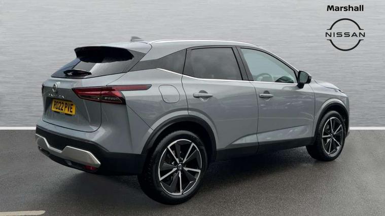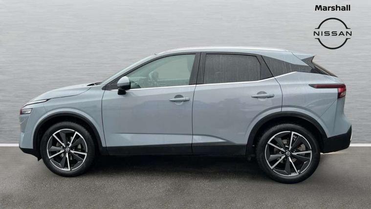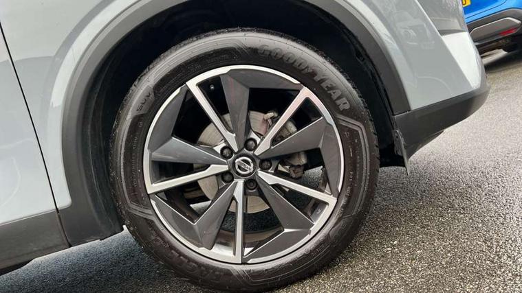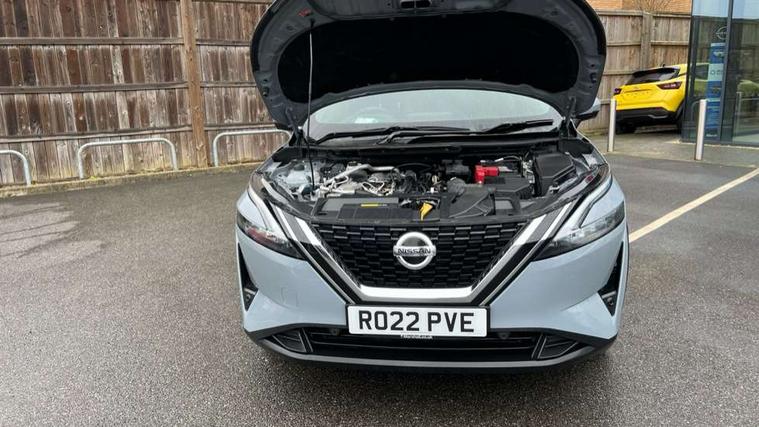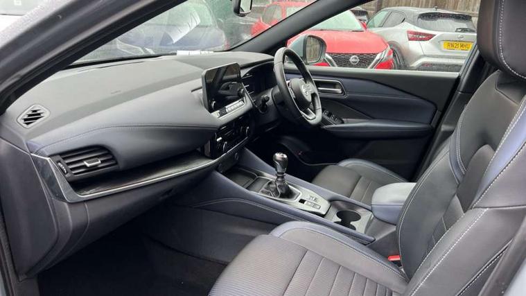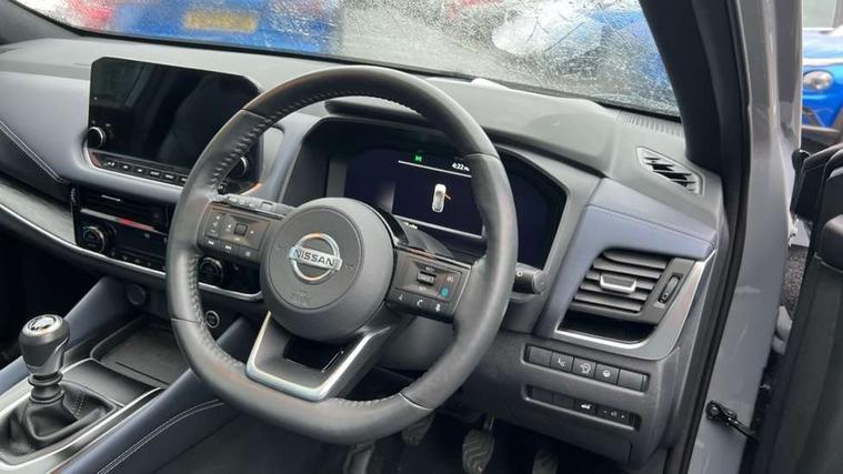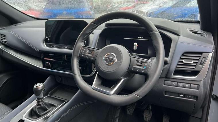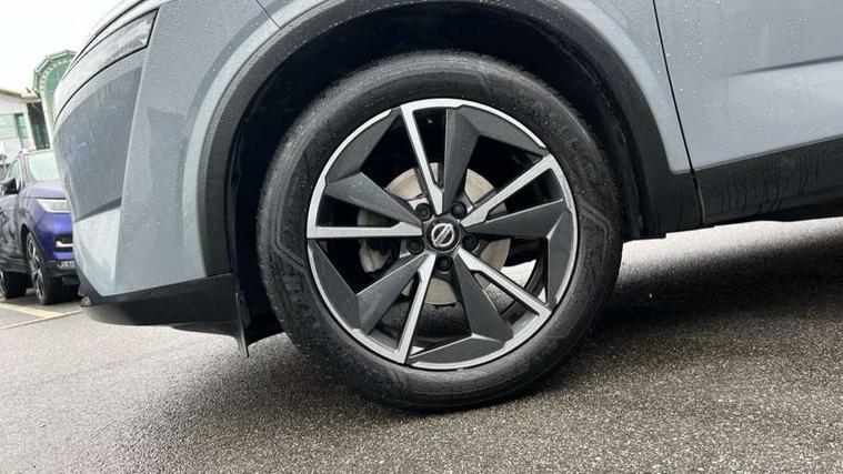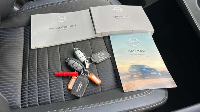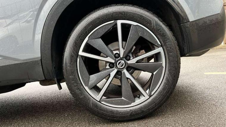 Blind spot warning, Drive modes (sport, normal, eco), Electric speed sensitive power steering, Emergency and breakdown call, Front and rear parking sensors, Full Digital 12.3" TFT Digital Combimeter, Google maps services - search, weather, 3D maps and Google street view, Hands free power tailgate, Idle stop/start system, Intelligent around view monitor, Intelligent Cruise control (ICC), Intelligent driver alert system, Intelligent forward collision warning, Intelligent lane intervention, Lane departure prevention, Lane departure warning system, Moving object detection, Nissan connect 12.3 inch touchscreen infotainment system, Nissan connect navigation, Push button starter, Rear cross traffic alert, Remote control services - door locks, lights, horn and car locator, Telematics - notifications and connectivity services, TomTom live traffic services, Traffic sign recognition with legal speed adjustment, Trip computer, Virtual personal assistant and firmware over the air capability, Wireless Apple CarPlay and wired Android Auto, Wireless charging pad, 6 speakers, AM/FM audio system with DAB, Bluetooth audio streaming, Front USB connections (Type-A and Type-C), Rear USB charging only ports (Type-A and Type-C), Auto dimming rear view mirror, Auto rear wiper when reversing, Automatic hazard signal with emergency stop signal, Body colour mirror caps, Body coloured door handles, Bodyside mouldings, Chrome side window finisher, Door handle with button, Dusk sensor, Electric auto folding door mirrors, Electrically adjustable and heated door mirrors with LED turn indicator, Fixed panoramic glass roof with electric sunshade, Follow me home headlights, Front and rear LED turning signals, Intelligent auto headlights, LED daytime running lights, LED rear lights, One touch front and rear electric windows with remote opening and closing, Partially body coloured bumpers, Privacy glass, Rain sensor, Rear bumper with graphite insert, Rear roof spoiler, Rear side wing doors, Rear styling plate, Roof rails, Shark fin antenna, Splash free rain sensing wipers, Super UV and infrared cut glass, Three blink turn signal, 12v power socket in dashboard and luggage, 2 way electrical driver lumbar adjustment, 2x Rear coat hooks, 3 bench rear seats in 2nd row, 3 rear headrests, 4 folding assist grip, 6 Luggage hooks - 4 on floor, 2 on side, 60/40 split folding rear seat bench, 8 way electric adjustable drivers seat, Ambient lighting around centre console, Ambient lighting in front doors, Centre console storage tray, Chrome interior door handles, Cloth/syntech leather monoform upholstery, Dark black/blueish PVC wrapping, Dark headlining, Driver and front passenger sunvisors with illuminated vanity mirrors, Driver seat back pocket, Dual zone automatic climate control with pollen filter, Front and rear door storage, Front cupholders x 2, Front door with bottle holders, Glovebox with light, Hard trunk cover, Height adjustable front headrests, Leather shift knob, Leather steering wheel, Luggage board system, Luggage space lighting, Manual lumbar support on passenger seat, Manually adjustable passenger (slide recline + lifter), Multifunction steering wheel, Passenger seat back pocket, PVC front centre console and armrest, Rear armrest with 2 cupholders, Rear door bottle holders, Single front passenger seat, Soft PVC kneepad, Steering wheel switches, Tilt/telescopic adjustable steering wheel, Two rear isofix child seat anchorage points with top tether, Welcome light and doors with console tray ambient lighting, Drive assist pack - Qashqai, Heat pack - Qashqai, Tech Pack (Drive Assist + HUD), 3x3 point rear seatbelt pretensioners + load limiters, ABS, ESP, EBD and brake assist, Active brake limited slip, Auto hold function, Child locks on rear doors, Curtain and front side, far side airbags, Driver and passenger airbags, Driver, passenger and 2nd row rear seat belt reminder, Electronic parking brake, Front seatbelt pretensioners + load limiters, Height adjustable front seatbelts, Hill start assist, Intelligent blind spot intervention, Intelligent front emergency braking with pedestrian, cyclist recognition and junction assist, Intelligent rear automatic braking, Tyre pressure monitoring system, Vehicle dynamic control, Capless fuel filler, Engine immobiliser, Nissan i-key, Remote central door locking with deadlocking, Thatcham Cat.1 alarm, Interior instrumental panel C finisher, 19" Alloy wheels, Tyre puncture repair kit,