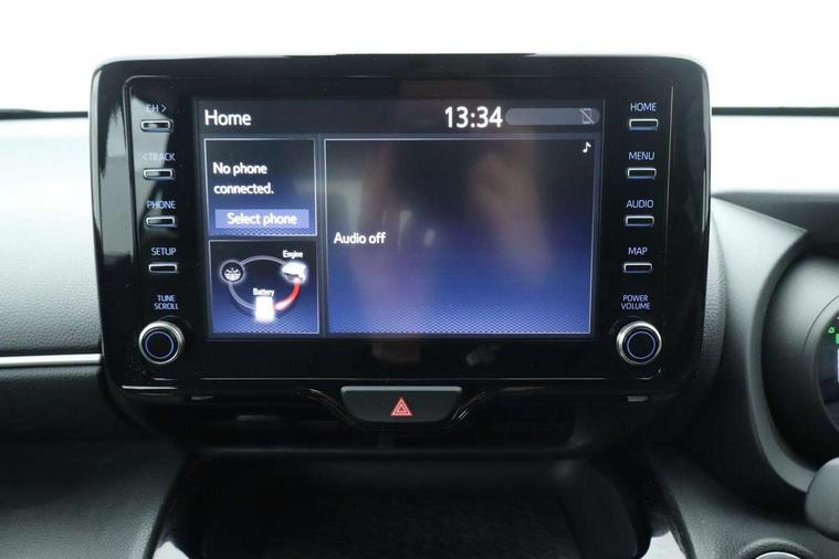 4.2" multi information display, 8" Toyota touch 2 multimedia system with Smartphone integration with Apple CarPlay and Android auto, Adjustable speed limiter, Bluetooth connectivity, Digital speedometer, Driver attention alert system, eCall emergency system, Electric power steering, Full range intelligent adaptive cruise control, Hybrid system indicator, Key reminder warning, Lane trace assist, Multimedia, audio, telephone and voice recognition switches on steering wheel, My T Connected services, Pre-collision system enhanced with emergency steering assist, Reversing camera, Road sign assist - RSA, Steering assisted vehicle stability control, 6 speakers, DAB Digital radio, USB connection, 3rd brake light, Acoustic windscreen glass, Anti-jam protection on power windows, Auto high beam [AHB] with on/off switch, Automatic headlights, Black lower front grille, Black Shark-fin antenna, Black upper front grille, Black wheel arch mouldings, Body colour door handles, Body colour front bumper, Body colour rear bumper, Electric adjustable heated door mirrors, Follow me home headlights, Front and rear electric windows with auto up/down function, Front intermittent wipers, Halogen projector headlights, Headlight cut off reminder, Indicators integrated on door mirrors, Intermittent rear wiper, LED daytime running lights, LED Indicators, Manual headlight levelling, Manually retractable door mirrors, Noise reduction layer on windscreen, Rain sensor, Rear side wing doors, Rear spoiler, Rear window defogger, 12v power outlet - front, 2x Rear coat hooks, 3 seat bench in 2nd row, 3 spoke leather steering wheel, 60/40 split folding rear seat, Adjustable speed limiter switch on steering wheel, Auto air conditioning, Boot light, Central armrest, Driver and front passenger personal lights, Fabric door trim, Fabric upholstery, Front console box, Front cup holders, Front head restraints, Glovebox, Grey roof lining, Height adjustable driver's seat, Height adjustable front passenger seat, ISOFIX child restraint system, Lane departure alert switch on steering control, Leather gearshift, Manual telescopic and tilting steering wheel, Mirror on driver and passenger sun visor, Pollen air filter, Rear head restraints, Single front passenger seat, Soft tonneau cover, 3x3 point rear seat belts, ABS+EBD+Brake assist, Driver and passenger central airbags, Driver and passenger front airbags, Driver and passenger side airbags, Electronic parking brake, Emergency brake light system (EBS), Front seat belt reminder, Hill start assist control (HAC), Passenger airbag on/off switch, Pre-collision system with pedestrian and cyclist detection, Rear door child safety locks, Rear passenger side airbags, Rear seat belt reminder, Traction control, Tyre pressure warning system, Immobiliser, Intrusion alarm, Keyless smart entry with push button start, Power door locks, Power passenger window lock, Remote door lock, 16" 10 spoke alloy wheels, Tyre repair kit,