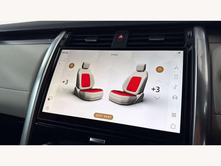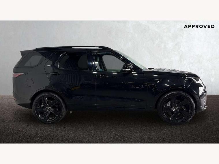 11.4" touchscreen, 3D surround camera, Adaptive cruise control, Android Auto, Apple car play, Blind spot assist, Driver condition monitor, Electric power assisted steering (EPAS), Emergency services call system, Front and rear parking aid, Interactive driver display, Lane keep assist, Power inner tailgate, Power tailgate/boot lid, Push button start, Rear collision monitor, Rear traffic monitor, Remote, Remote boot release, Service interval indicator, Speed proportional steering, Sportshift selector, Stop/start system, Traffic sign recognition with adaptive speed limiter, Trip computer, Wade Sensing, Adaptive dynamics, Dynamic stability control, Electronic air suspension, Front axle open differential, Digital Audio Broadcast radio-DAB, Dynamic volume control, Pivi pro connected, USB/aux input socket, Acoustic laminated windscreen, Animated directional indicators, Auto dimming interior rear view mirror, Auto high beam assist, Automatic headlight levelling, Automatic headlights, Body colour bumpers, Body colour door handles, Centre high mounted stop light, D300 badge, Electric heated/power fold memory door mirrors with approach lights and auto dimming driver side, Electric windows with one touch open/close and anti-trap, Heated rear window, Heated windscreen, LED darkend tail lights, LED headlights with signature DRL, Narvik black Discovery script, Privacy glass, Puddle lights, Rain sensing windscreen wipers, Rear fog lights, Rear side wing doors, Rear wash/wipe, Trailer stability assist, Variable intermittent wiper, 12V power sockets, 12V USB charging socket in loadspace, 18 way heated electric memory driver seats with captains armrest + manual height adjust headrest + 4way power lumbar support, 2 seat bench in 3rd row, 3 seat bench in 2nd row, Central hinged twin lidded storage, Ebony morzine headlining, Electric adjustable steering column, First and second row door bins, Footwell lights, Front and rear 12V with front USB, Front passenger seat isofix location point, In-facia storage, Isofix child seat preparation for front passenger seat, Loadspace cover, Loadspace Hook, Loadspace light, Lockable glovebox, Lower centre console storage, Luggage tie downs in loadspace, Multi function steering wheel, Overhead lighting console, Premium carpet mats, Premium non-leather steering wheel, Rear ISOFIX, Shopping bag hook, Single front passenger seat, Storage glovebox, Sunvisors with illuminated vanity mirrors, Third row storage, Treadplates with metal inserts, Twin front cupholders with cover, USB with 12V socket in centre console, Black exterior pack - Discovery Dynamic SE/HSE, Online pack with data plan - Discovery, 3x3 point rear seatbelts, Anti-lock braking system (ABS), Brake pre-fill technology, Cornering brake control, Curtain airbags, Customer configurable autolock, Driver and passenger airbags, EBD - Electronic brakeforce distribution, Electronic traction control, Emergency brake assist, Emergency braking, ESP, Front side airbags, Gradient acceleration control, Hill descent control, Hill launch assist, Power operated child locks, Rear airbags, Roll stability control, Seat belt reminder, Torque vectoring brake, Tyre pressure monitoring system, Immobiliser, Intrusion sensor, Keyless entry, Locking wheel nuts, Remote central locking, All terrain tyres,