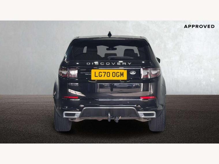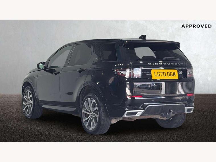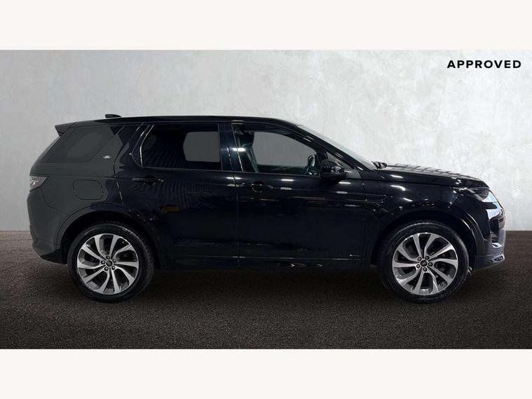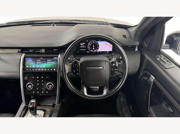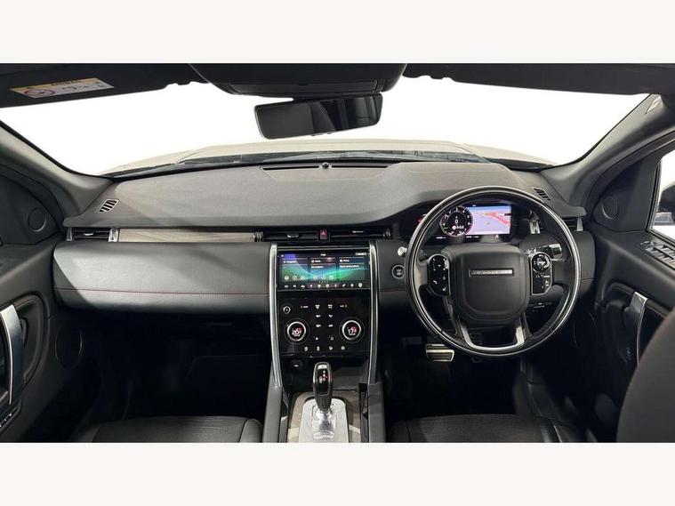 10" touch screen, 3D Surround Camera with 360 View, 180 Rear View, Front Traffic Detection, Forward Vehicle Guidance, Tow Hitch Assist and clear sight Ground View, Adaptive cruise control, Android Auto, Apple CarPlay, Blind spot assist, Clear exit monitor, Driver condition monitor, Front and rear parking aid, InControl remote premium, Interactive driver display, Lane keep assist, PAS, Pivi Pro connected navigation system with upgraded Infotainment, Powered tailgate/boot lid, Rear collision monitor, Rear traffic monitor, Rear view camera, Service interval indicator, Traffic sign recognition with adaptive speed limiter, Trip computer, Wade Sensing, 7 kW onboard charger, All terrain progress control, Coil suspension system, Public charging cable, Terrain Response 2, Bluetooth connectivity including audio streaming, Digital Audio Broadcast radio-DAB, Steering wheel mounted audio controls, Automatic headlight levelling, Automatic headlights, ClearSight interior rear view mirror, Door mirror memory, Electric front/rear windows, Fixed panoramic sunroof with powered sunblind, Illuminated metal front treadplates with R dynamic branding, Power fold, auto-dimming, heated door mirrors with approach lights, Rain sensing windscreen wipers, Rear fog lights, Rear side wing doors, Rear wiper, Bright metal pedals, Centre console with armrest, Front passenger isofix child seat attachment, Perforated full leather steering wheel, Rear headrests, Satin chrome gearshift paddles, Sunvisors with illuminated vanity mirrors, Tilt/reach adjustable steering wheel, Black exterior pack - Discovery sport, Online pack - Discovery sport, 3 point seatbelts on all seats, ABS, Brake hold function, Collision mitigation braking system, Cornering brake control (CBC), Driver/Front Passenger airbags, Drivers knee airbag, Electronic brake force distribution, Electronic parking brake, Emergency brake assist, ESP + traction control, High speed emergency braking, Hill descent control, Hill launch assist, Pedestrian airbag system, Rear seat ISOFIX, Side and curtain airbags for front and 2nd row seats, Trailer stability control, Tyre pressure monitoring system, Battery Back Up System (BBUS) with tilt sensor, Intrusion sensor, Keyless entry, Locking wheel nuts, Centre stack rails in noble chrome,