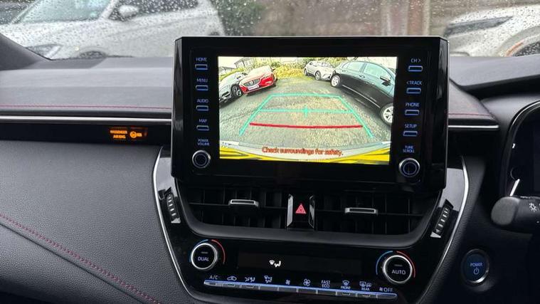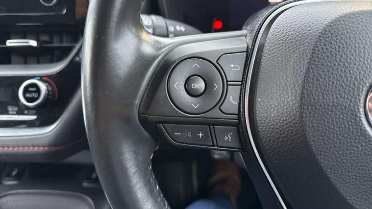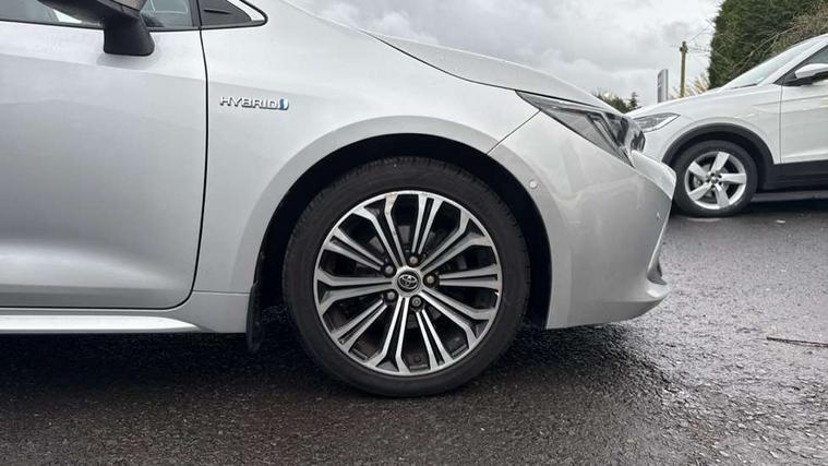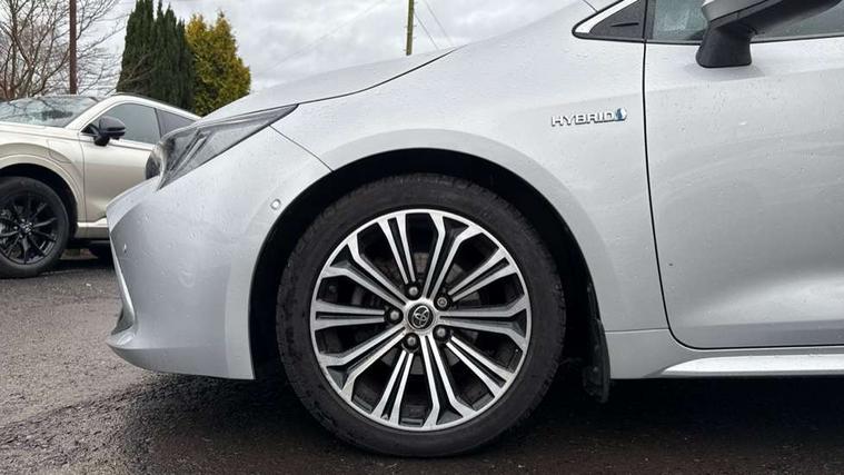 Adaptive cruise control, Bluetooth telephone connectivity, E-call, Electrically assisted power steering, Front parking sensor, Intelligent park assist, Kick sensor for power tailgate, Push button start, Rear parking sensor, Reversing camera, Smartphone integration with Apple CarPlay and Android auto, Voice activation, Vehicle Stability Control (VSC), 2 ring combimeters with 7" colour TFT screen, 6 speakers, 8" multimedia and back monitor, AM/FM radio, DAB Digital radio, Toyota touch 2 with go navigation system, USB/AUX connectivity, Anti-jam protection on power windows, Auto dimming inside rear view mirror, Auto high beam, Auto up and down function on all power windows, Automatic folding mirrors, Automatic headlights, Automatic wipers, Bi-LED headlights with LED lightguide, Body coloured bumpers, LED daytime running lights, LED fog lights, LED rear combi lights with LED lightguide, Power adjustable heated door mirrors, Power front windows, Power rear windows, Privacy glass, Rain sensor, Rear window wiper, Shark fin antenna, 3 rear headrests, Clean air filter, Dual zone automatic air conditioning, Front head restraints, Full leather upholstery, Heated seats, Interior illumination, ISOFIX seat fixing (2 fixings on rear outer seats), Leather steering wheel and gear knob, Pollen filter, Power lumbar support, Sports seats, Tilt/telescopic steering column, Whiplash Injury Lessening (WIL) feature (active headrest) for seats, Parking pack - Corolla, Toyota safety sense 2 - Corolla, 3x3 point rear seatbelts, Anti lock braking system + Electronic brake force distribution, Brake assist function, Electronic parking brake, Front passenger airbag on/off switch, Front seatbelt reminder, HAC-Hill-start Assist Control, Rear seat belt reminder, Seatbelt pretensioners and force limiters, Supplemental restraint system (SRS) airbags - 7 airbags including driver, front passenger, curtain, side and knee airbags, Traction control, Tyre pressure warning system, Alarm/immobiliser, Smart entry, 17" alloy wheels, Tyre repair kit,