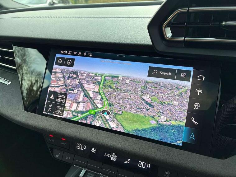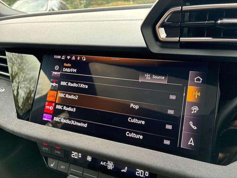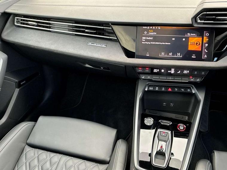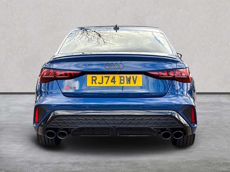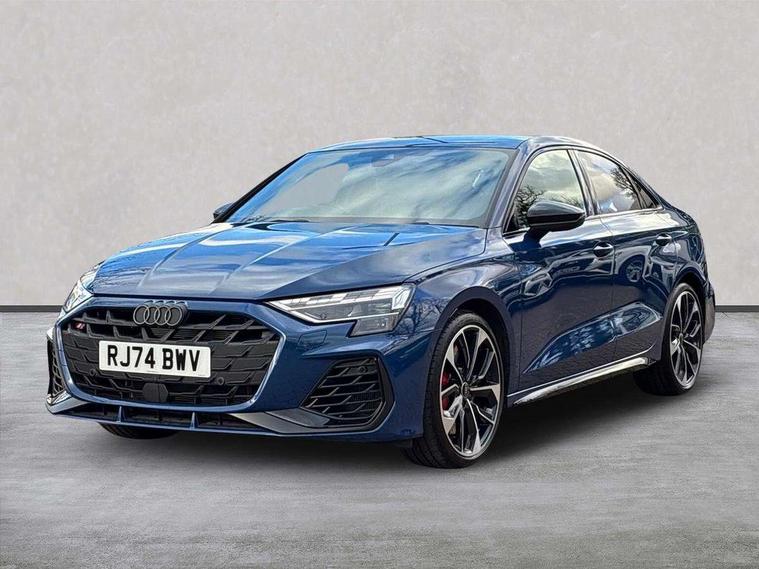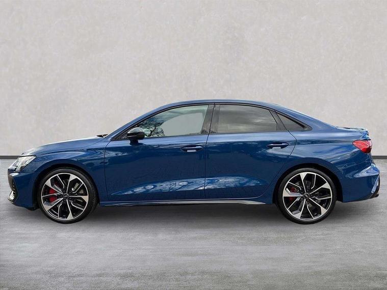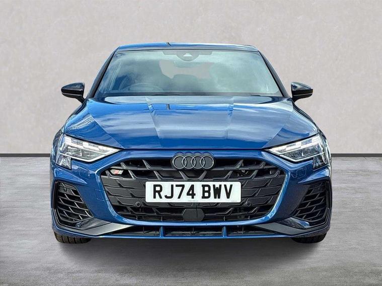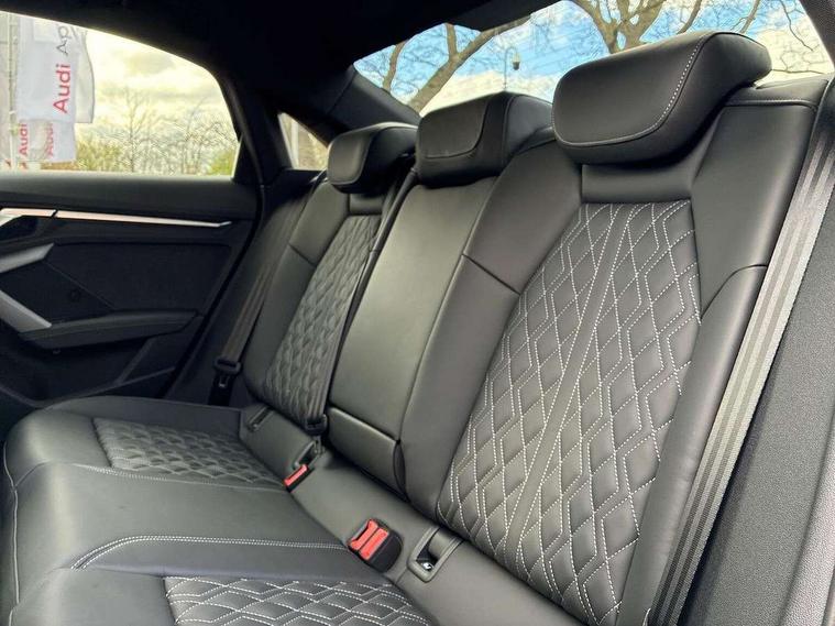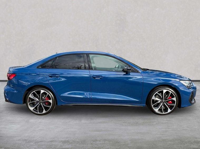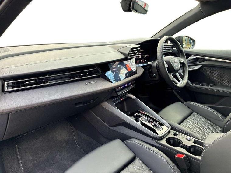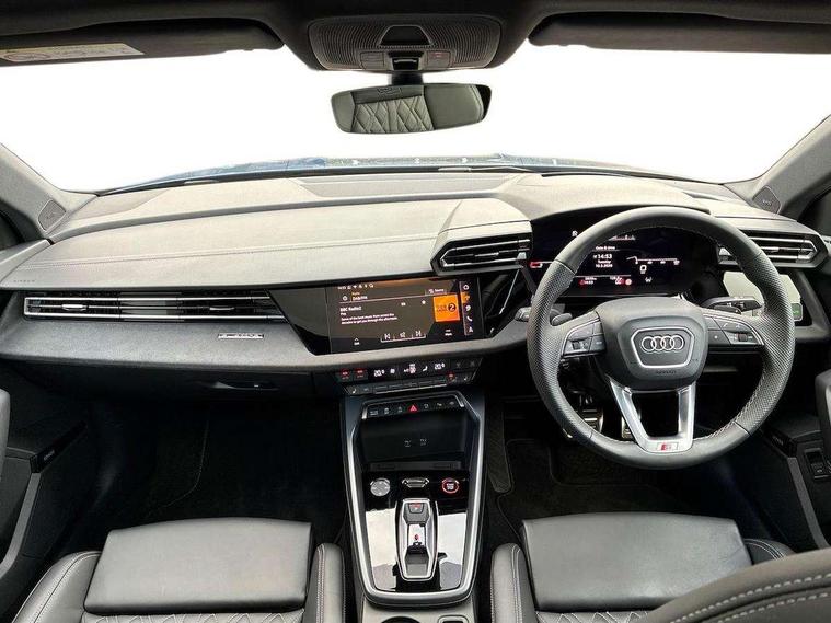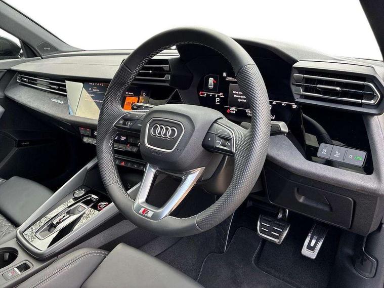 Adjustable speed limiter, Audi drive select, Audi smartphone interface with app store includes wireless Apple carplay, Android auto and Amazon alexa integration, Audi virtual cockpit plus - 12.3" full HD resolution dynamic digital instrument cluster, Automatic start/stop system with recuperation, Bluetooth interface, Camera based traffic sign recognition, Collision avoidance assistant, Distraction and Fatigue warning, e-Call (emergency call), Electromechanical power speed sensitive steering, Lane departure warning system, MMI Navigation Plus with high resolution 10.1" colour touch screen display, Park Assist with parking system Plus, Progressive steering, Service indicator, Trip computer, Voice control system with natural language interaction, S sport suspension with spring damper adjustment and lowering by 15mm, Audi Phonebox light with wireless charging, DAB Digital radio, USB ports with charging function in the rear, Anthracite grey Audi rings (front and rear), Audi Beam uses LEDs to project the rhombus S logo onto the ground as you exit your S3, Auto dimming frameless rear view mirror, Black accents front and rear bumpers including air inlets, Black accents in front grille and frame, Black accents window trims strips, Electrically adjustable/heated/folding/auto dimming door mirrors with integrated LED indications + kerb view function for passenger side, Exterior model badging, Front electric windows, Headlight washers, Heat insulating glass windscreen, Illuminated door sills with aluminium inserts at the front with S logo, LED 3rd brake light, LED daytime running lights, LED headlights with LED rear lights and dynamic rear indicators, Light and rain sensors, Privacy glass - dark tinted rear window, rear door and side windows, Rear boot, Rear electric windows, Rear side wing doors, S grille, S3 front bumper with S specific air intake grilles, 12V socket and storage compartment in front centre console, 3 seat bench in 2nd row, 3 spoke flat bottomed leather multifunction sport steering wheel with gear shift paddles, 3-zone deluxe automatic air conditioning, 4 way electrically adjustable lumbar support for driver and front passenger, 40/20/40 split folding rear seat bench, Black cloth headlining, Fine Nappa leather upholstery with front sports seats S embossed logo, Front and rear centre armrest in artificial leather, Front and rear headrests, Front/rear floor mats, Heated front seats, Manual boot compartment lid, Manually adjustable front seats, Rear cup holders, S badging on the steering wheel, Seat side bolsters, Single front passenger seat, Stainless steel pedals and front footrest in black, Aluminium interior elements pack - A3, Extended ambient lighting package Pro - S3 Black edition, Storage package - A3 Saloon, Technology package - A3, 3x3 point rear seat belts, Driver and front passenger airbag with passenger airbag deactivation, Electronic Stabilisation Control (ESC) including ABS, ASR and EDL, First aid kit with warning triangle and 2 safety vests, Front side airbags with head airbags and interaction airbag, Hill hold assist, Pre-sense front with pedestrian and cyclist detection, Seatbelt monitoring, Tyre pressure loss indicator, Anti theft alarm, Anti-theft wheel bolts, Electronically operated child locks, Immobiliser, Remote central locking with safelock, Inlays in black dynamica microfibre, Tyre repair kit,