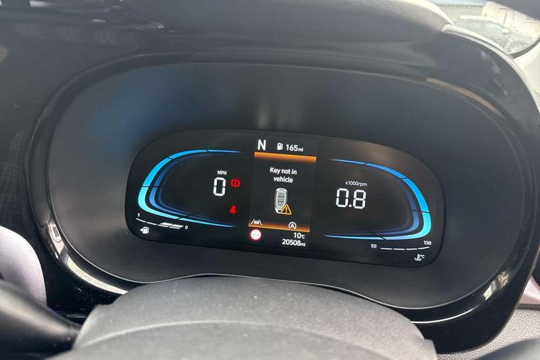 Apple car play/Android Auto, Bluelink mobile remote connectivity, Bluetooth connectivity with voice recognition, Cruise control, Driver attention alert system, eCall emergency call system, Forward Collision-Avoidance Assist (FCA) - Pedestrian/Cyclist, Front USB-C charging and USB-A data, Full-width 4.2" LCD instrument cluster, Intelligent speed limit assist, Lane departure warning system with lane keep assist - LKAS, Lane follow assist, PAS, Rear parking sensors, Rear view camera with guidelines, Roadside assistance, Start/Stop function, Tailgate, Trip computer, Wireless charging pad, 2 front/2 rear speakers, Rear USB-C device charger, Steering wheel audio, phone and cruise controls, 1 speed non intermittent rear windscreen wiper, Black finish on B pillars, Body colour door handles, Body coloured bumpers, Body coloured door mirrors, Electric folding door mirrors, Electric front windows, Electric rear windows, Electrically adjustable and heated door mirrors, Flat metal emblem, Front fog lights, Front grille in glossy black, Front intermittent wipers, Halogen bi-function headlights, Headlights inner with Black Blade design, Heated rear window, High beam assist, Indicator light on door mirrors, LED DRLs diamond mesh design, Privacy glass - Rear windows and tailgate, Rear roof spoiler with integrated LED brake light, Rear side wing doors, 12v power outlet - front, 3 seat bench in 2nd row, 60/40 split folding flat to floor rear seats, Air conditioning, Auto light control, Bottle holders in front/rear doors + front centre console, Cabin and luggage compartment interior lighting, Cloth upholstery, Driver + passenger vanity mirrors, Driver's seat height adjustment, Driver/passenger sunvisors with ticket holders, Floor mats, Front door pockets, Front Head Restraints - Vertical and Horizontal Adjustment, Front LED blue mood lighting, Glove compartment, Heated front seats, Heated steering wheel, Height adjustable steering column, Isofix child seat preparation, Leather multifunction steering wheel, Rear door pockets, Single front passenger seat, Vertical adjustment rear head restraints, 3x3 point rear seatbelts, Airbags - front, front side and curtain airbags, Anti-lock brake system (ABS), Autonomous emergency braking (AEB) with forward collision warning system, Brake assist function, Childproof rear door locks, Electronic stability control, Front and rear seatbelt reminder, Front seatbelt pretensioners, Hill start assist control (HAC), Passenger airbag deactivate switch, Traction control, Tyre pressure monitoring system, Immobiliser, Perimeter alarm, Rear occupant alert, Remote central locking, Second remote key, Smart key with motion sensor, Speed sensitive auto door locking, 16" alloy wheels, Tyre repair kit,