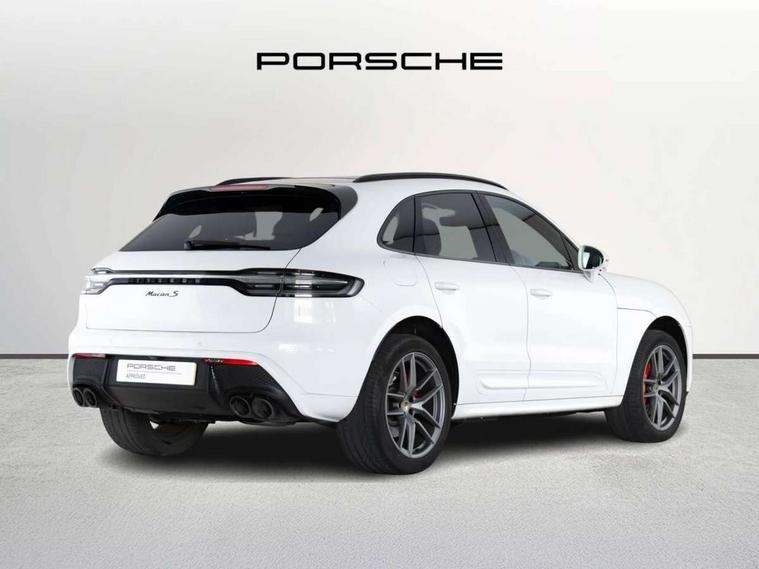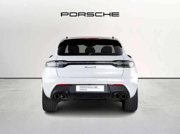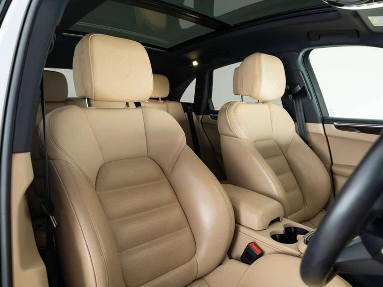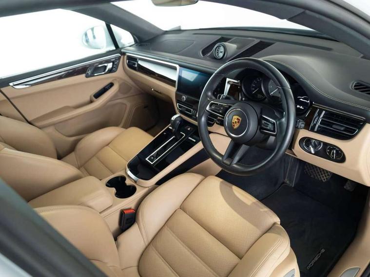 Analogue clock on dashboard, Automatic start/stop system, Automatic tailgate, Digital boost pressure gauge on colour display of instrument cluster, eCall emergency call system, Instrument cluster with high resolution 4.8-inch TFT display, gear indicator for PDK, service interval display, external temperature indicator, fuel gauge, Off-road button, On board computer, Porsche Communication Management (PCM) including online navigation module, mobile phone preparation, audio interfaces and voice control system, Sports button in centre console, 7-Speed Porsche Doppelkupplung (PDK) with automatic mode and manual controls (gearshift paddles) on steering wheel, Direct fuel injection (DFI), Gasoline particulate filter, Steel spring suspension, VarioCam Plus variable valve timing and switchable valve lift, 2 USB sockets in rear centre console, Apple CarPlay with Siri voice recognition, Connect Plus including online navigation, LTE communication module with SIM card reader, wireless internet access, Porsche Car Connect services, DAB Digital radio, Porsche Vehicle Traking System Plus (PVTS Plus), Smartphone compartment with wireless charging, Two USB C charging and connectivity ports in the front centre console storage compartment, Active radiator grille shutters, Automatic headlight activation including welcome home lighting, Bumper system with high strength cross members and two deformation elements + One threaded fixture point for towing eye contained in onboard tool kit, Dynamic cornering lights, speed-sensitive headlight and dynamic range control, adverse weather function, four-point LED daytime running lights, Electric front and rear windows with remote closing function + anti trap + one touch, Electrically folding and heated exterior mirrors, Front light modules with LED position lights and direction indicators, Front windscreen wipers with two speeds, intermittent wipe and rain sensor, Front with integrated cooling air intakes, Fully galvanised body, Heated rear window with automatic switch off, High level 3rd LED brake light integrated into roof spoiler, Loading edge protection in aluminium, Rear side wing doors, Rear window wiper with intermittent function and washer jet, Roof spoiler in high gloss black, Towbar preparation, 3 adjustable rear headrests, 3 rear seats, 4 way adjustable front head restraints, 40:20:40 split folding rear bench seat, Cloth hook b-pillar, Fold up centre console armrest with fore/aft adjustment, Front and rear bottle holders in door panels, Front passenger seat, Glove compartment, Isofix fastening system for child seats on outer rear seats, Luggage compartment cover, Particle/pollen filter with active carbon filter, Rear armrest with 2 cupholders, Storage bin in centre console, Storage compartment in side of luggage compartment and storage compartment in spare wheel recess, Storage pocket in front and rear doors, Two integrated cup holders in front with variable diameter, Two socket 12V power outlets in front console and luggage compartment, Uncovered storage compartment in centre console, Ambient comfort lighting pack - Macan, Lower exterior trim package in black - Macan, 3-point automatic seatbelts with front and outer rear seats pretensioners and force limiter + manually height adjustable seatbelt + reminder warning, 6-piston aluminium monobloc fixed caliper brakes at front, internally vented brake discs, Auto hold function, Brake discs with 360 mm diameter at front and 330 mm at rear, Child locks on rear doors, Curtain airbags along entire roof frame and side windows from A pillar to the C pillar, Electronic parking brake, Front passenger airbag deactivation facility for installation of child seats indicator in overhead console, Front side airbags integrated into seat, Full size driver and passenger airbags, Multi-Collision braking, Porsche hill control (PHC), PTM(Porsche Traction Management) and All-wheel drive with map-controlled multi-plate clutch, Roll over sensor for curtain airbag and seatbelt pretensioners, Side impact protection in doors, Tyre pressure monitoring system, Vehicle stability system, Porsche stability management (PSM) including ABS, ASR, ABD, MSR and trailer stability management, Vented discs brake with combination floating calipers at rear, Alarm system with ultrasonic interior surveillance, Dashcam prep, Engine immobiliser with key transponder, Remote control central locking, Accent trims with silver coloured finish, Tyre repair kit,