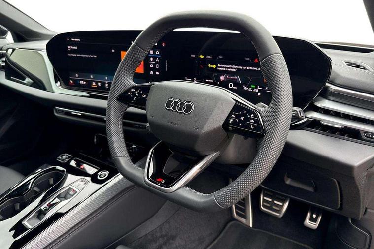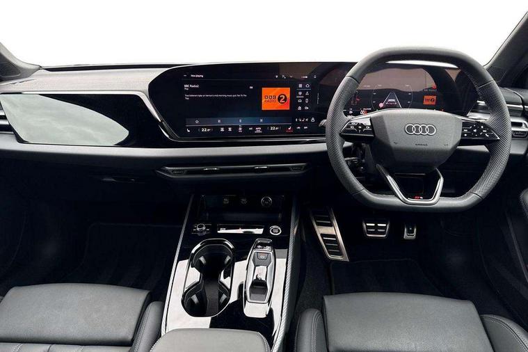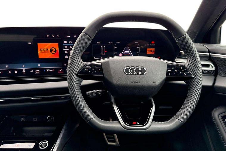 Adaptive cruise control, Advanced driver attention and fatigue montior, Audi application store, Audi assistant, Audi connect emergency call and service, Audi drive select, Audi smartphone interface, Audi virtual cockpit plus with 11.9" OLED colour display, Automatic start/stop system with coasting functionality, Camera based traffic sign recognition, Intersection assist, Lane departure warning, MMI navigation plus with high resolution 14.5" OLED touchscreen colour display, Park assist plus, Parking system plus with 360 display, Progressive steering with servotronic, Rear view camera, Swerve assist and turn assist, Traffic sign based speed limiter, Sports suspension lowered by 20mm, 2 USB-C ports in both the front and rear, Audi sound system impressive sound with 10 loudspeakers including centre speaker and subwoofer, 6-channel amplifier with a total output of 180 watts, DAB digital radio reception, Smartphone compartment with wireless charging, Aluminium roof rails, Aluminium window trims, Auto dimming rear view mirror, Body colour door mirrors, Door mirrors - electrically adjustable, heated, folding and auto dimming on both sides, Front and rear electric windows, Front door sill trims with aluminium inlays, illuminated with 'S' logo, High beam assist, LED headlights Plus incl. digital daytime running lights, turning light, all-weather light, motorway light, manouevring light and intersection light, LED rear lights pro incl. dynamic rear indicators and illuminated light strip with animated coming and leaving home function, LED third brake light, Privacy glass, Rear and side windows with heat insulating glass, Rear side wing doors, Rear wash/wipe, S Line badges on the front wings, S line bumpers, radiator grille and diffuser in phantom black and diffuser insert in matt anthracite, White rhombus logo projection light in exterior mirrors, Windscreen with acoustic glazing, 3 rear headrests, 3 seat rear bench, 3 spoke leather steering wheel with multi-function buttons with touch control, flattened on top and bottom, with S badging and contrast stitching, 3-zone automatic climate control, 40:20:40 split folding rear seat bench with centre armrest and cup holders, Comfort front centre armrest, Front and rear floor mats, Front seats with manual adjustment for position and 4-way electric lumbar support, Front sport seats with integrated headrest and S embossed logo, Headlining in black cloth, Heated front seats, i-Size child seat mounting on the front passenger side and outer rear seats, i-Size and top tether on the outer rear seats, Luggage compartment lid, electrically opening and closing, Manual steering column height and depth adjustment, Single front passenger seat, Stainless steel pedals and footrest, Steering wheel grips in perforated leather and shift paddles, Ambient lighting package plus - A5, 3x3 point rear seat belts, Driver airbag, Electric child safety locks, First aid kit with warning triangle and vests, Front emergency brake assist, Front passenger airbag, Front passenger airbag deactivation, Front side airbags with head airbag system and front interaction airbag, Hill hold assist, Seat belt monitoring with rear seat occupant reminder, Tyre pressure loss indicator, Anti theft alarm, Anti-theft wheel bolts, Keyless Go, Accent surfaces and control buttons in gloss black, Black dashboard with contrast stitching, Inlays in matt brushed aluminium with linear embossing, anthracite, Softwrap in leatherette with contrast stitching, Upper and lower interior elements in leatherette, Tyre repair kit,
