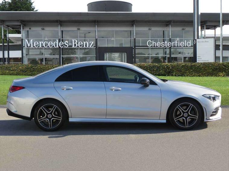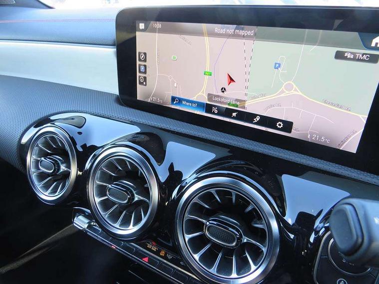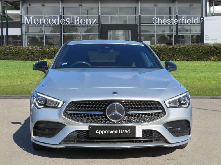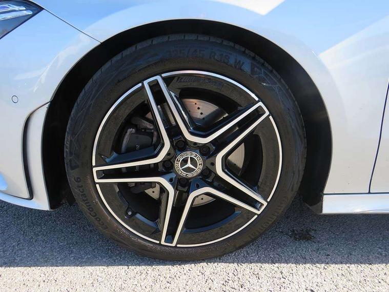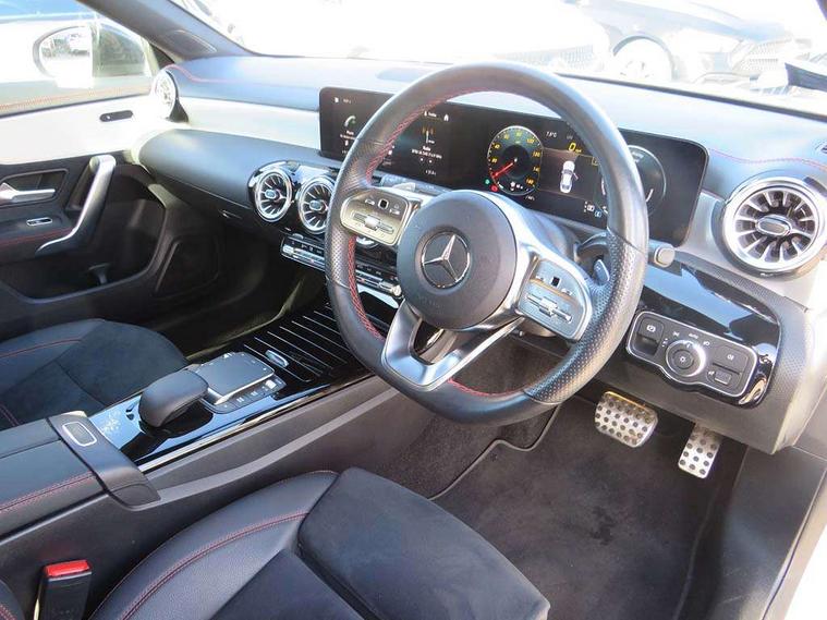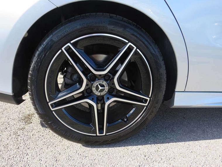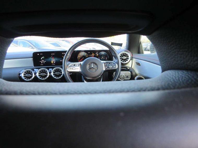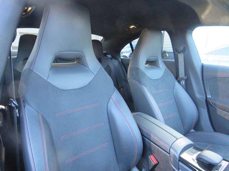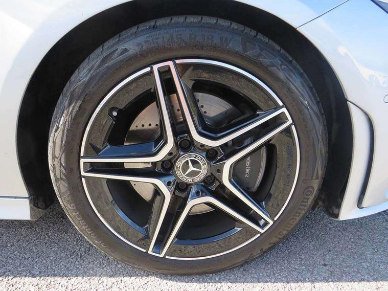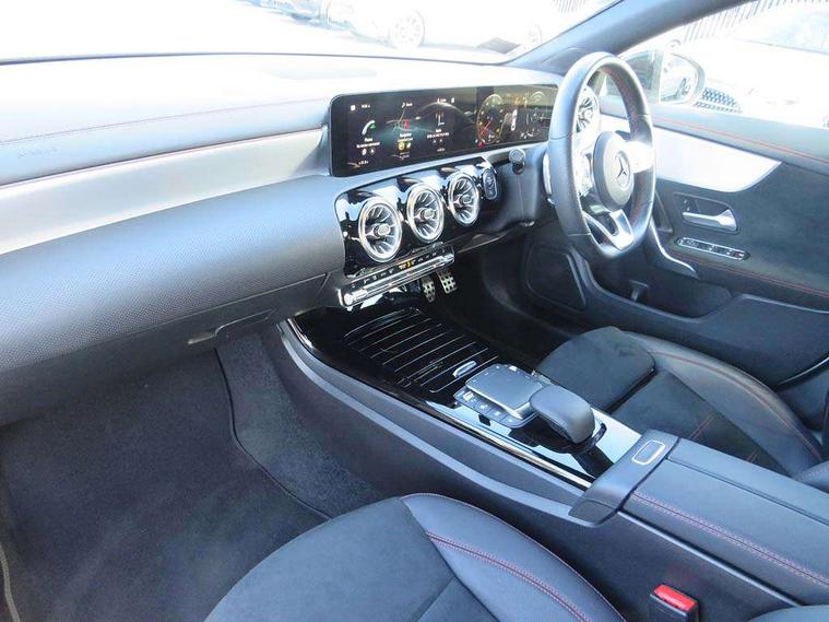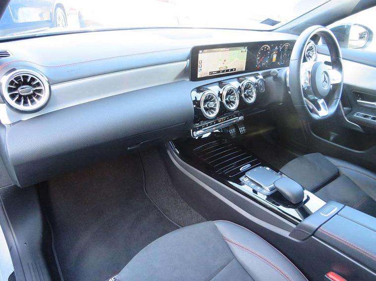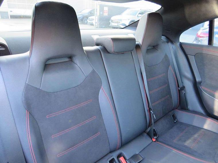 10.25 inch Instrument display with digital cockpit, 10.25 inch touchscreen central media display, Active lane keeping assist, Attention assist - Monitors steering behaviour and long journey fatigue, Bluetooth connection, Car wash mode, Cruise control with limiter, Direct steer system with speed sensitive power steering, DYNAMIC SELECT with a choice of driving modes (ECO, Comfort, Sport and Individual), ECO start/stop function, Fluid level warning indicator for fuel, oil, coolant and washer fluid, Hard-disk navigation, Hey Mercedes Voice activation, Lamp failure indicator, Mercedes me connect including emergency call system, accident recovery, breakdown management and maintenance, Mercedes me remote services, Outside temperature gauge, Owners manual and service booklet in English, Pre-installation of private car share, Preinstallation for Mercedes Benz link, Radio aerial integrated into front and rear windshields, Service indicator (ASSYST), Smartphone integration with Apple CarPlay and Android auto, Speed limit assist, Trip computer in multifunction display with current consumption indicator, Lowered comfort suspension, Rear axle multi-link, DAB digital radio tuner, MBUX multimedia system, Mercedes Benz sound system (100 W) with 6 speakers, USB (type C) ports (2) in stowage compartment and 1 in front of centre console, Adaptive brake lights, AMG body styling with AMG front apron and rear apron and visible exhaust tailpipe in chrome trim elements, AMG bodystyling side skirts, Body colour bumpers, Body colour door handles, Chrome beltline strips, Diamond radiator grille pins in chrome, Electric windows, Electrically adjustable and heated door mirrors with integrated LED indicators, Exhaust system with 2 Visible tailpipe trim elements and rear apron with trim in chrome, Headlamp assist automatic headlamp activation, Heated glass rear windscreen + timer control, High level LED third brake light, Interior mirror with black reading lamps and frameless, LED high performance headlamps with integrated LED daytime running lights, LED tail lamp, Privacy glass with dark tinting on rear side windows and rear window, Rain sensing windscreen wipers with two sensitivity settings, Rear boot, Rear fog lamp, Rear side wing doors, Variable front intermittent wipers, Window line trim strip in chrome, 3 seat bench in 2nd row, 3 spoke flattened bottom nappa leather multifunction steering wheel with perforated leather in grip area, 40:20:40 split folding rear seats with backrest, Air conditioning - Two zone thermotronic luxury automatic climate control with display, Air vents with surround in silver chrome, Artico man-made leather upholstery, Automatic child seat recognition sensor, Black roof lining, Brushed stainless steel sports pedals with rubber studs, Floor mats with stitched AMG lettering, Front centre armrest with stowage, Front door sills with Mercedes Benz lettering, Galvanished gear shift paddles on steering wheel, Heated front seats, Illuminated glove compartment stowage, Interior lighting - 64 colour Ambient lighting, Luggage net on driver/front passenger seat backrest, Manually adjustable front seats, Manually height and reach adjustable steering column, Rear head restraints, Single front passenger seat, Sport seats with fixed head restraints, Stowage compartment in centre console with retractable cover, Sunvisors with illuminated vanity mirrors, Touchpad on center console, Twin front cupholders, Two outer rear seat isofix and top tether child seat fixing points, Light and sight pack - CLA, Mirror pack - CLA, Night package - CLA, Parking package - CLA, Seat comfort pack - CLA, Active bonnet pedestrain safety measure which detects an impact and raises bonnet by 65mm, Active brake assist includes forward collision warning system with autonomous braking, Adaptive brake assist with hold function and hill start assist, Anti lock braking system (ABS) with brake assist, Black seat belts, Bonnet with power domes, Brake pad wear warning indicator, Childproof locks manually operated for rear doors and electrically operated for rear power windows, Crash responsive emergency lighting, Driver and front passenger head and sidebags, Driver and front passenger windowbags, Drivers knee airbag, Dual stage driver and front passenger airbags, Electric parking brake, Electronic stability programme with acceleration skid control, ESP curve dynamic assist, Front and rear seatbelt reminder, Front passenger seat occupancy sensor, Three point rear seat belts, Tyre pressure monitoring system, Warning triangle and first aid kit, Guard 360 degree guard vehicle protection system with immobiliser and interior protection, Keyless Go starting function, Remote central locking and crash sensor with emergency opening function, Light aluminium with longitudinal grain interior trim, 18" AMG 5 twin spoke light alloy wheels painted in black with high sheen finish, Summer tyres, Tirefit tyre sealant kit,