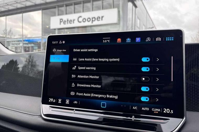 Adaptive cruise control ACC including speed limiter, Advanced driver attention and drowsiness monitor, App-Connect incl. App-Connect Wireless for Apple CarPlay and Android Auto, Bluetooth phone integration system, Digital Cockpit Pro - 10.25" high resolution dash display screen with customisable menus and information, Dynamic road sign display, E-Sim card for online connectivity, eCall emergency call service, eCall emergency call system, Inductive smartphone charging without external antenna connection, Lane change system, Side assist, Rear traffic alert and Exit warning system, Lane keeping system Lane Assist, Multifunction front facing camera, Navigation system, Oncoming vehicle braking when turning including swerve support, Park assistance plus with front and rear parking sensors, Power assisted steering with speed sensitive, Rear view camera, Rev counter, Service interval indicator, Speed limit display, Start/stop system with regenerative braking, Tailgate/trunk lid unlocking from outside, Trip computer, Voice control and enhancer, Warning signal and warning light for front and rear seatbelts not fastened, Wireless App-Connect, Front wheel drive, 12.9" infotainment display, 8 speakers, DAB radio, Diversity antenna for FM reception, Ambient lighting with logo projection, Auto dimming interior rear view mirror, Automatic headlight control system, Black roof rails, Body colour door handles, Body coloured bumpers, air intake with chrome trim, Body coloured door mirrors with integrated indicators, Comfort bumpers, Coming/leaving home lighting function, Front and rear electric windows, Headlight range control, Heat insulating darkened glass in side and rear windows, High Beam Assist, automatic sensing for switching between dipped and main beam, High level 3rd brake light, Illuminated door handle recesses, Laminated safety glass windshield, heat and sound insulating, LED headlamps, LED rear combination lamps, LED separate daytime running light, Rear fog light on one side, reversing light on both sides, Rear side wing doors, Rear wiper, Remote electrically foldable door mirrors, puddle lights and reverse activated passenger's door mirror, 10 colour interior ambient lighting, 12V outlet in center console rear and in luggage compartment, 12V socket in centre console, 2 USB-C ports in the front, 2 USB-C charging sockets on the centre console in rear, charging capacity up to 45 W, 3 bench rear seats in 2nd row, 3 rear headrests, Air Care Climatronic 3 zone automatic climate control with enhanced air filter and controls in the rear, Carpet mats, front and rear, Centre console with illuminated storage compartment with sliding cover and two drinks holders, Front centre armrest, Front comfort seats, Height adjustable front seats, ISOFIX anchors for child seats on outer rear seats and front passenger seat. Compatible with i-Size, Leather wrapped multifunction steering wheel with paddle shift, Mechanical rear seat release, Power adjustable lumbar support in front, Rear bench seat asymetrically split folding, longitudinally movable and folding with load-through hatch and center armrest, Safety optimised front head restraints, Single front passenger seat, Sun visors with illuminated vanity mirrors, Variable luggage compartment floor, 3 point seat belt for centre rear seats, 3 Point seat belts in front with pretensioners, 3 point seatbelts in outer rear with ECE label, Autonomous emergency braking front assist with pedestrian and cyclist monitoring, Driver/Front Passenger airbags, Electronic parking brake with auto hold, Front disc brakes, Front passenger airbag deactivation, Manual rear child locks, Rear disc brakes, Two tone horn, Tyre pressure loss indicator, Warning triangle, Anti theft alarm system with interior monitoring, backup horn and towing protection, Anti theft wheel bolts, Central locking system Keyless Go, Tool kit for tyre mobility set,