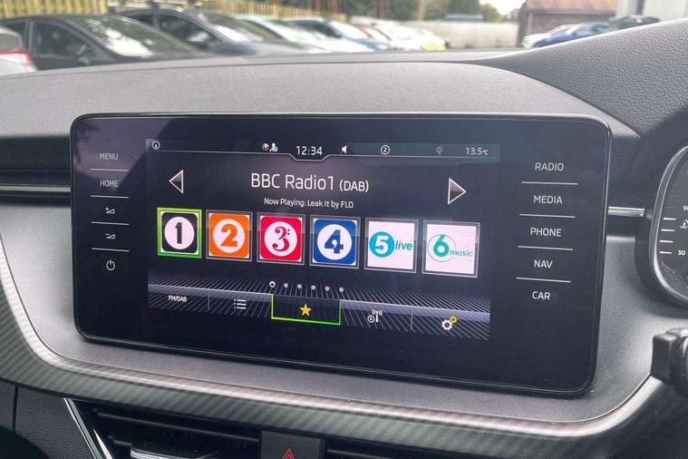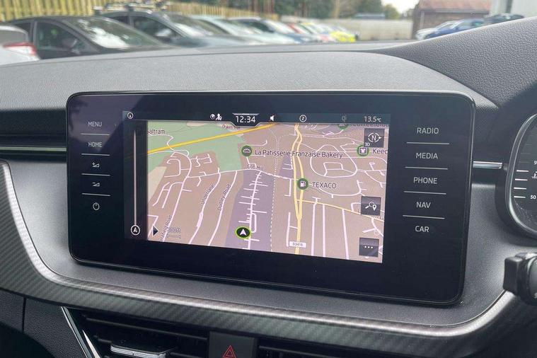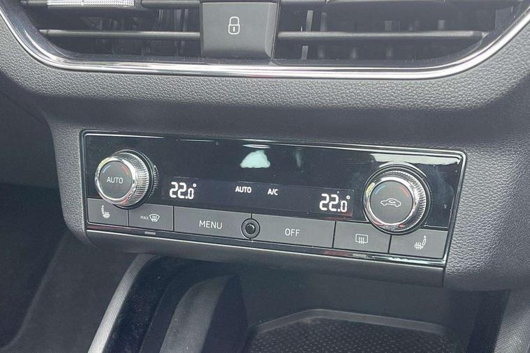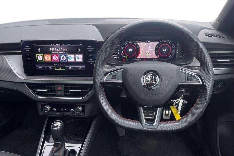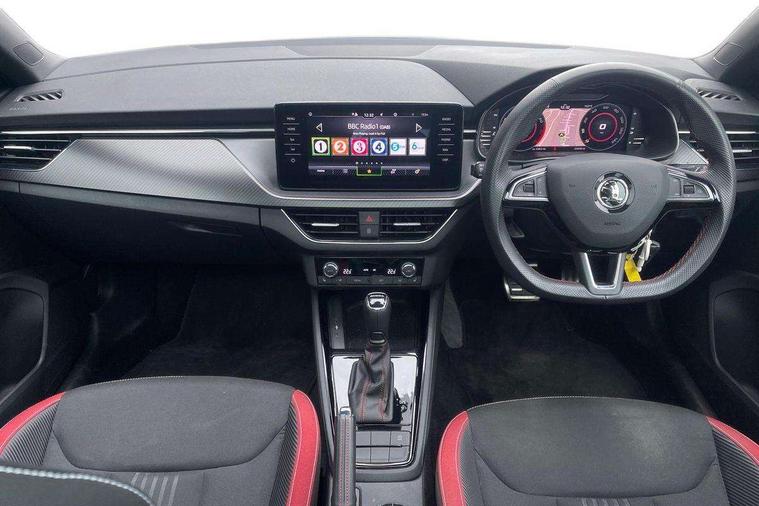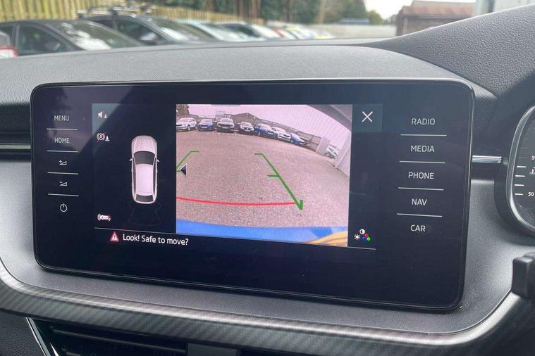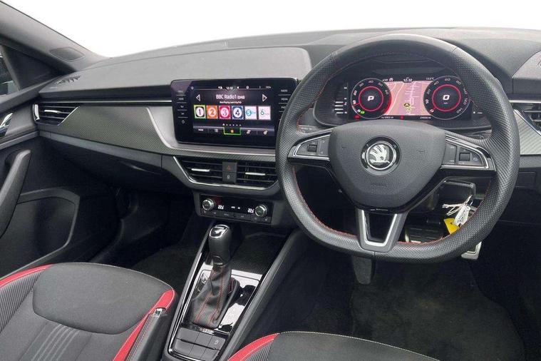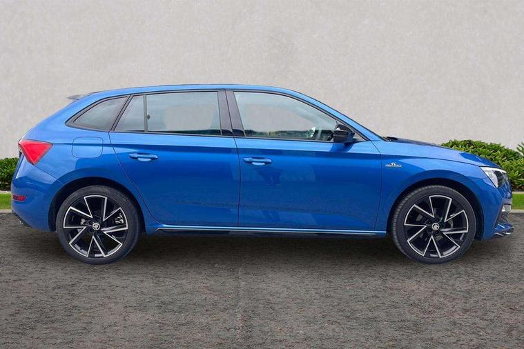 Amundsen satellite navigation with 9.2" glass colour touchscreen with virtual cockpit, web radio and traffic sign recognition, Bluetooth system, Easy light assist, Front assist system, Lane assist, Monte carlo instrument cluster, PAS, Rain and light assist with auto dimming rear view mirror, Speed limiter, 2 USB - C ports, 8 loudspeakers, DAB Digital radio, Black door mirrors, Black radiator grille, Black rear diffuser, Black roof spoiler, Black sill cover, Body colour door handles, Boot lettering in black, Electric folding door mirrors, Electrically adjustable and heated door mirrors, Front and rear electric windows, Front fog lights, Front sport bumper, LED daytime running lights, Monte carlo plaque, Privacy glass, Skoda across tailgate in black, Tinted windows, 12V Accessory socket in centre console, Aluminium pedals, Black roof lining, Chrome inner door handles, Cloth upholstery, Decor strip on dashboard and door panel, Door sills with lettering, Front centre armrest with stitching, Front gesture control, Front head restraints, Front sport seats, Glasses storage in roof liner, Height adjustable passenger seat, ISOFIX for rear passenger seat, Leather gearknob and handbrake lever, Manual lumbar support for front seats, Reading lights for driver and front passenger, Sun visor with make up mirror for front passenger, Textile floor mats, Third rear headrest, Umbrella, Exterior design pack - Scala, 3x3 point rear seatbelts, Curtain airbags, Emergency call and proactive services, Front head and side airbags, Hill hold control, One tone horn, Passenger airbag switch off function, Seat belt reminder for all seats, Alarm, Anti-theft wheel bolts, Remote central locking with 2 remote folding keys, SAFE function for remote central locking, Chrome air vent surrounds, 18" Vega alloy wheels in black, Temporary space saver wheel,