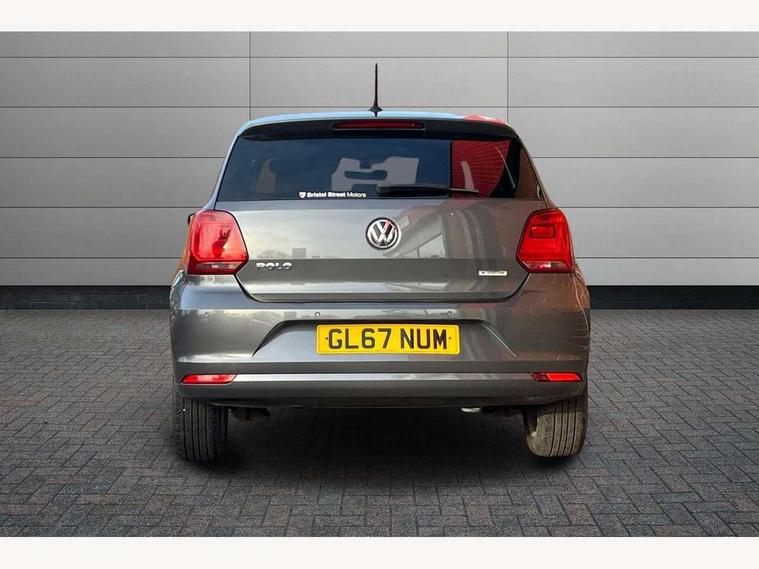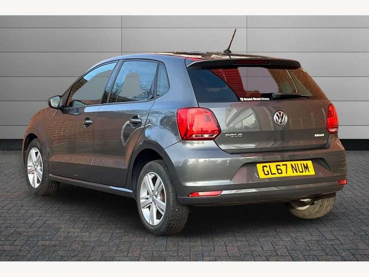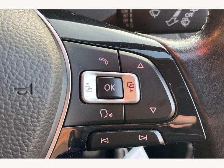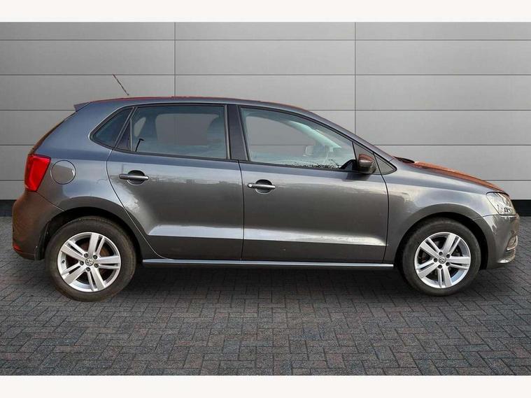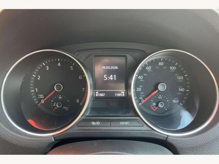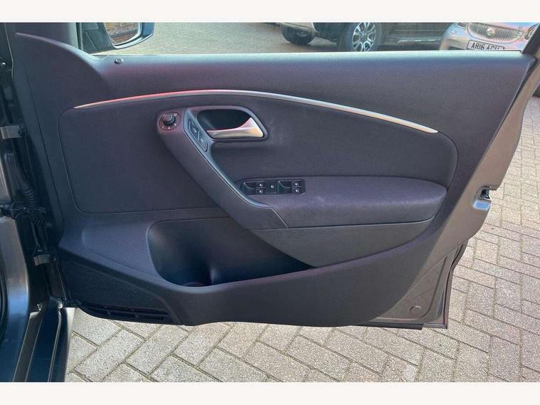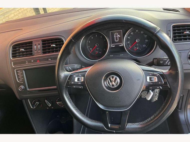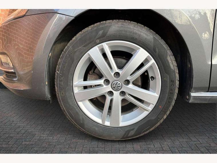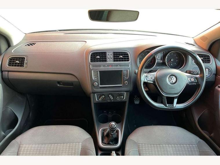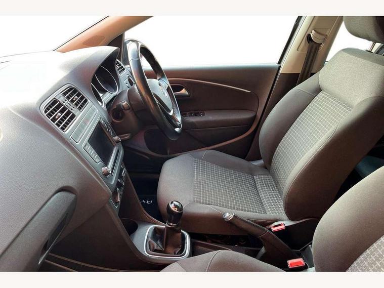 App-Connect, Bluetooth Telephone preparation, Cruise control + speed limiter, Driver alert system, Multi function display, Multifunction computer, PAS - speed related, Service interval indicator, Ultrasonic front and rear optical and audible parking sensors, Warning buzzer and light for front seatbelts unfastened, 6 speakers, Composition media system with radio, glovebox mounted CD, colour touch screen, SD card, aux-in, USB, multimedia interface, DAB Digital radio, Black grille with chrome surround, Body colour bumpers, Body colour door handles, Body colour door mirrors, Body coloured side sills, Chrome trimmed front air intake surrounds, Electric folding door mirrors, Electric front windows, Electric operated/heated door mirrors, Front fog lights with static cornering function, Front wash/wipe with interval delay, Heat insulated tinted glass 65% light absorbing from B pillar back, Heated rear window with auto timer, Rear electric windows, Rear windscreen washer and wiper with interval delay, 12V power socket in centre console, 2 bag hooks in luggage compartment, 2 cupholders, 3 rear head restraints, 3 spoke steering wheel, 4 grab handles, 60/40 split folding rear seat, Centre console storage, Chrome interior door handles, Driver and passenger sunvisors, Driver seat height adjust, Dust/pollen filter, Front door pockets, Front passenger seat height adjust, Front seat backrest storage nets, Front/rear reading lights, Glovebox, Height/reach adjustable steering column, Illuminated vanity mirror, Interior light with delay, Isofix Preparation 2 Rear child seats, Luggage compartment cover, removable, Luggage compartment lighting, Matt chrome gear lever gaiter surround, Multifunction leather steering wheel with leather gear knob/handbrake grip, Storage compartment in front doors, Storage compartment in rear doors, Sunglasses holder, Variable boot floor, Light and sight pack - Polo, 3 point height adj front seatbelts + pretensioners, 3x3 point rear seatbelts, ABS, Automatic post collision braking, Driver/front passenger airbag, Driver/Passenger whiplash optimised head restraints, ESC - Electronic Stability Control + traction control, ESP with EDL + ASR, HBA (Hydraulic Brake Assist), Hill hold control, Tyre pressure monitoring system, Alarm with remote central locking and interior protection, Electronic engine immobiliser, Air vents in Matt chrome, Matt chrome interior trim, 15" steel spare wheel,